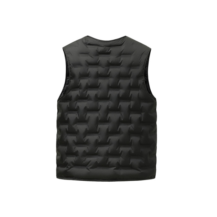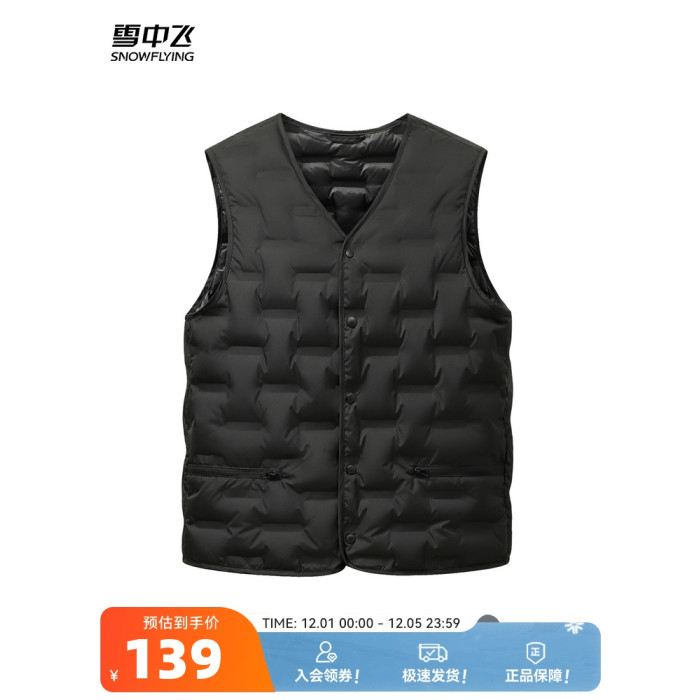 雪中飛2025冬新款男士V領爸爸款分格羽絨馬甲無袖背心黑色大碼