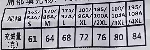 充羢量 61-84g
