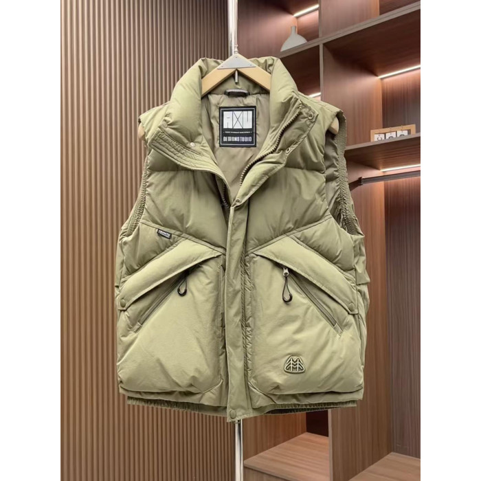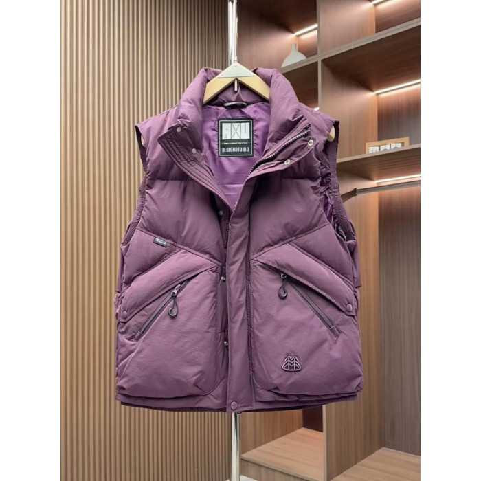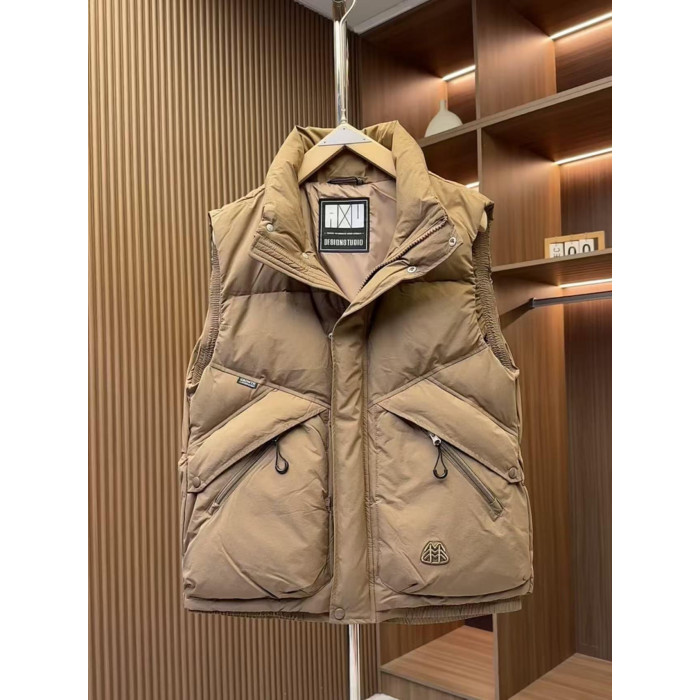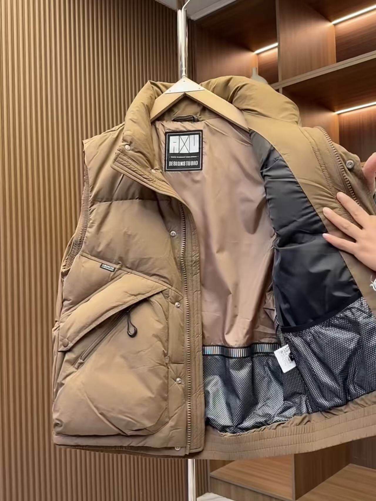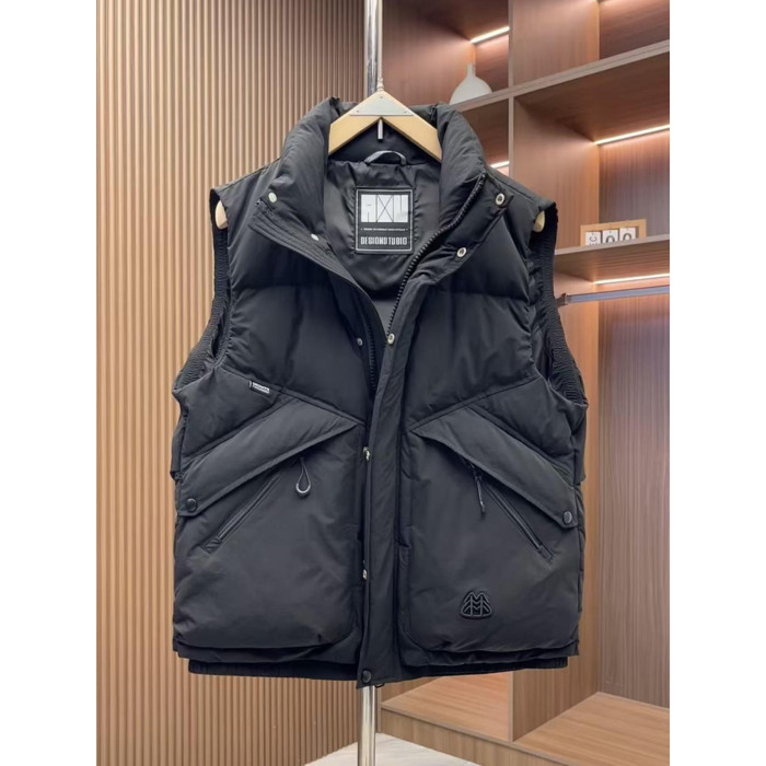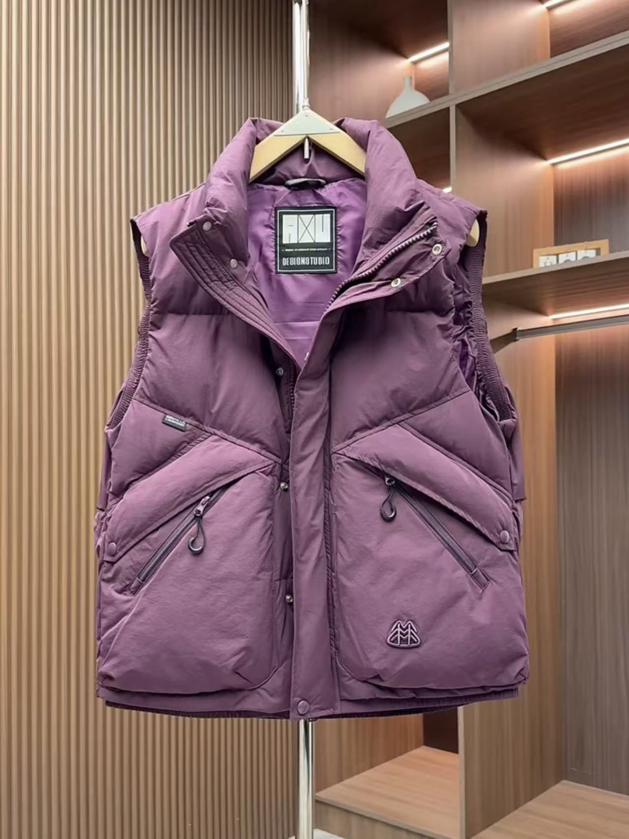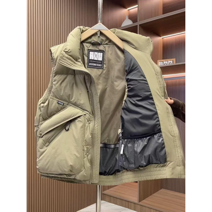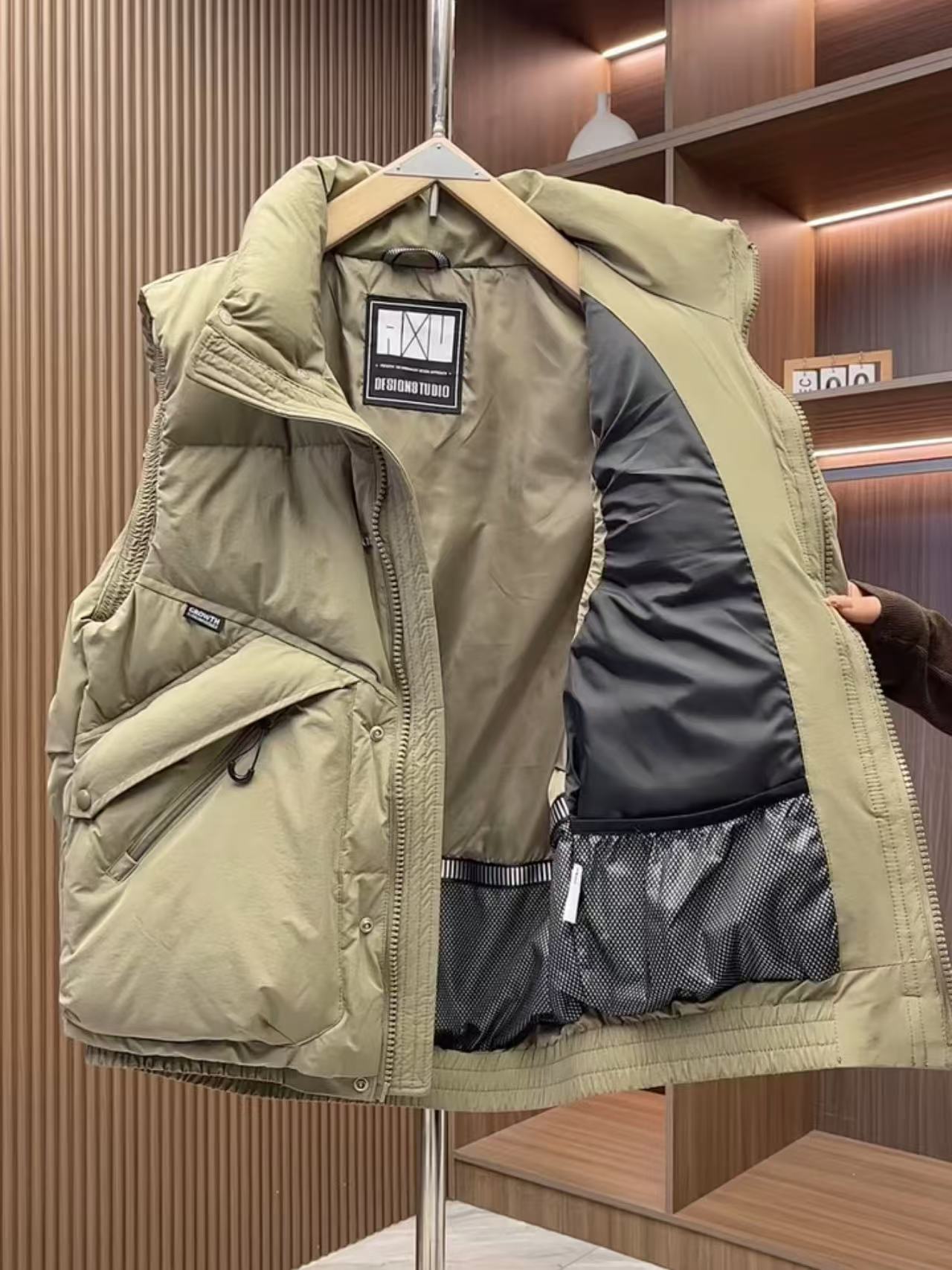立領加厚純色羽絨馬甲男士冬季潮流工裝拉鍊口袋休閒保暖坎肩外套