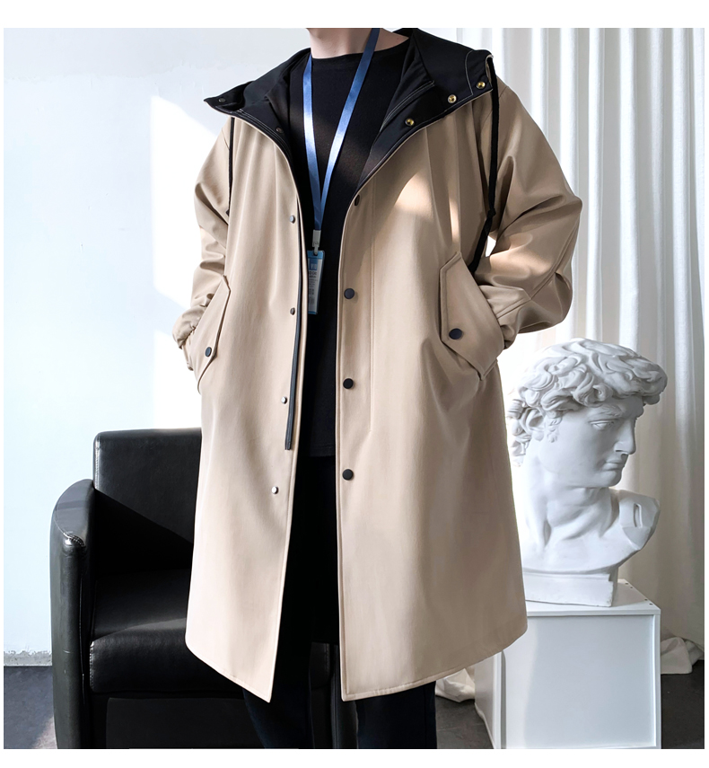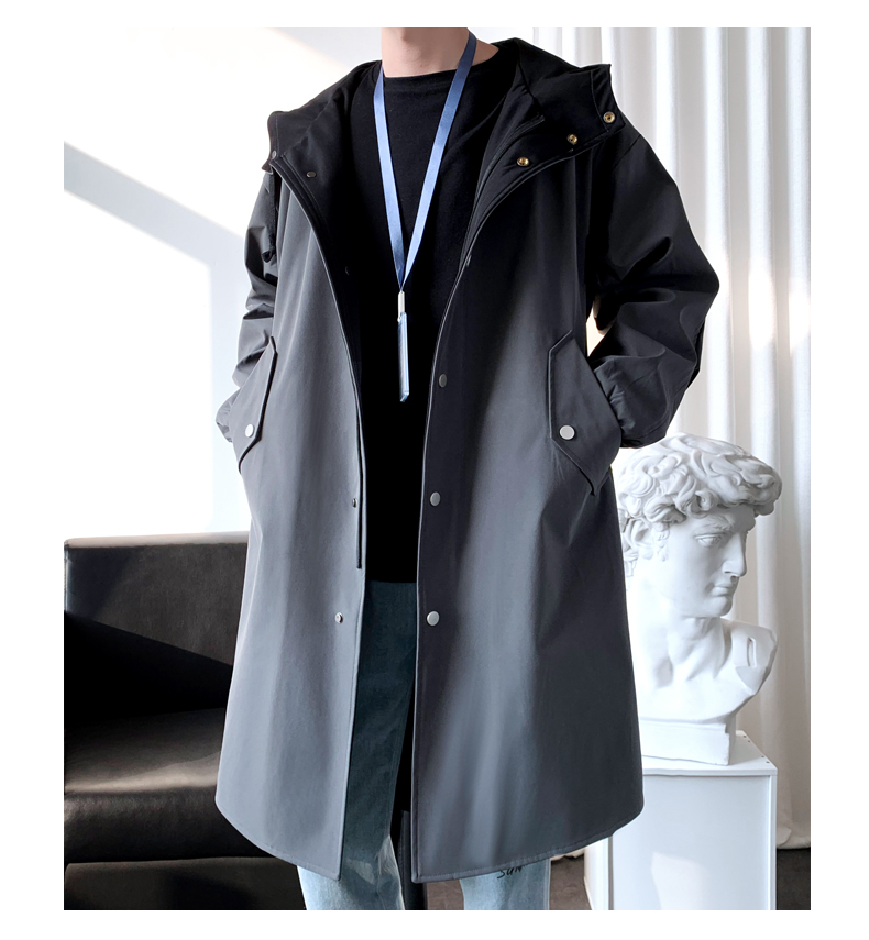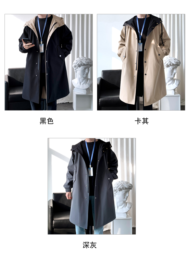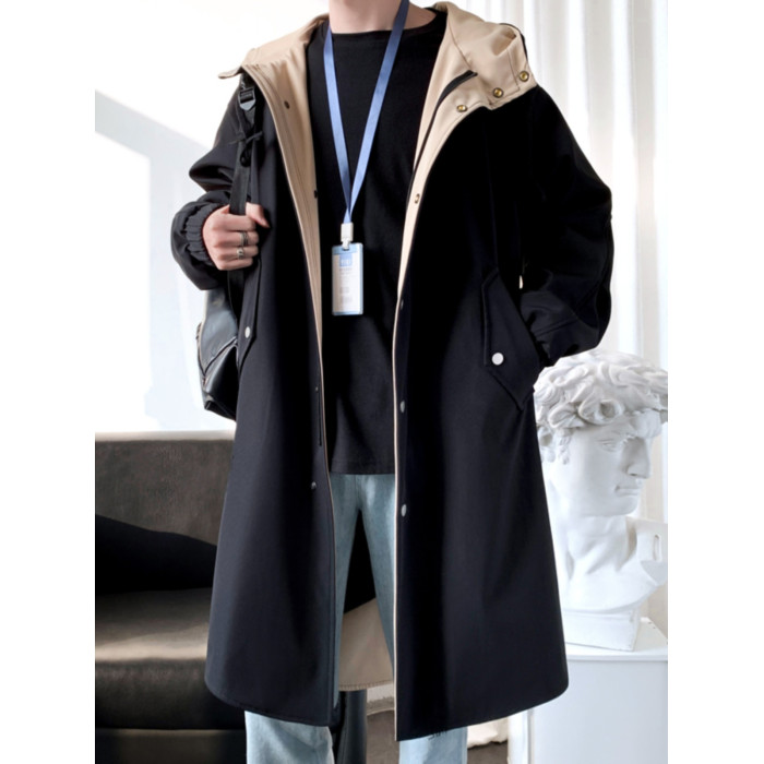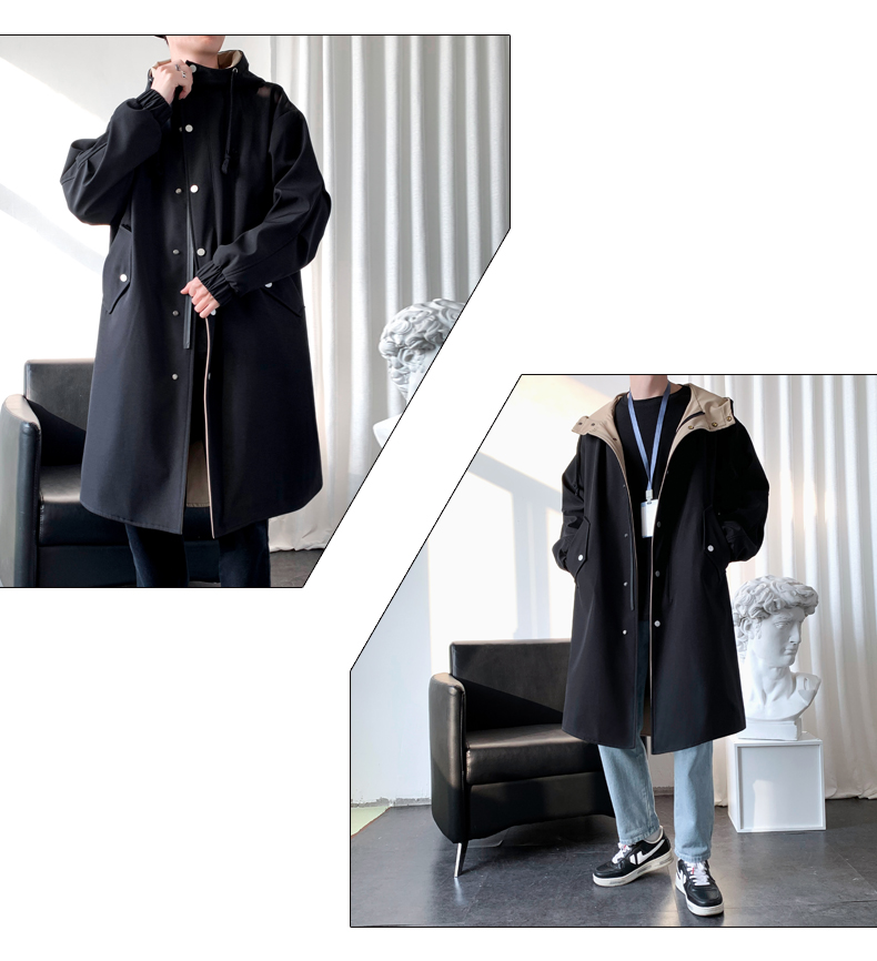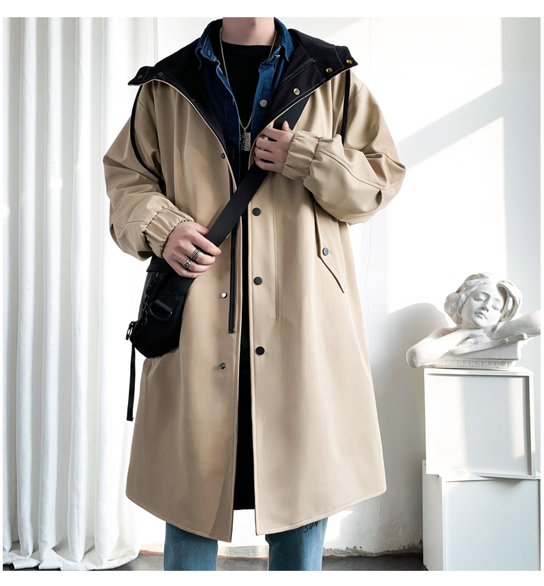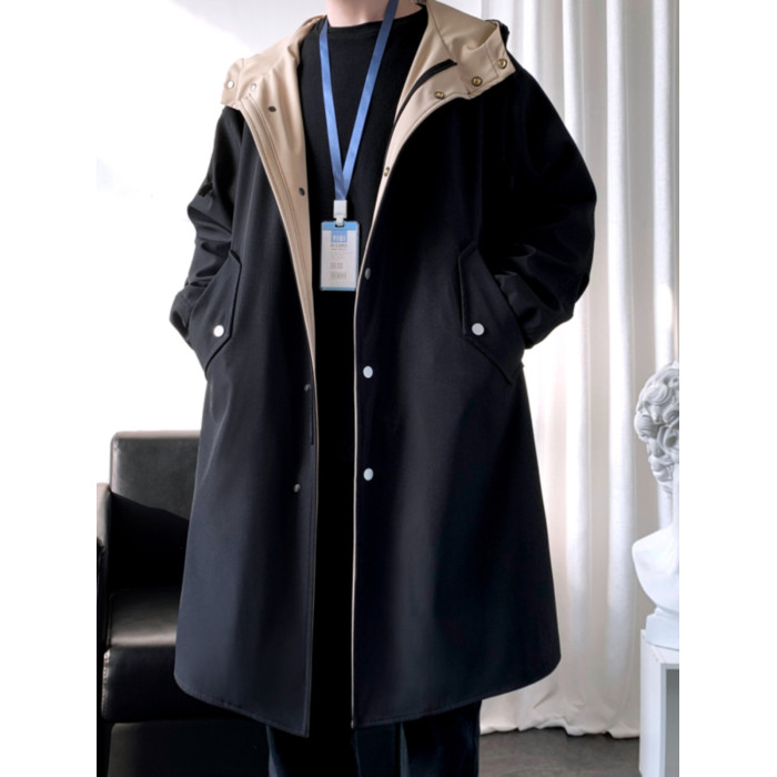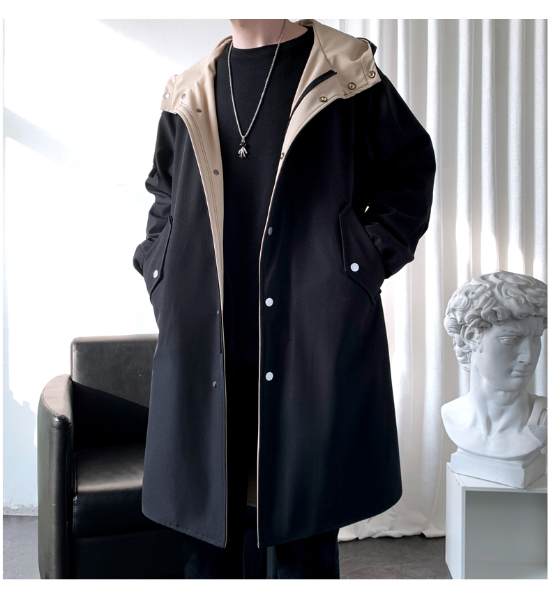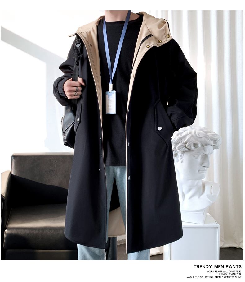 撞色中長款風衣男秋冬韓版潮馬甲情侶大衣青少年寬松百搭休閒外套