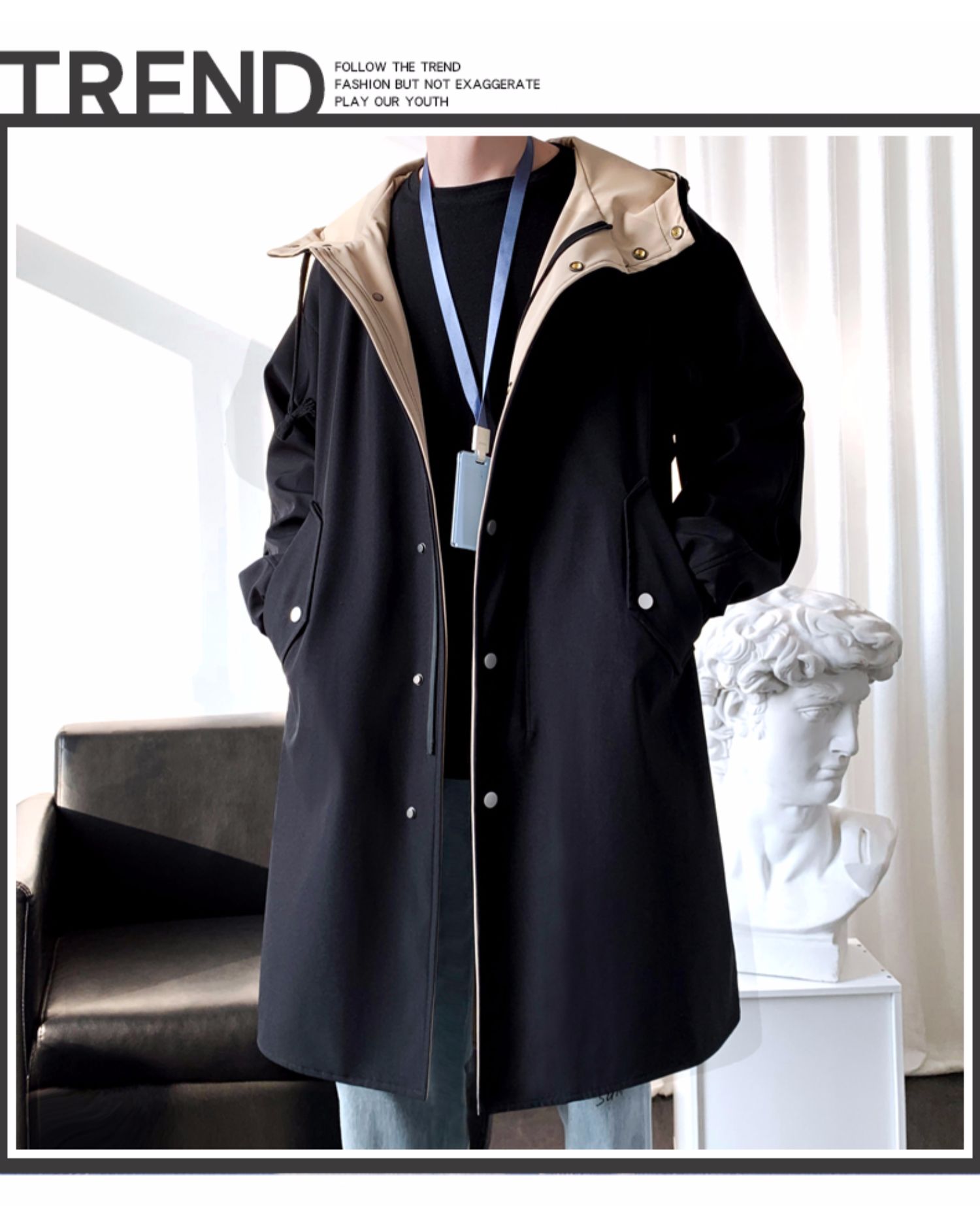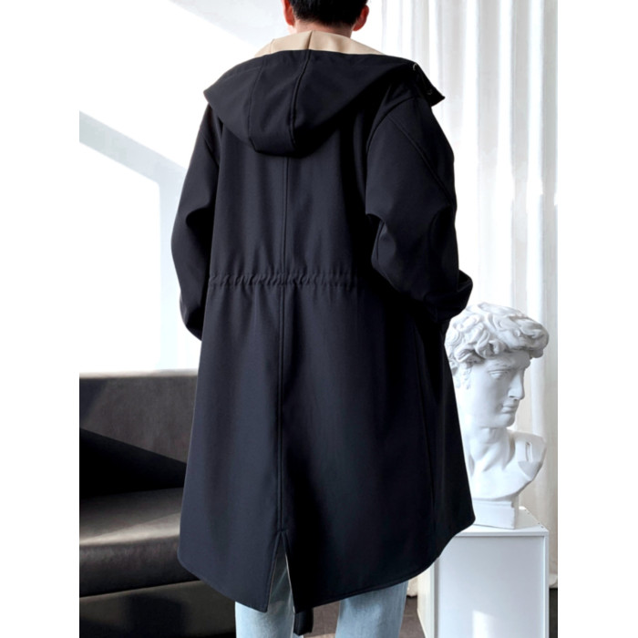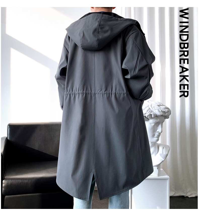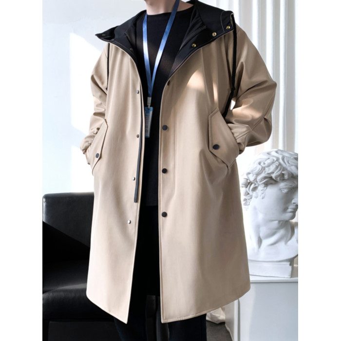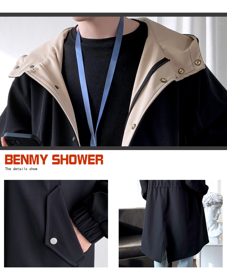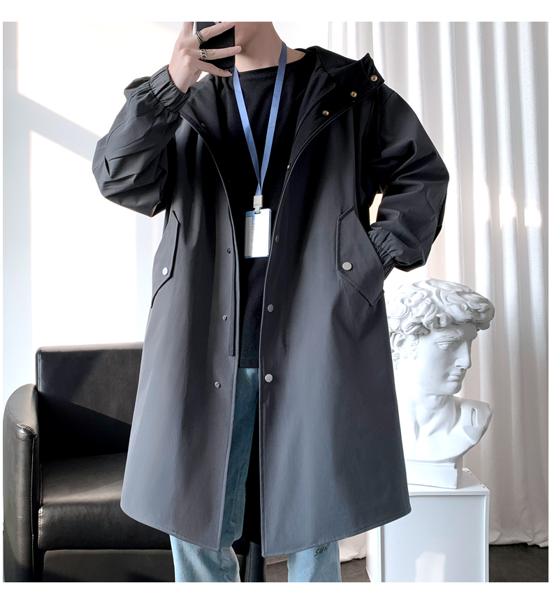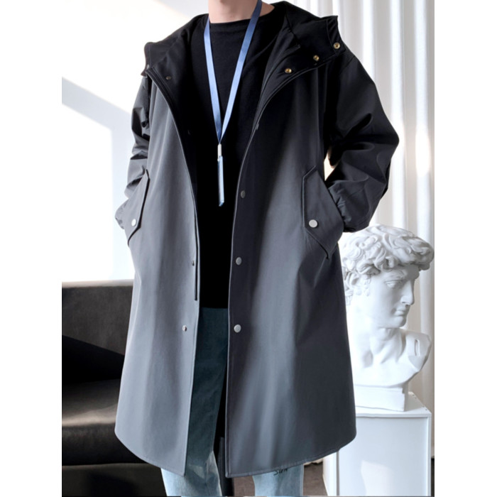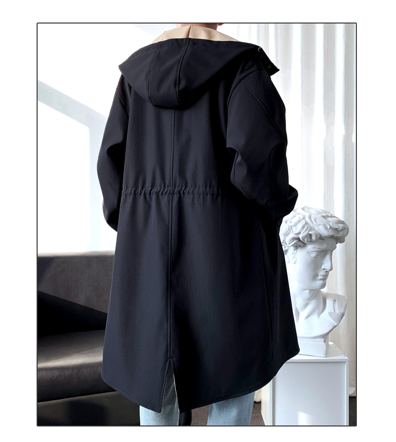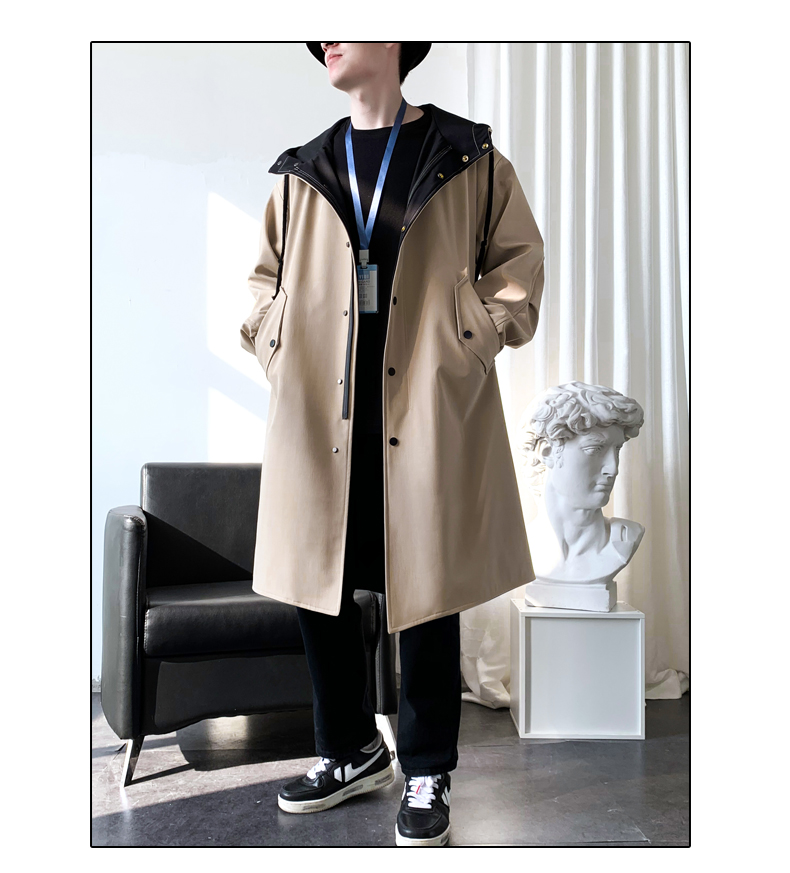 撞色中長款風衣男秋冬韓版潮馬甲情侶大衣青少年寬松百搭休閒外套
