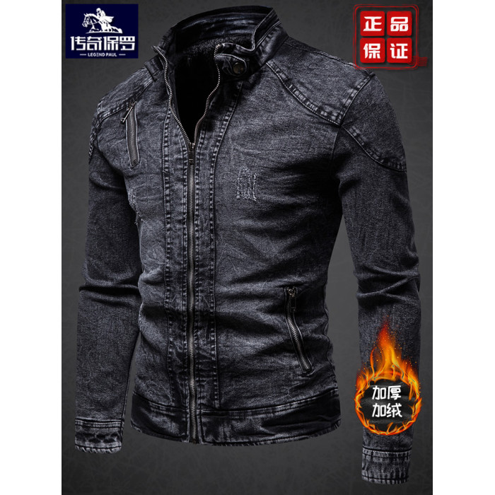 保羅復古牛仔外套男立領夾克秋冬季加絨潮牌修身韓版潮流帥氣衣服
