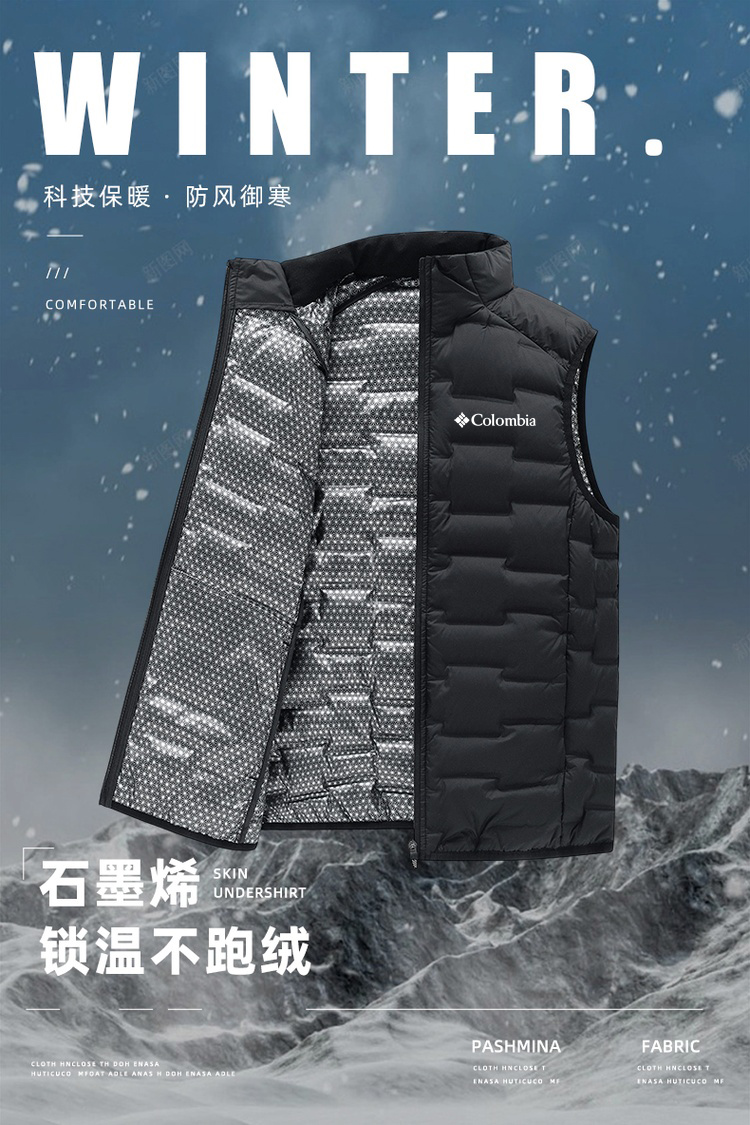 哥倫折釦羽絨服馬甲男士秋冬季石墨烯保暖防風防水坎肩馬甲羽絨服