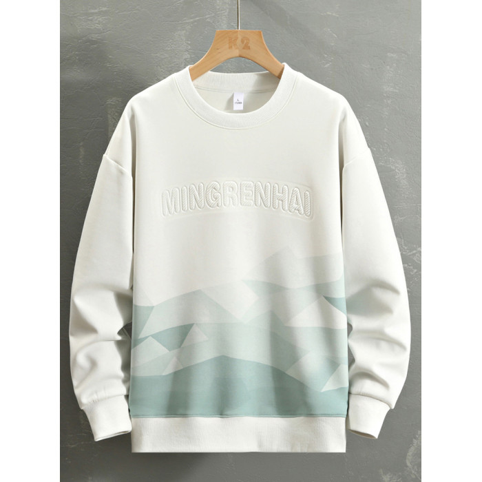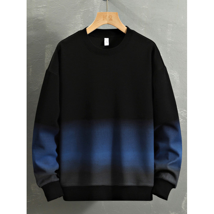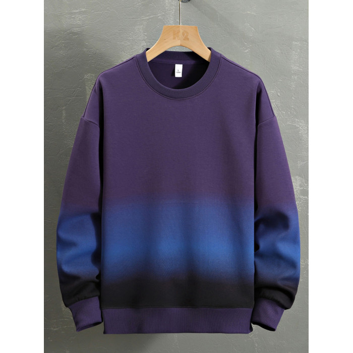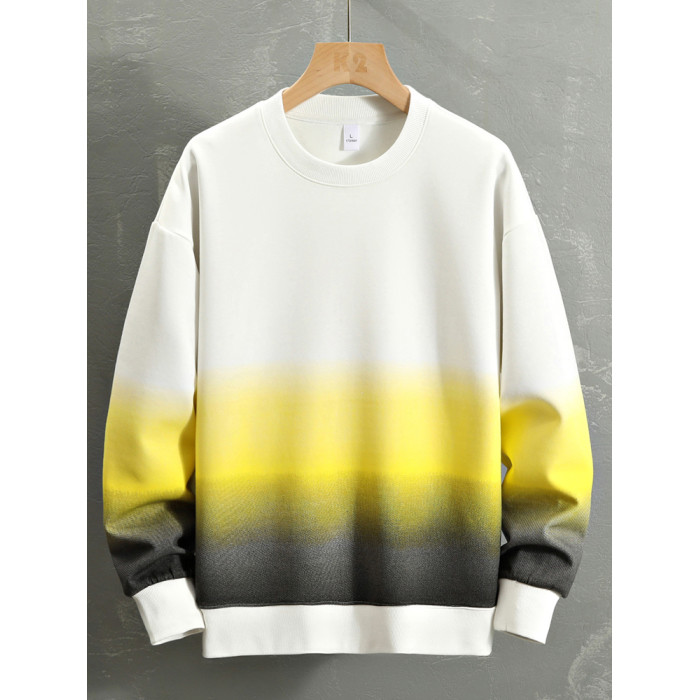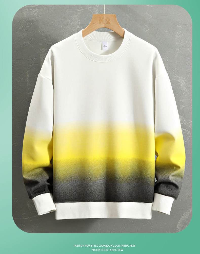 漸變色衛衣男春秋季圓領潮流潮牌長袖T恤帥氣青年休閒百搭打底衫