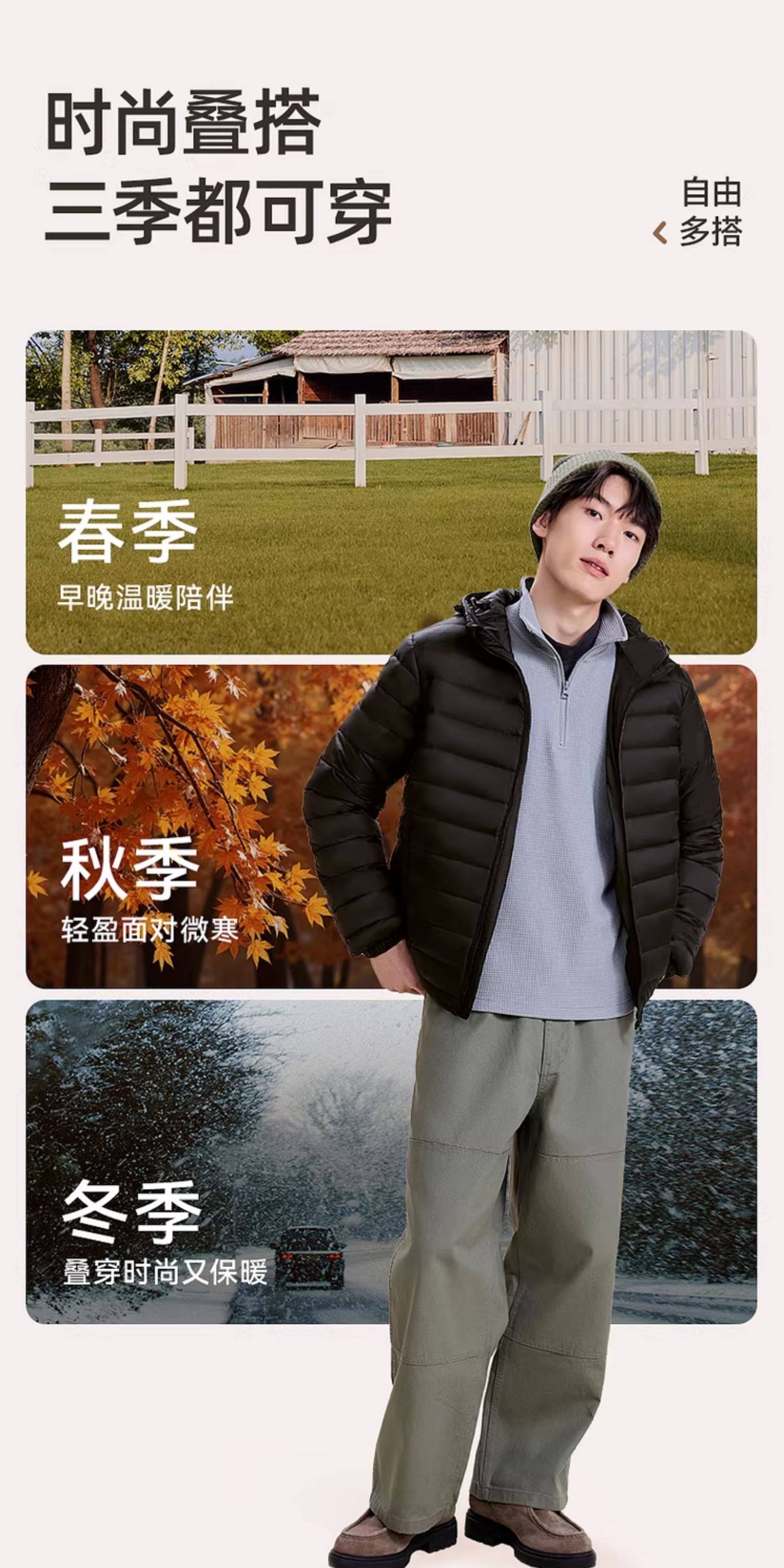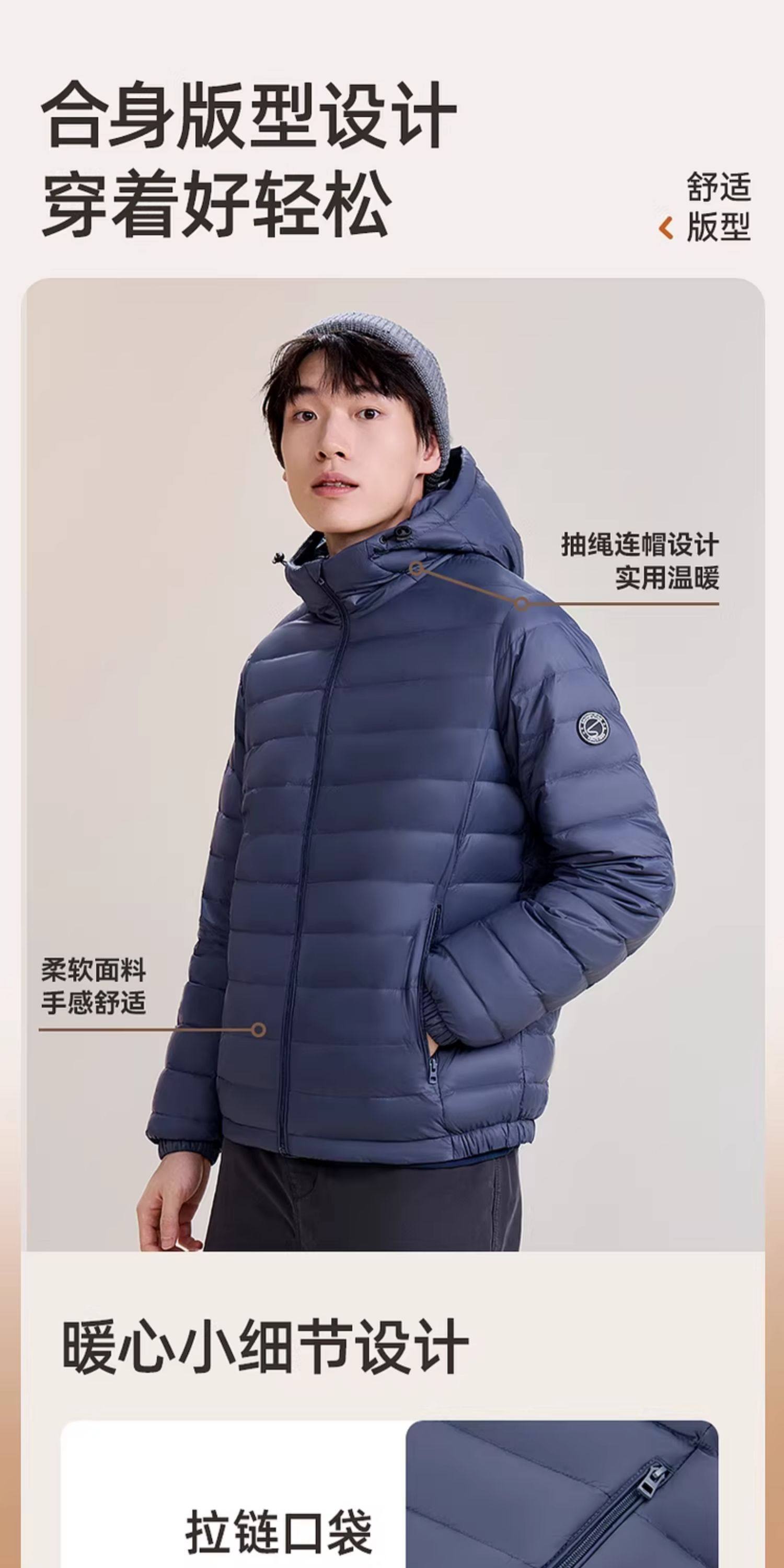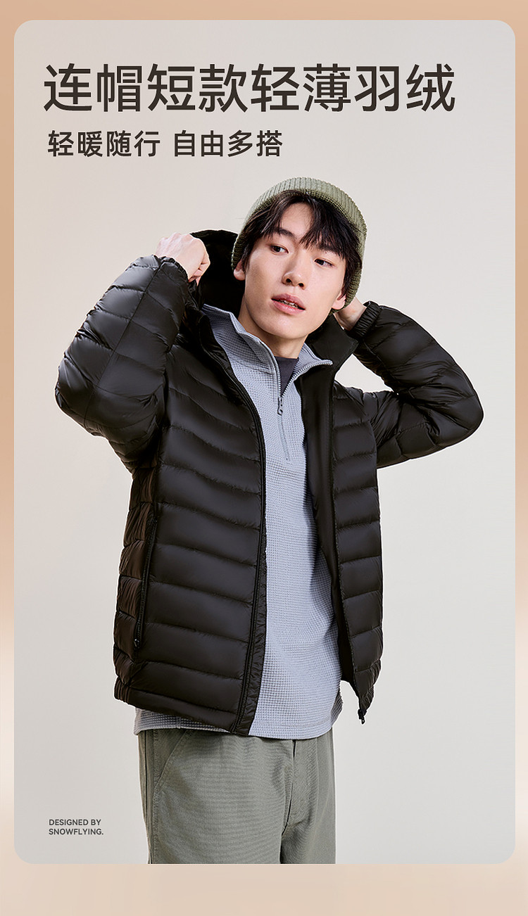 雪中飛2026秋冬男士連帽短款基礎休閒保暖輕薄排骨羽絨服外套F