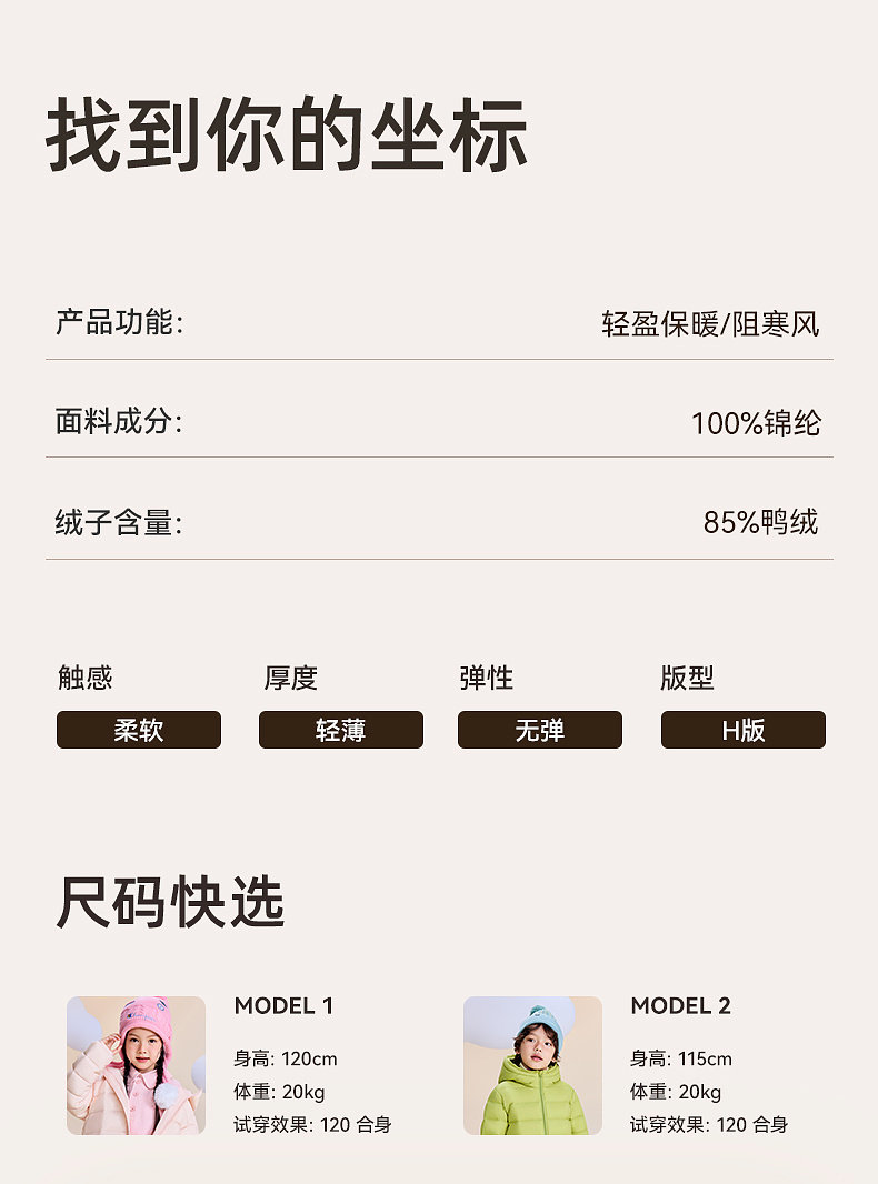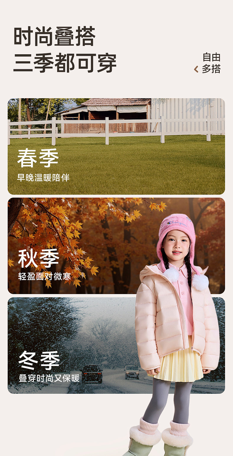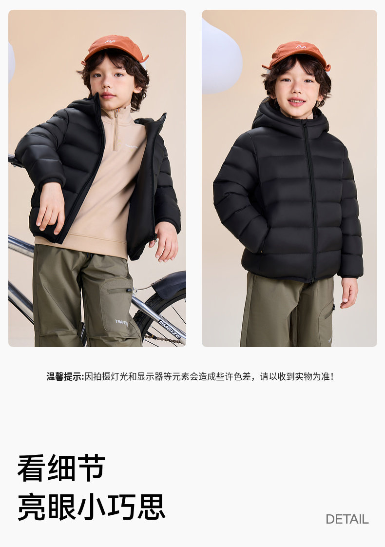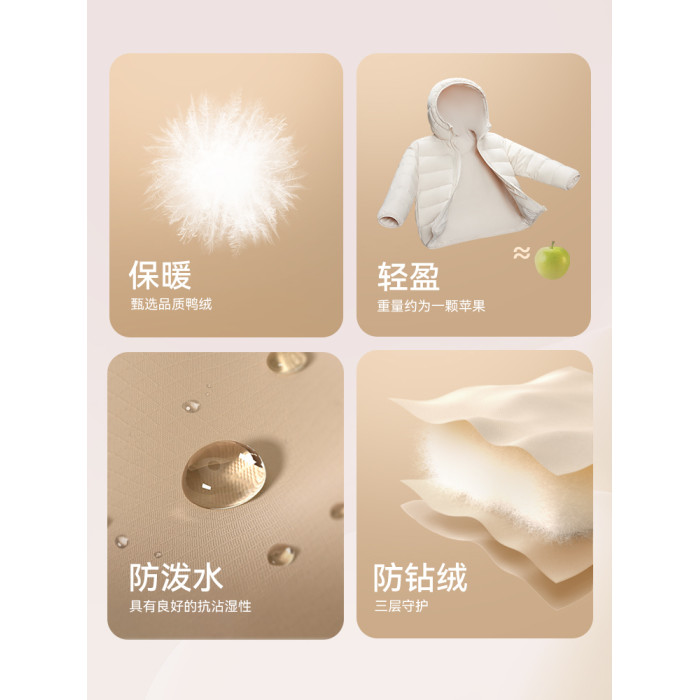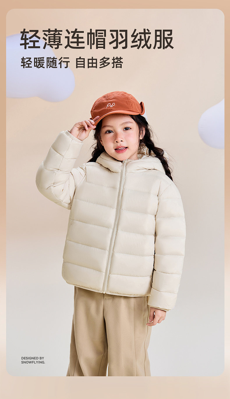 雪中飛2026春新款男女童連帽經典版型羽絨服純色簡約百搭舒適