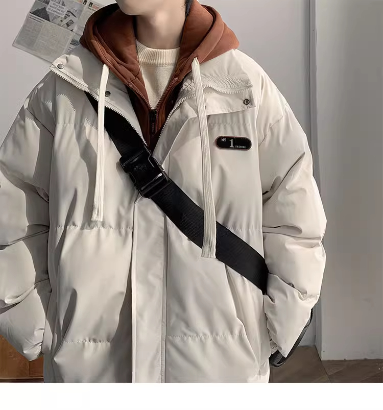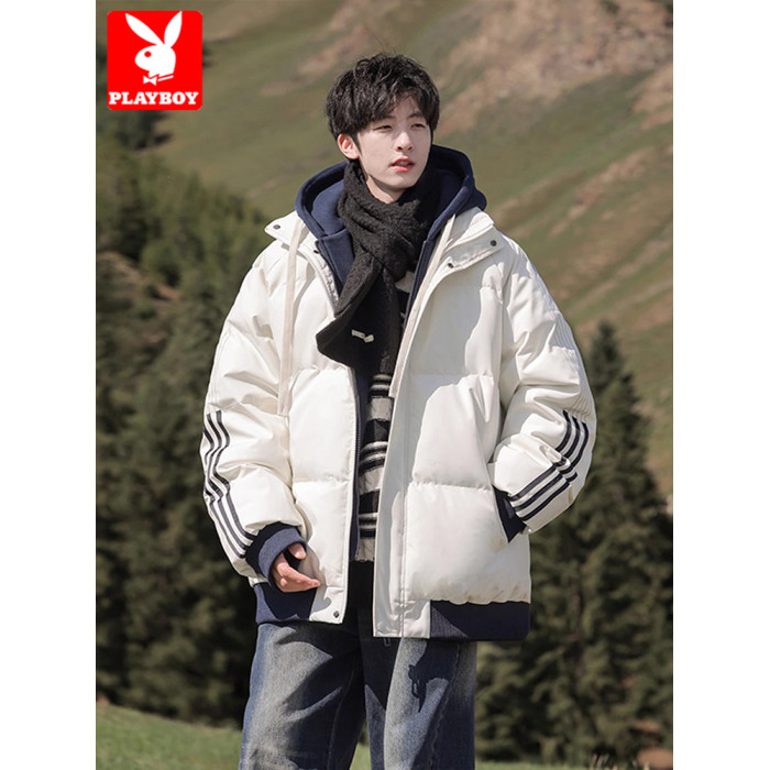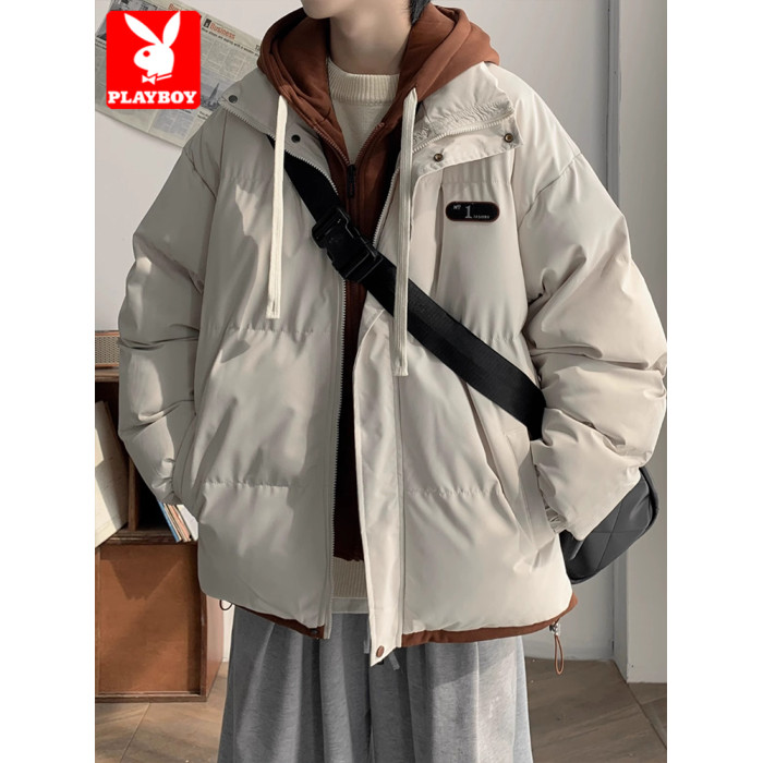 花花公子假兩件羽絨棉服男款冬季hiphop高街工裝外套日系厚連帽潮