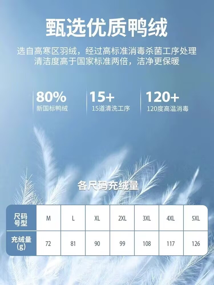 | 充羢量(g) | 100g(含)-150g(不含) |