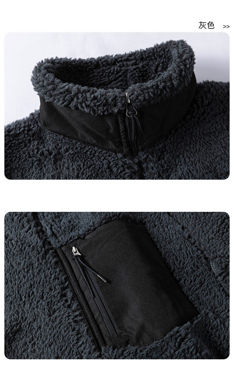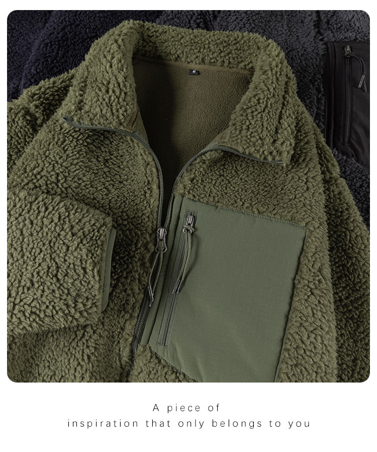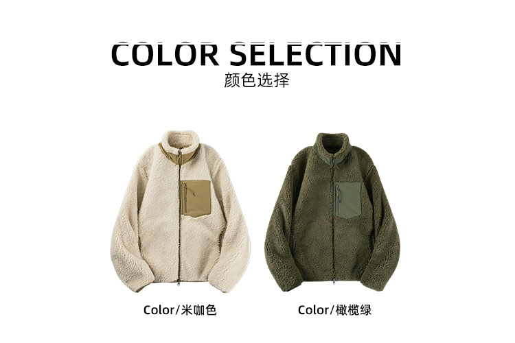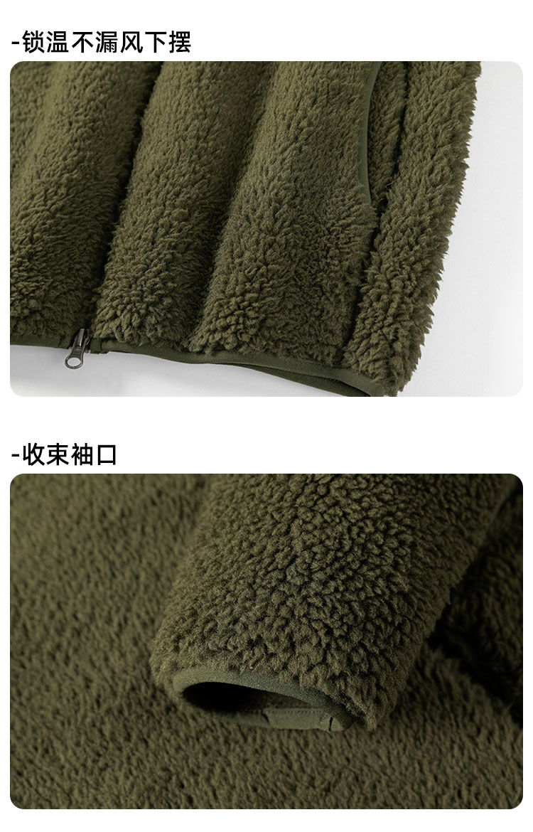 森系~橄欖綠 加厚搖粒絨拉鍊外套男女冬季美式復古貼布夾克衛衣服