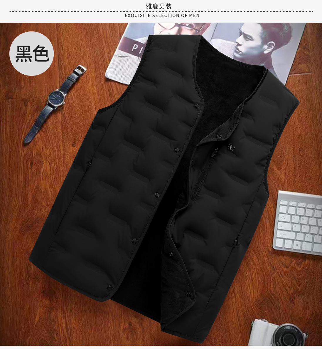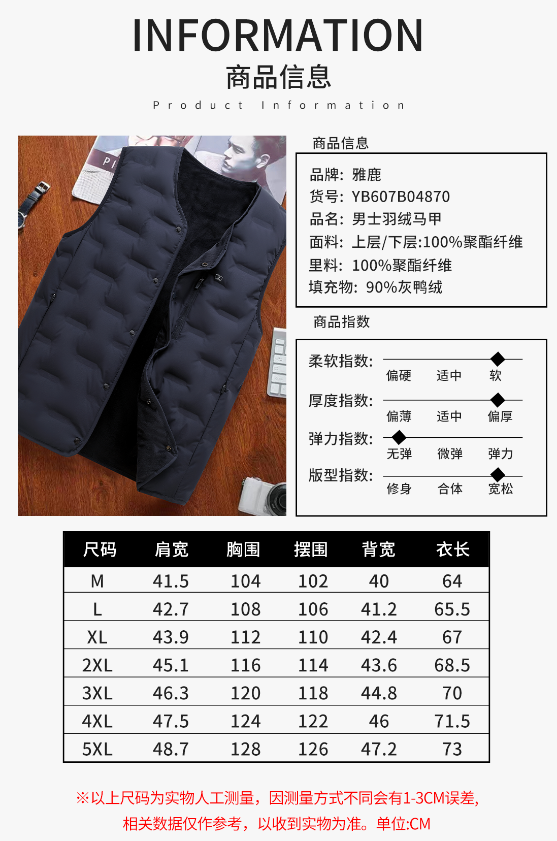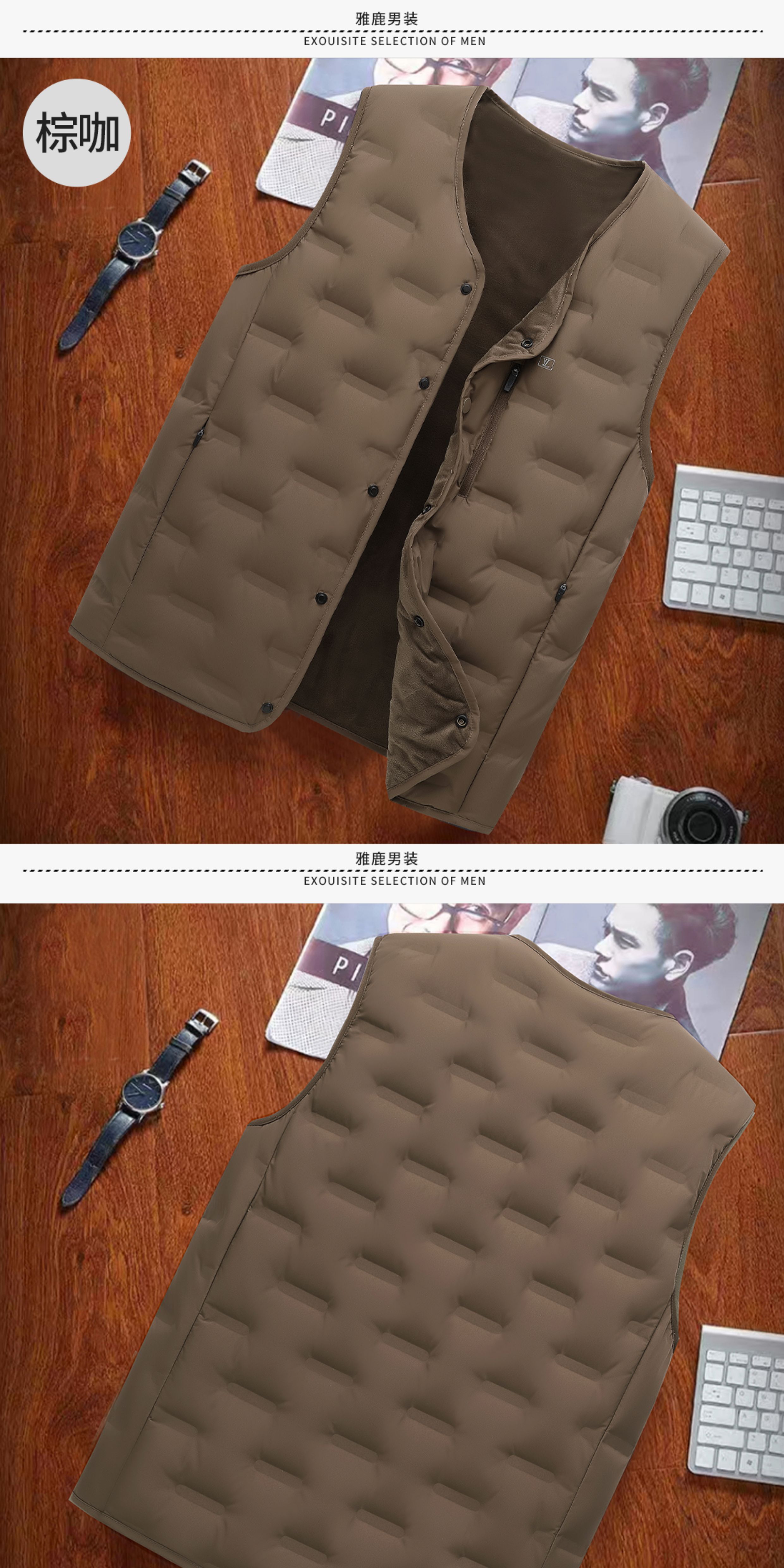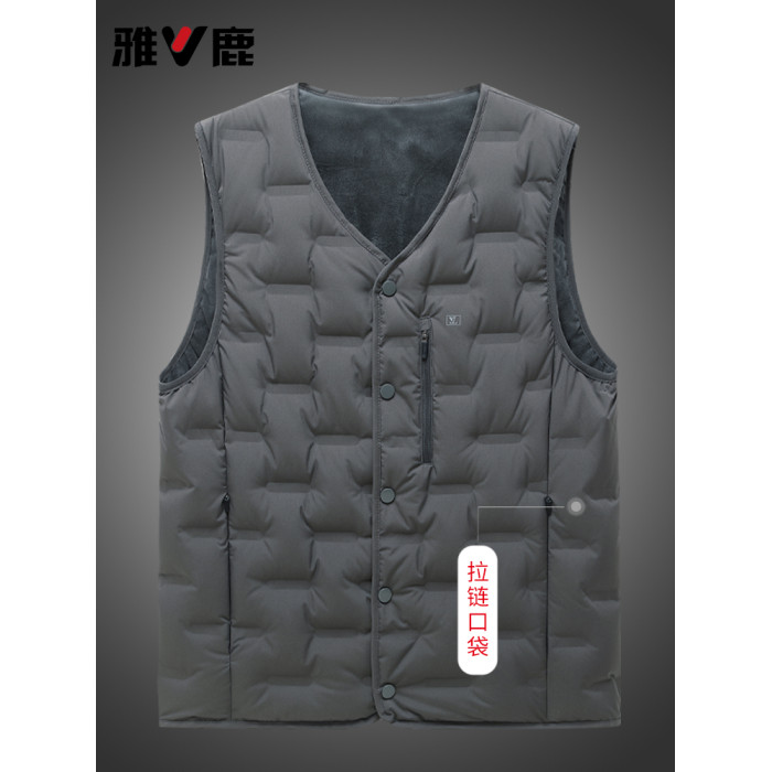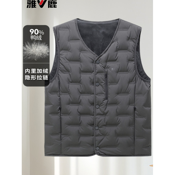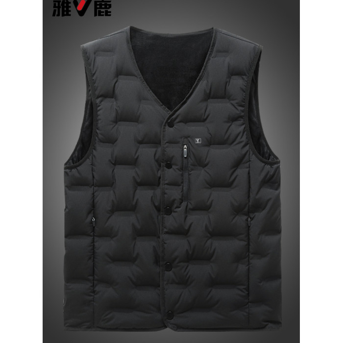 雅鹿冬季男士羽絨馬甲背心加絨保暖內膽坎肩爸爸裝中老年馬夾外穿