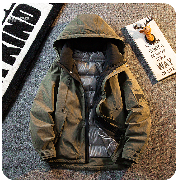 HPCP加厚防風沖鋒衣外套男士秋冬潮牌保暖白鴨絨羽絨服外套男冬季