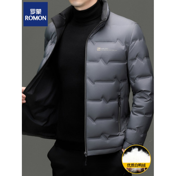 羅矇羽絨服男2025新款春秋季商務休閒高檔立領外套男士百搭上衣