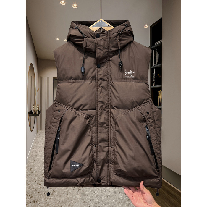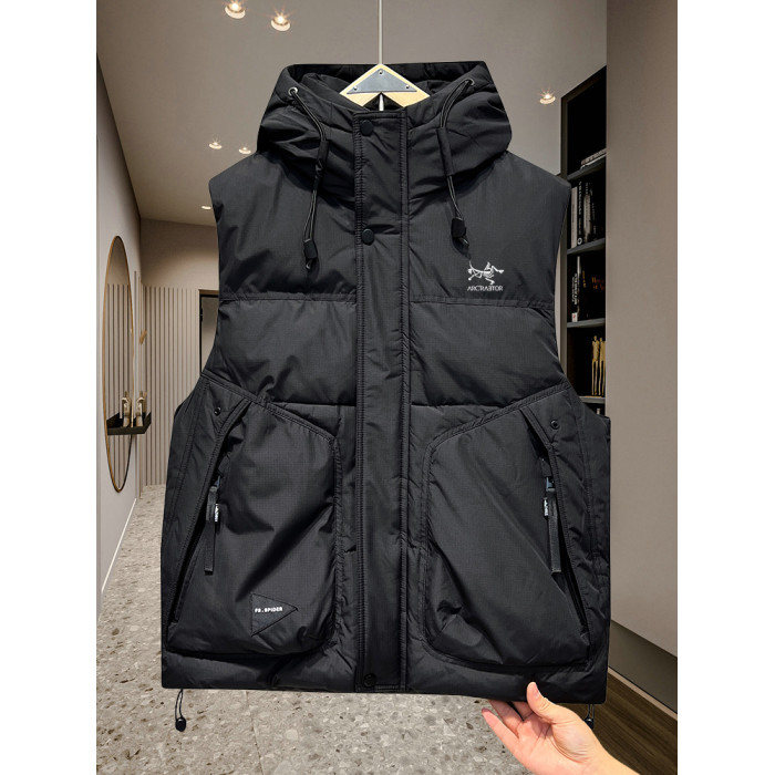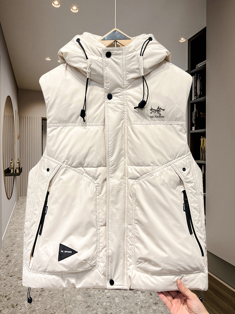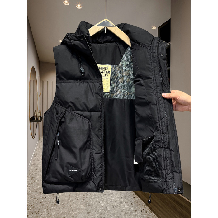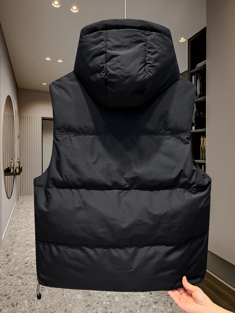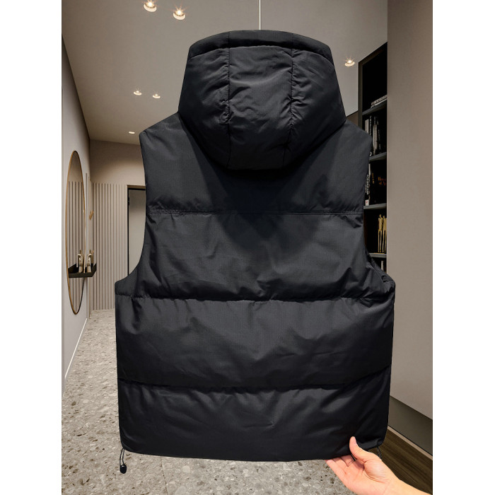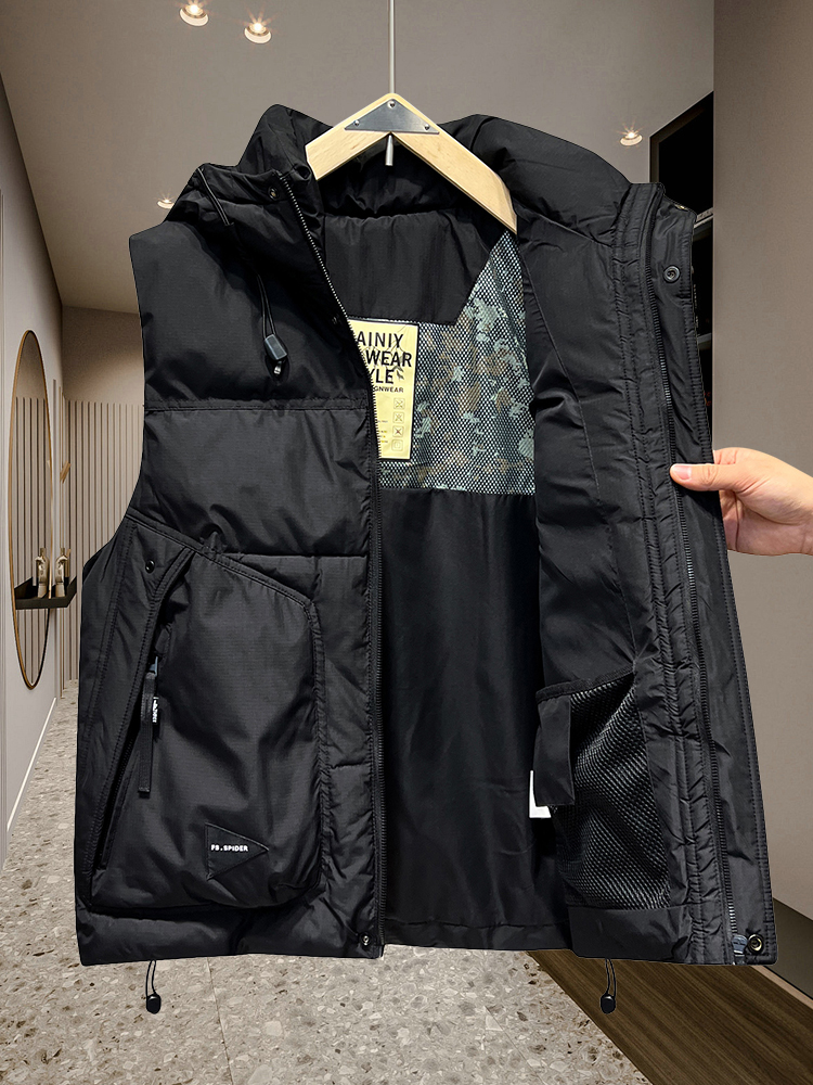 2025冬季鳥家男士羽絨馬甲連帽加厚潮白鴨絨馬夾情侶保暖坎肩外套