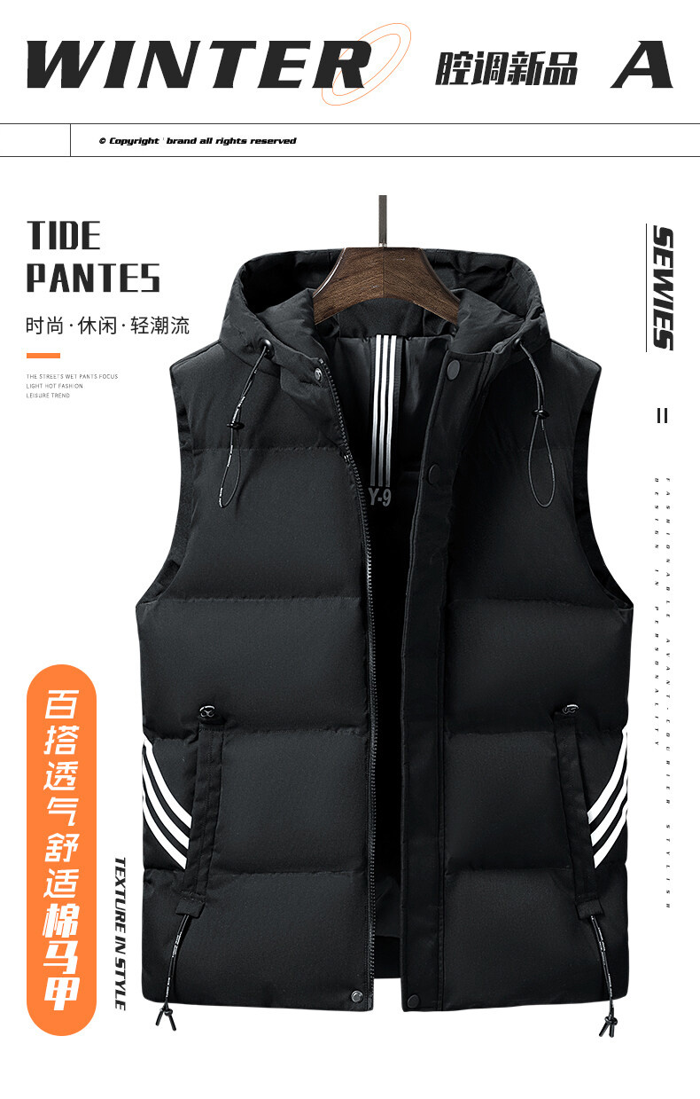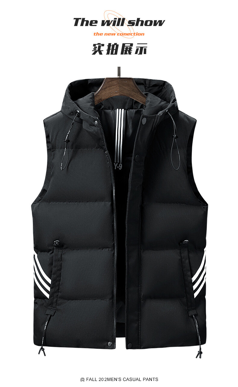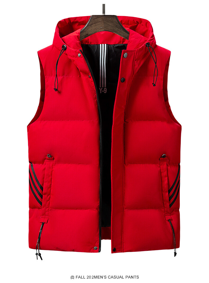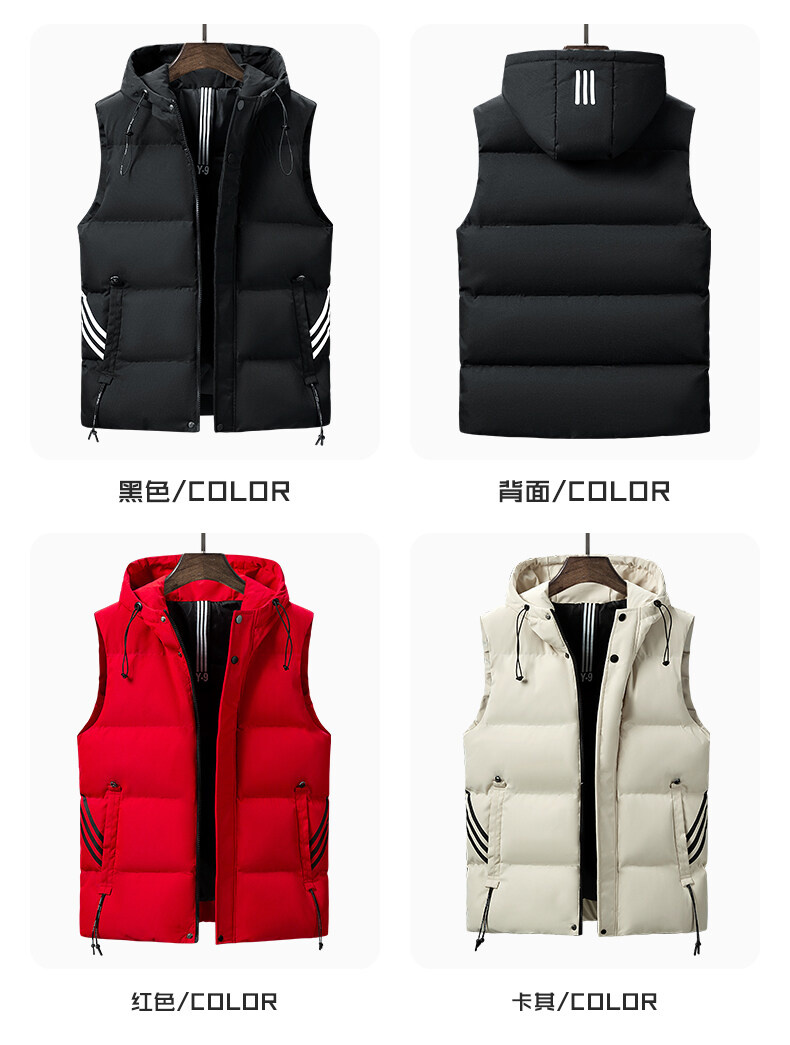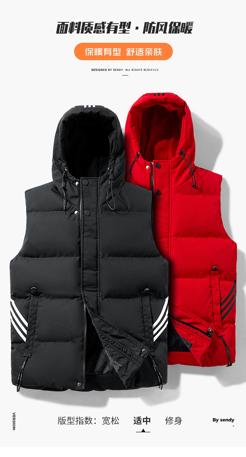 羽絨棉馬甲男士連帽秋冬季無袖坎肩大紅色本命年三條杠大碼馬夾男