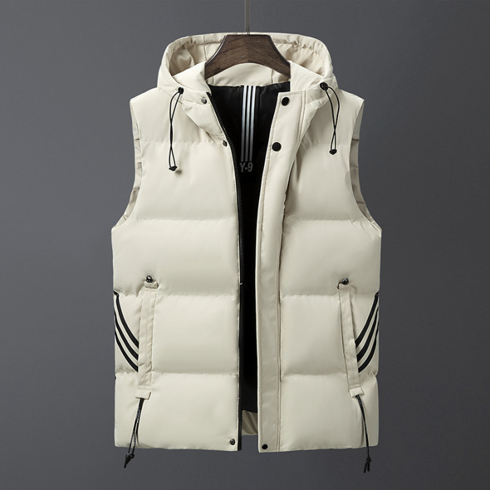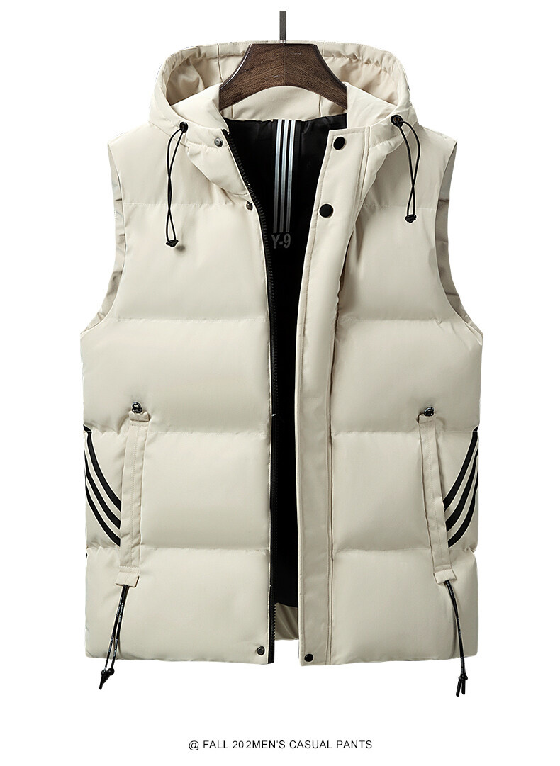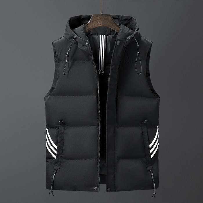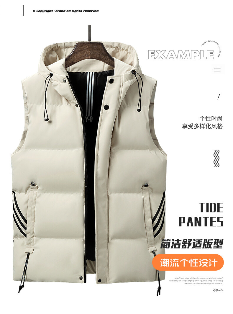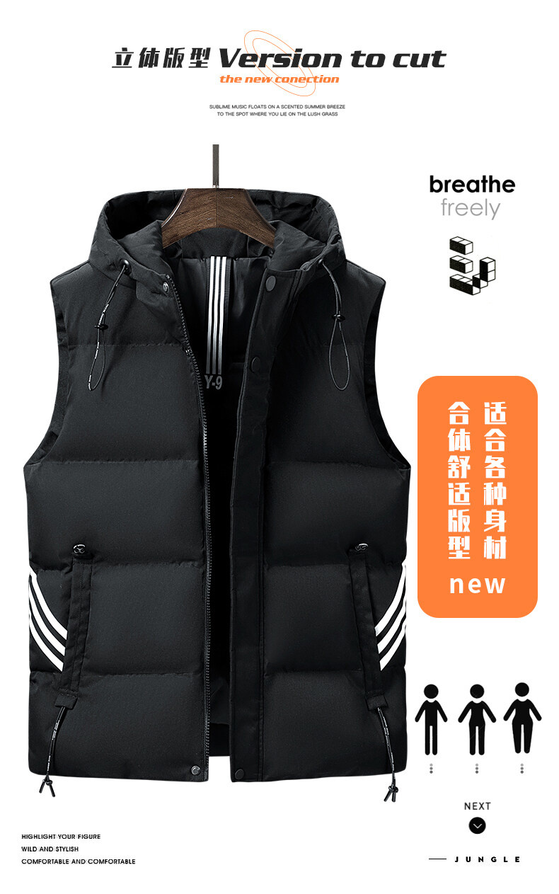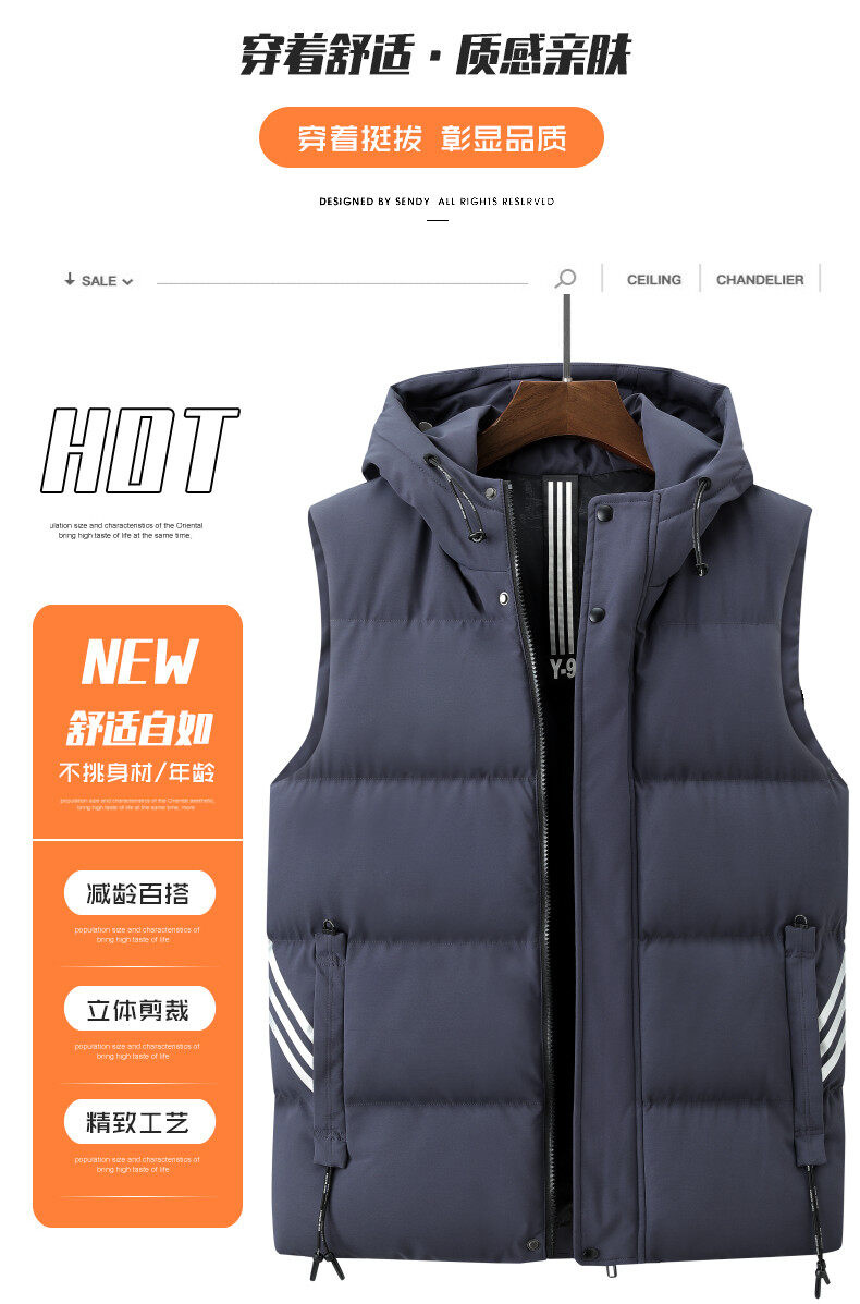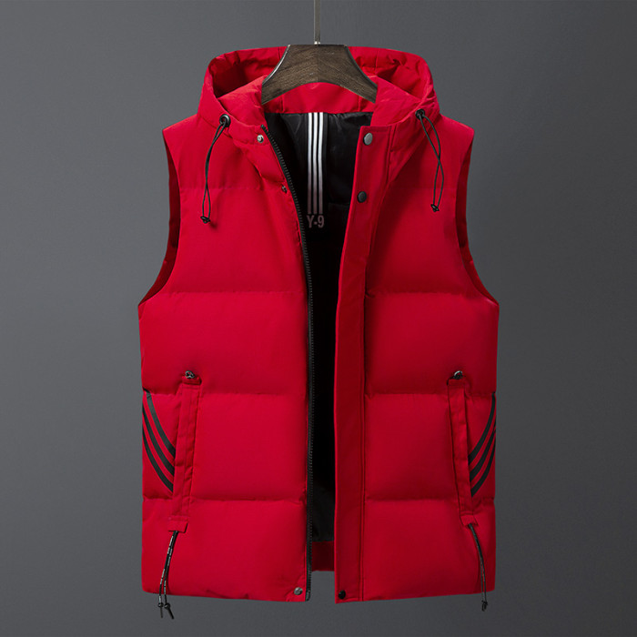 羽絨棉馬甲男士連帽秋冬季無袖坎肩大紅色本命年三條杠大碼馬夾男