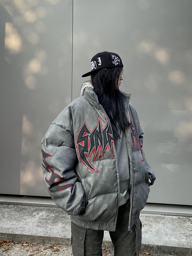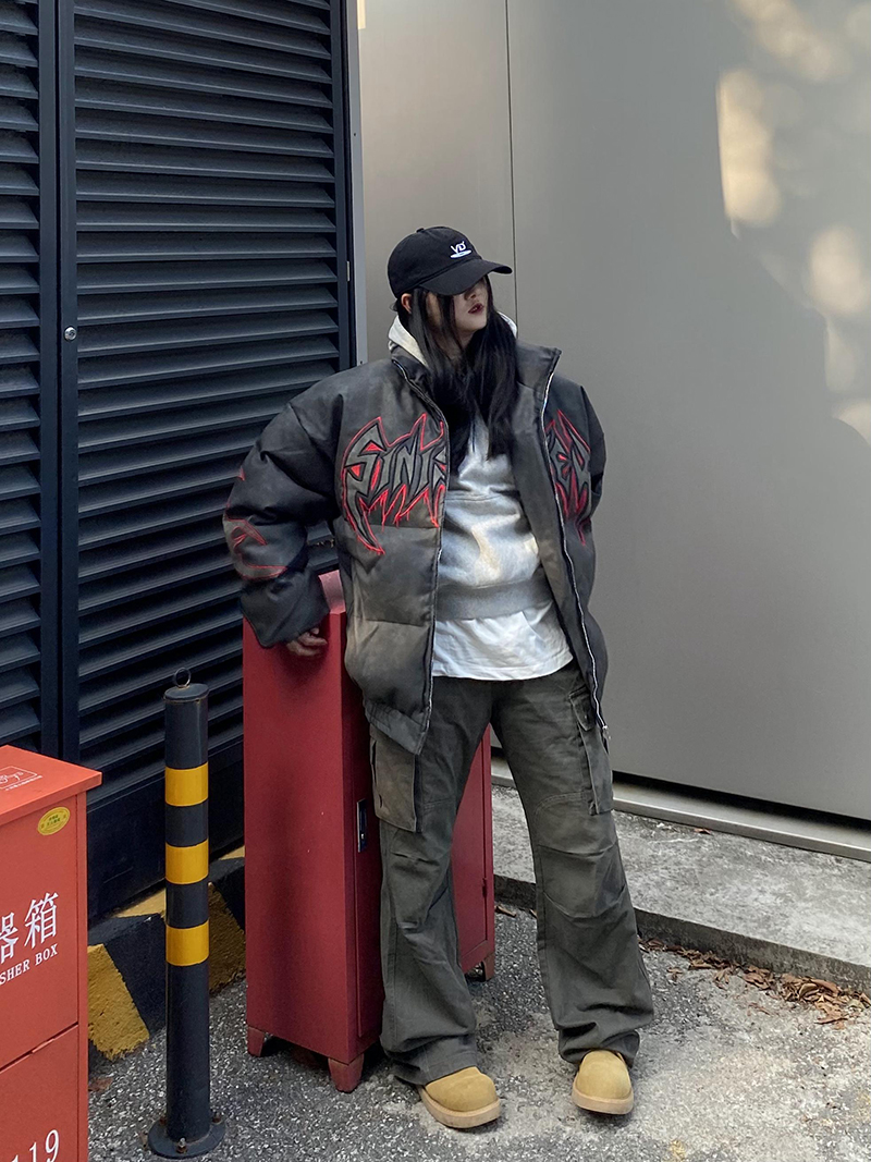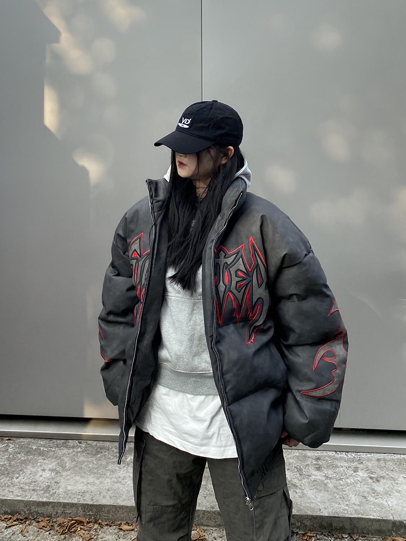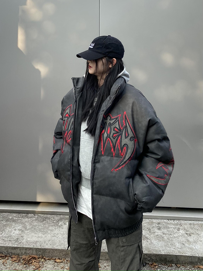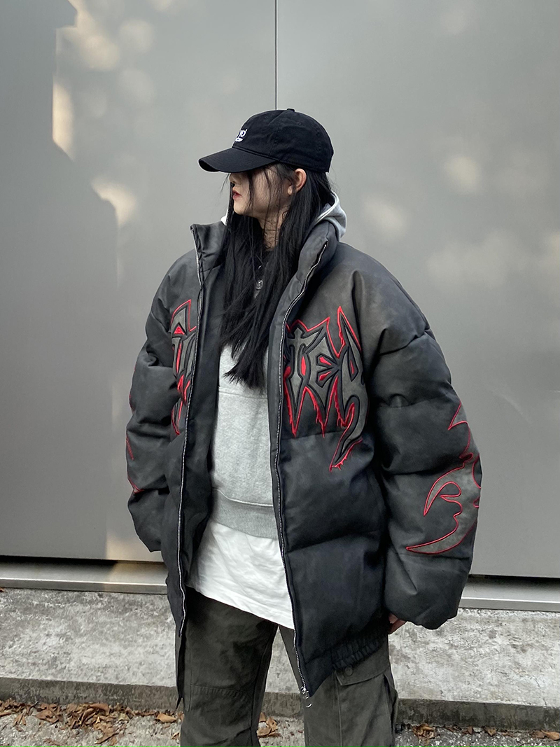 cemoliqiu原創荊棘刺綉字母加厚棉衣情侶秋冬季加厚情侶裝羽絨服