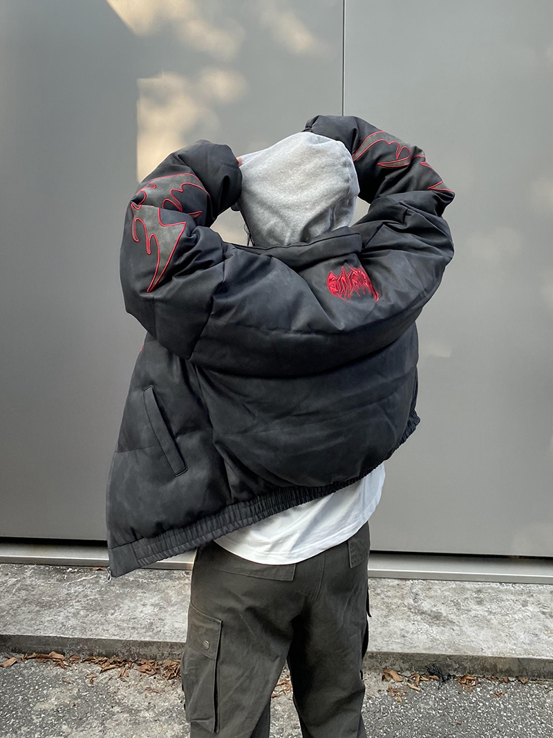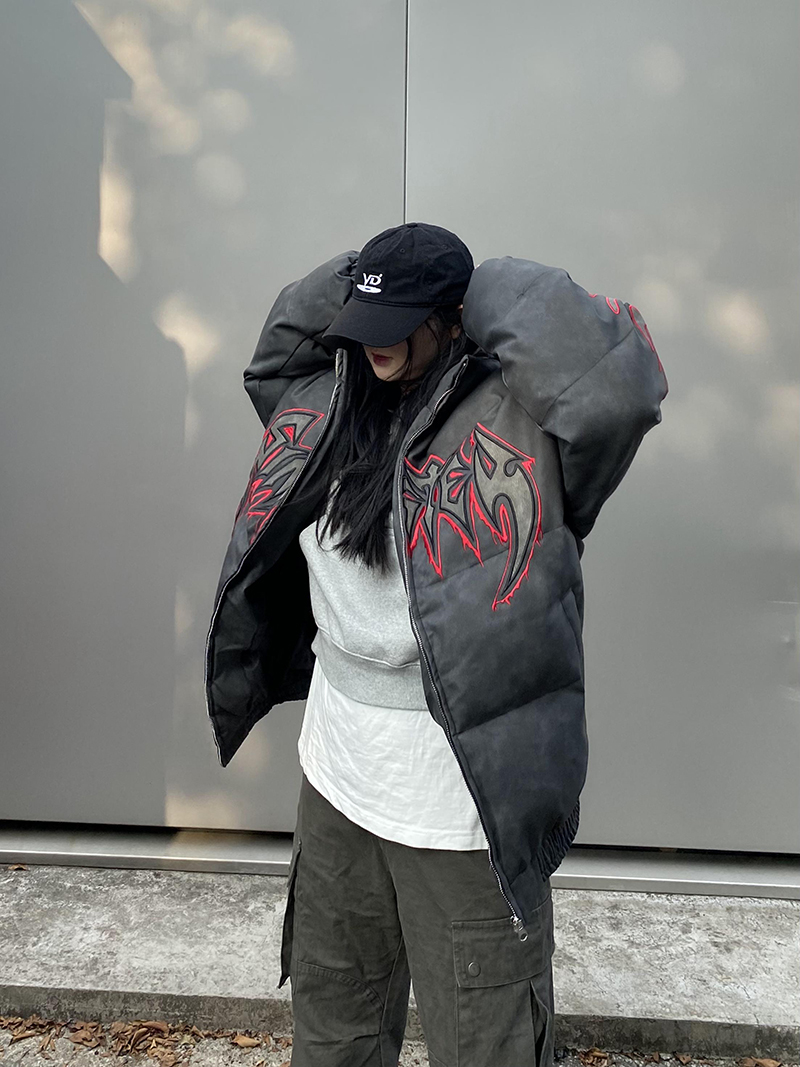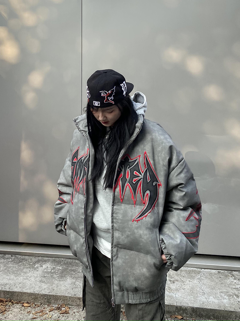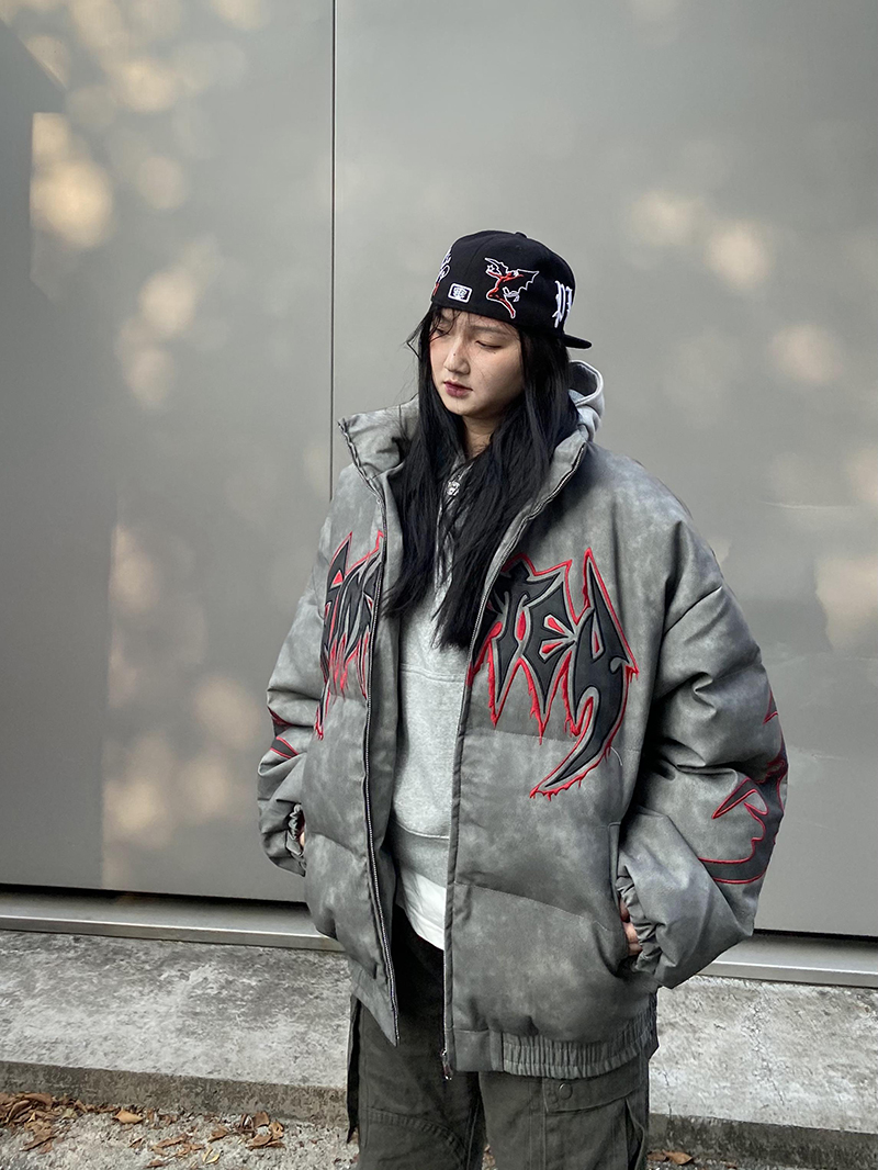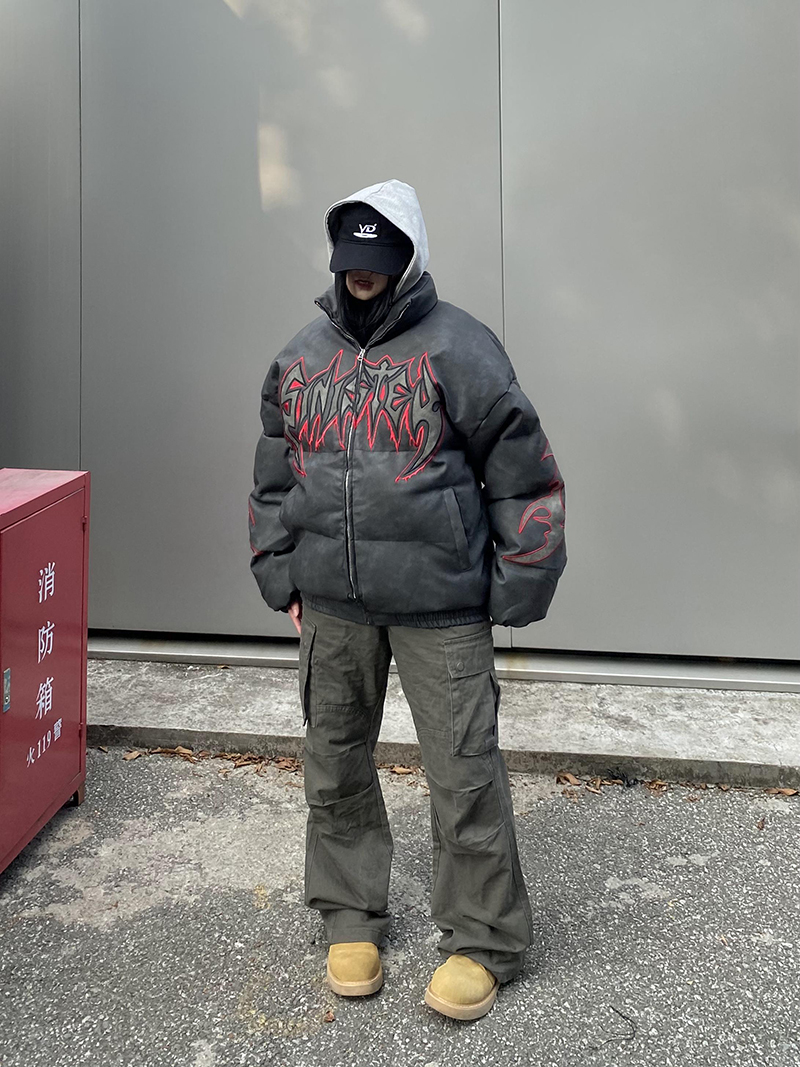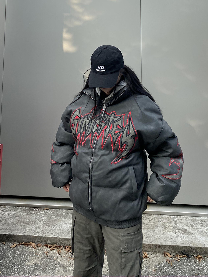 cemoliqiu原創荊棘刺綉字母加厚棉衣情侶秋冬季加厚情侶裝羽絨服
