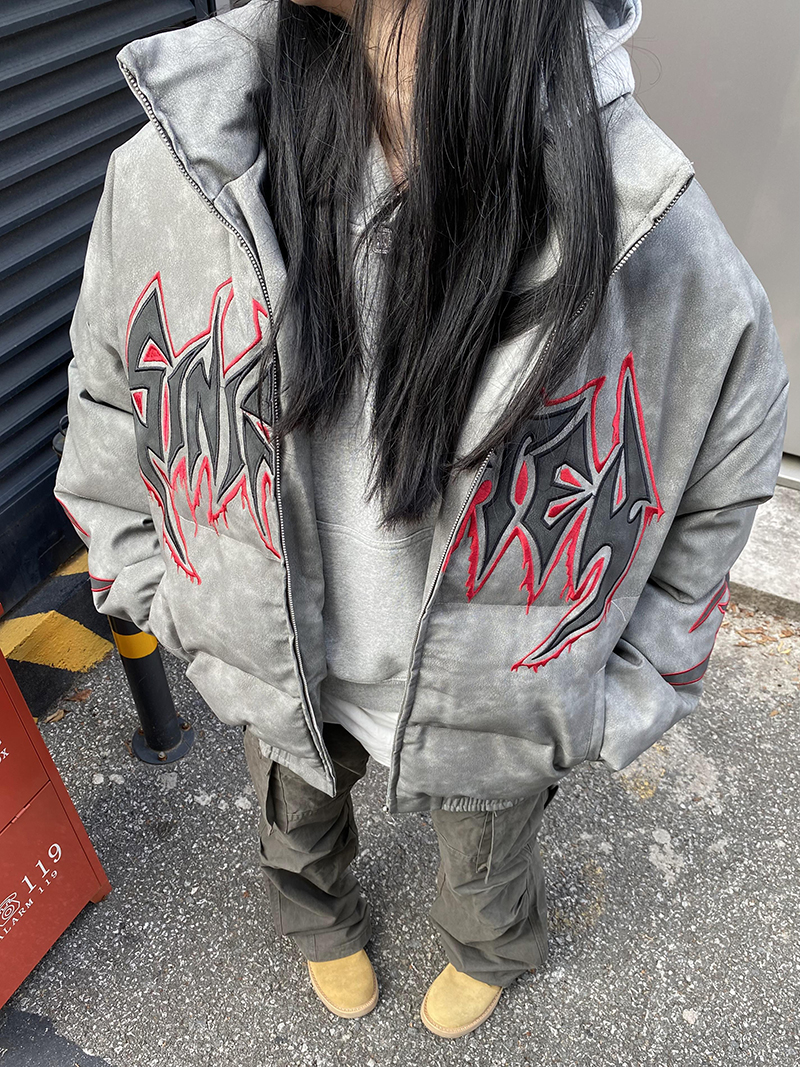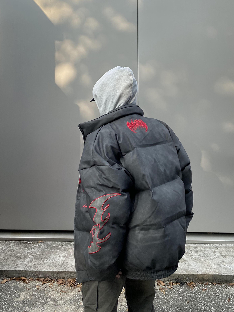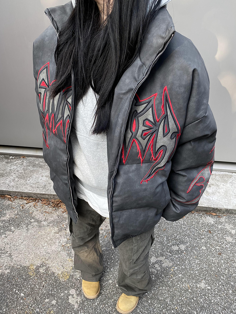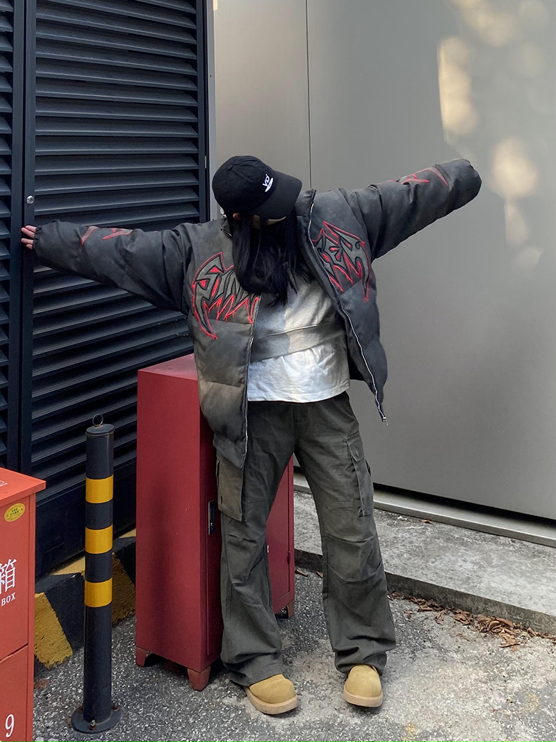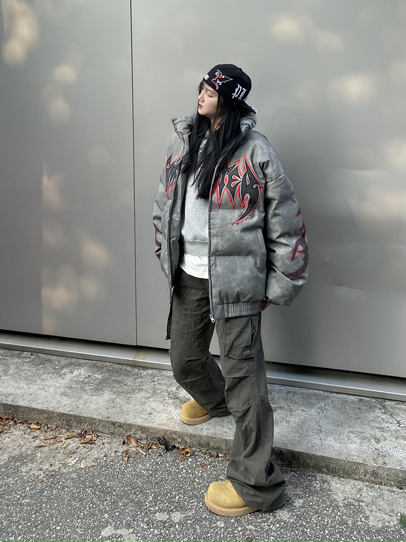 cemoliqiu原創荊棘刺綉字母加厚棉衣情侶秋冬季加厚情侶裝羽絨服