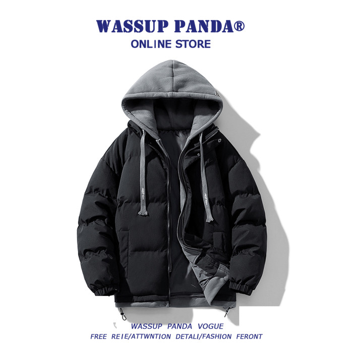 WASSUP PANDA假兩件連帽羽絨服男冬季新款保暖加厚麵包服外套棉服