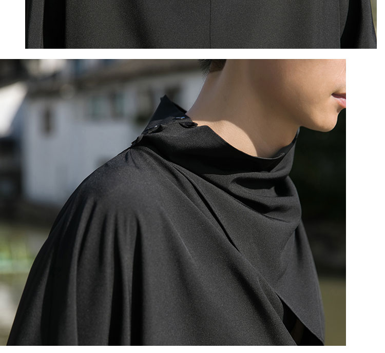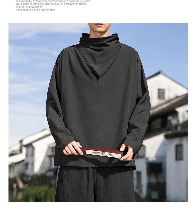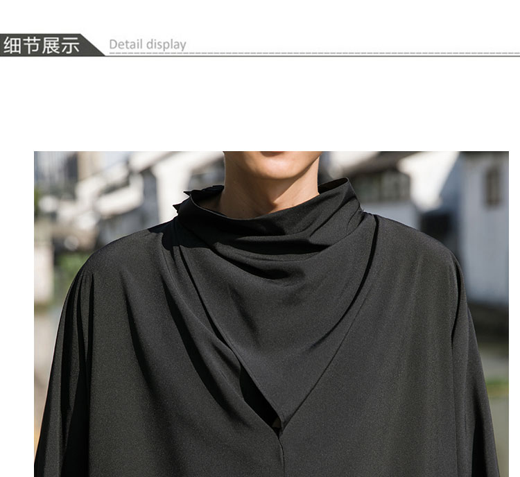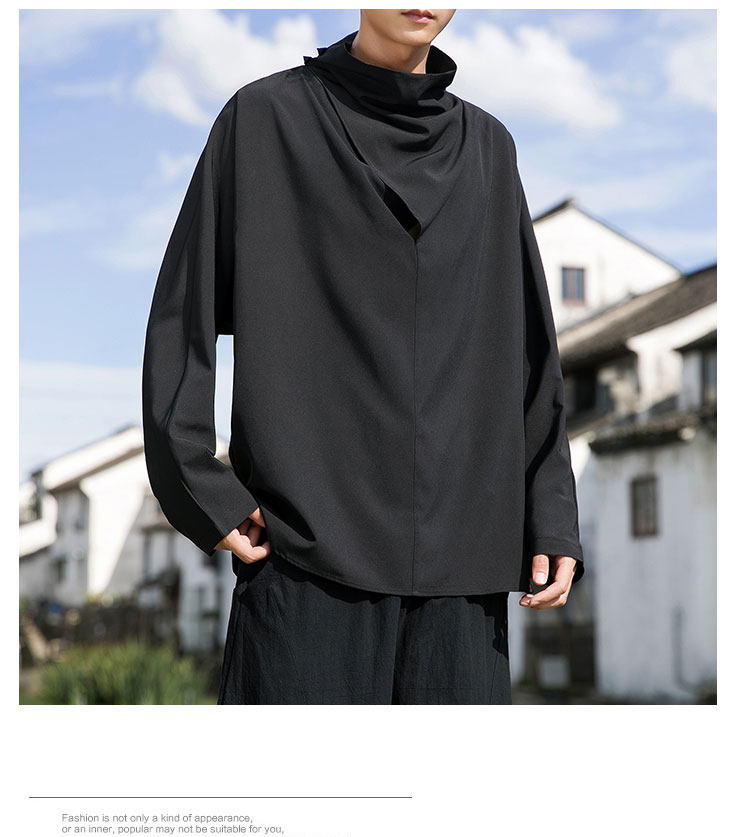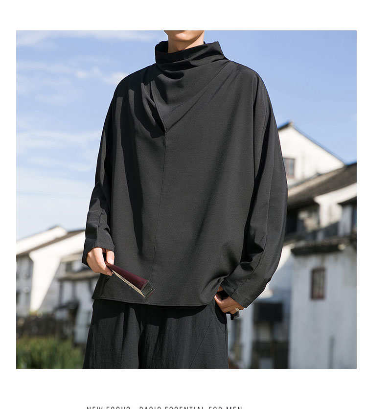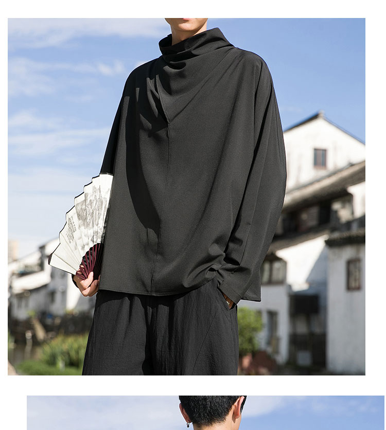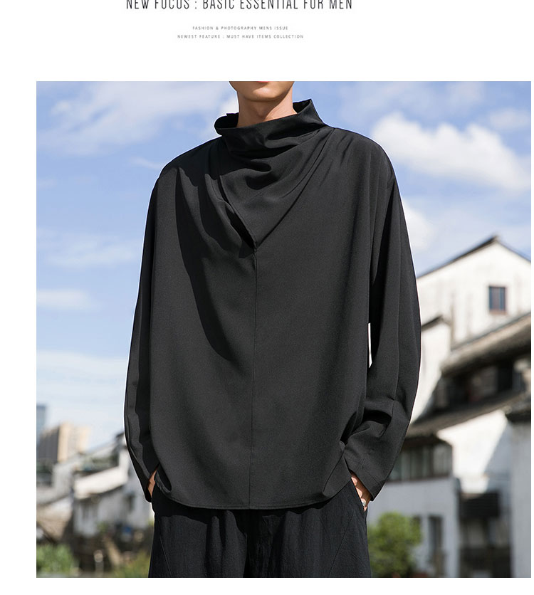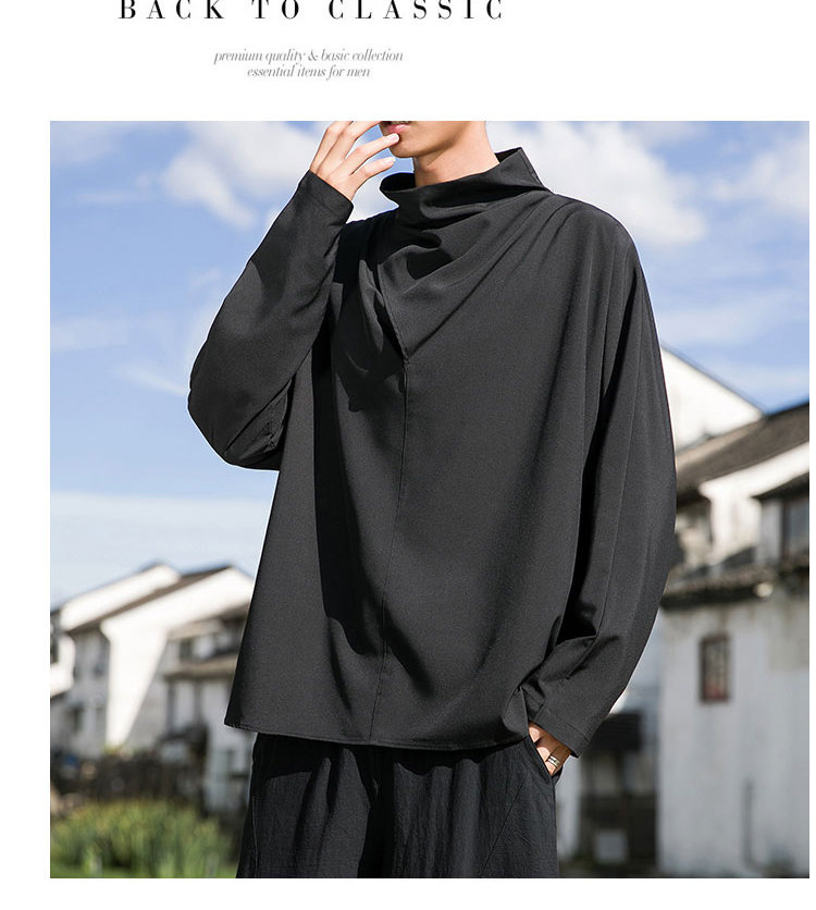 暗黑系山本風小衆半高領長袖T恤男不規則設計新中式男裝寬松打底