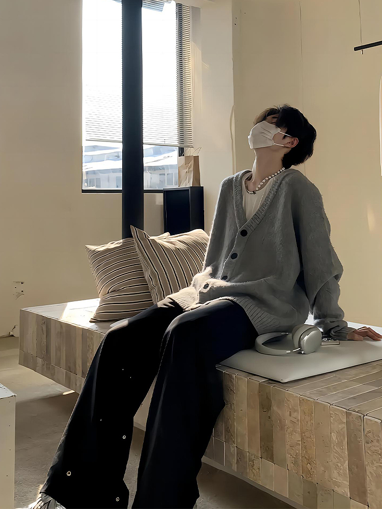 cleanfit開衫毛衣男款寬松慵懶高級感痞帥針織外套韓系氛圍感穿搭