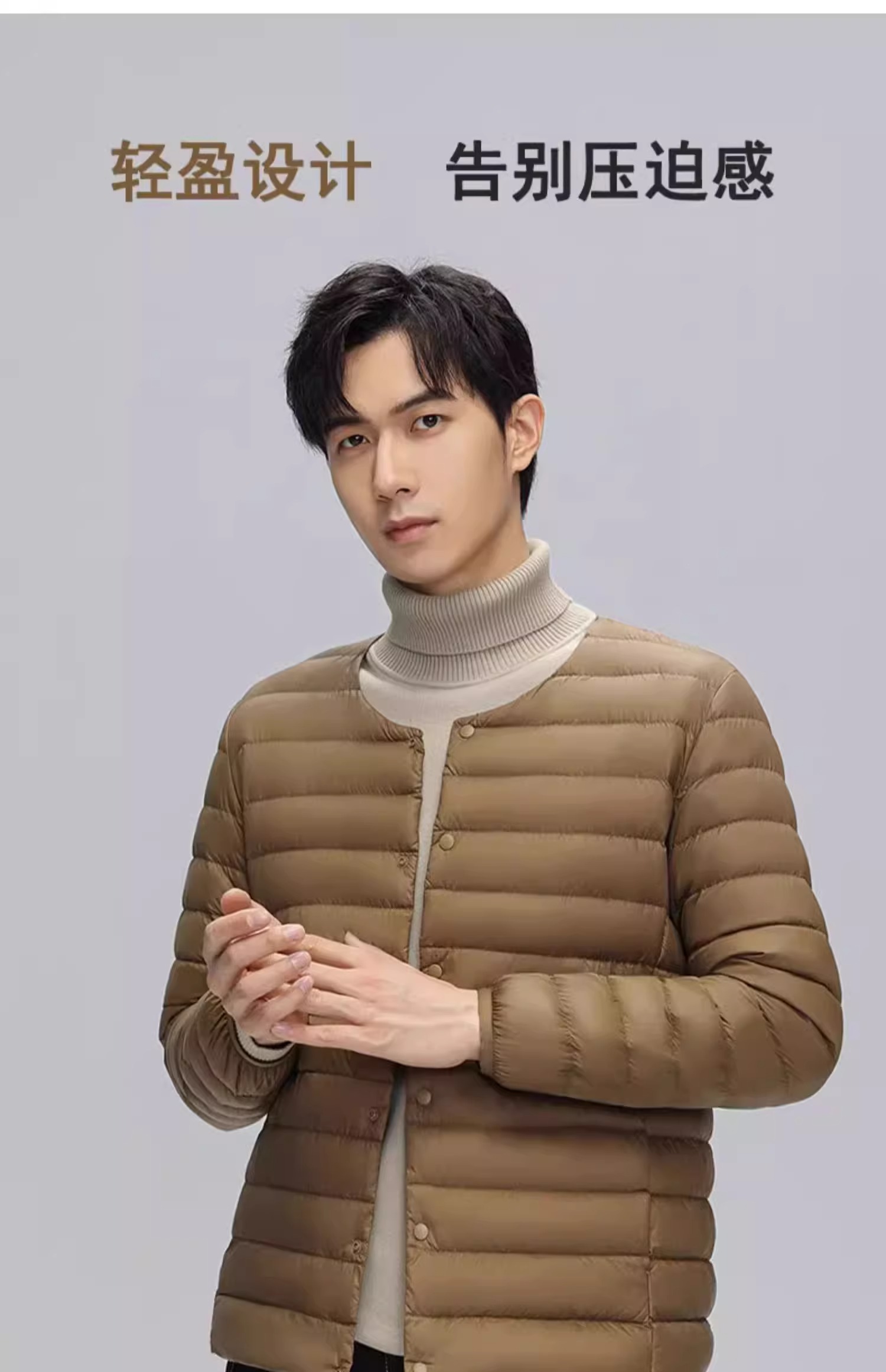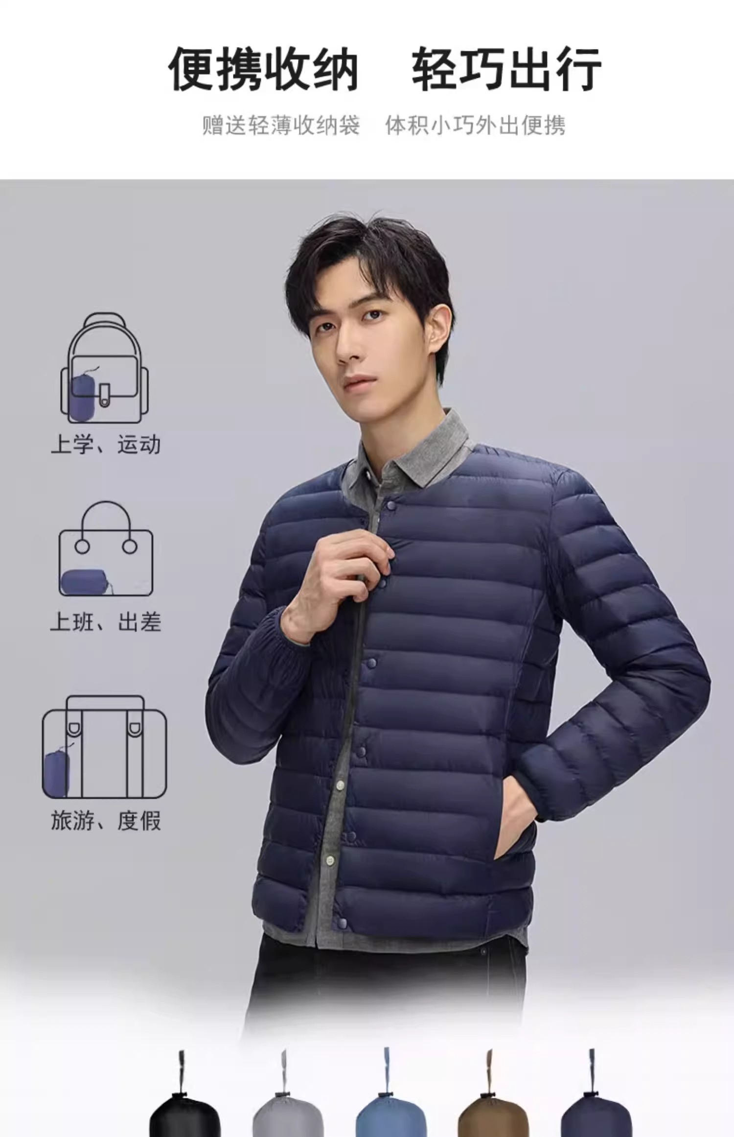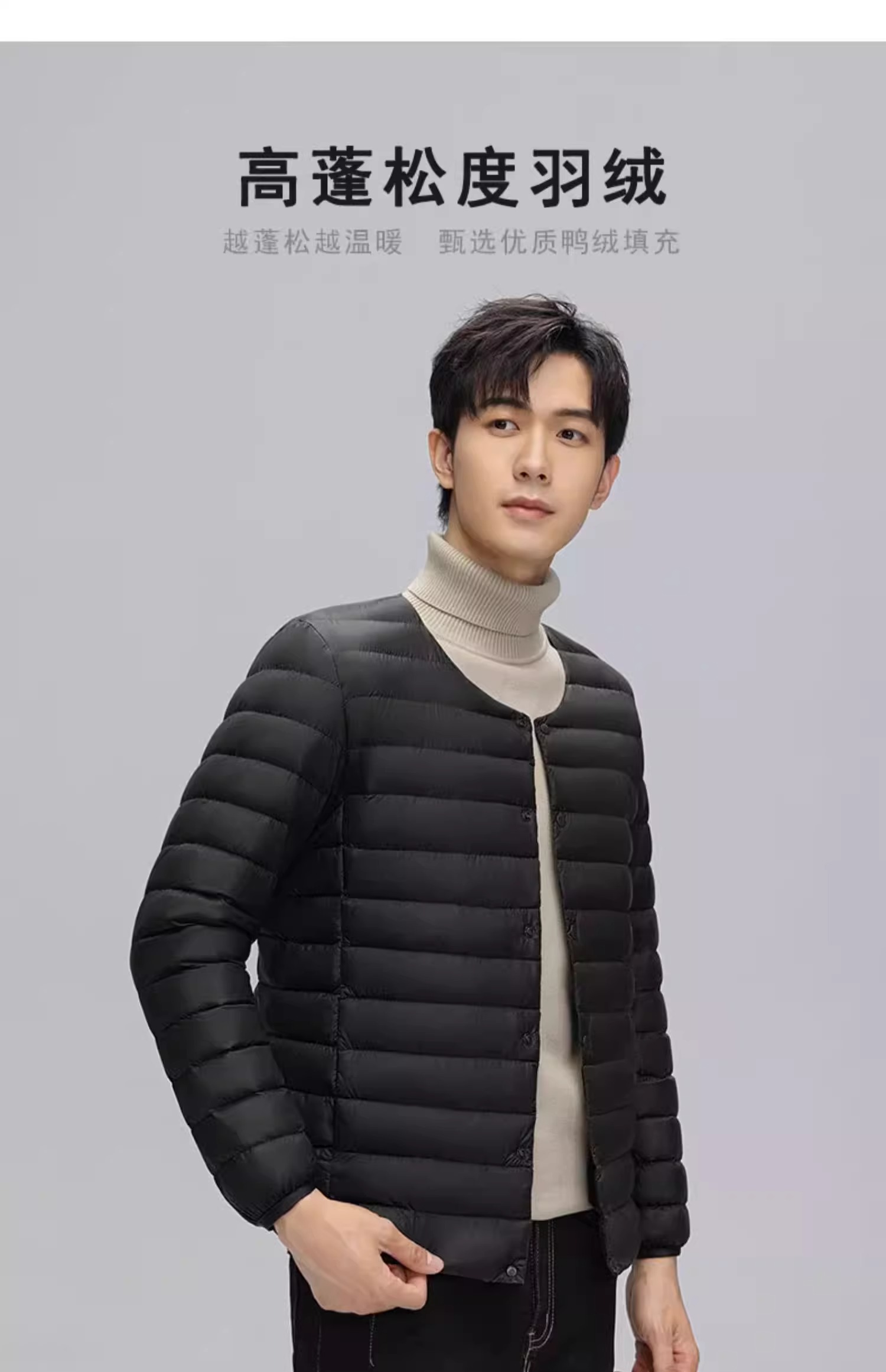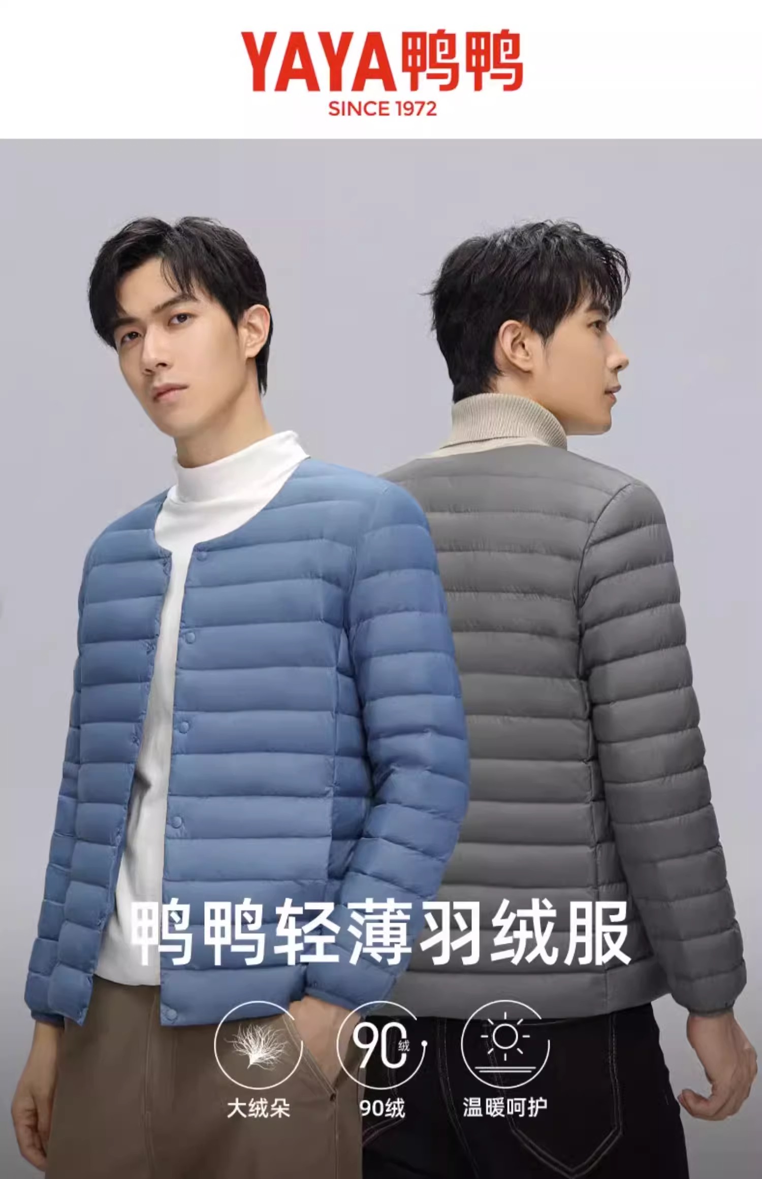 鴨鴨輕薄薄款內膽羽絨服男2025年冬季新款輕型短款保暖運動外套