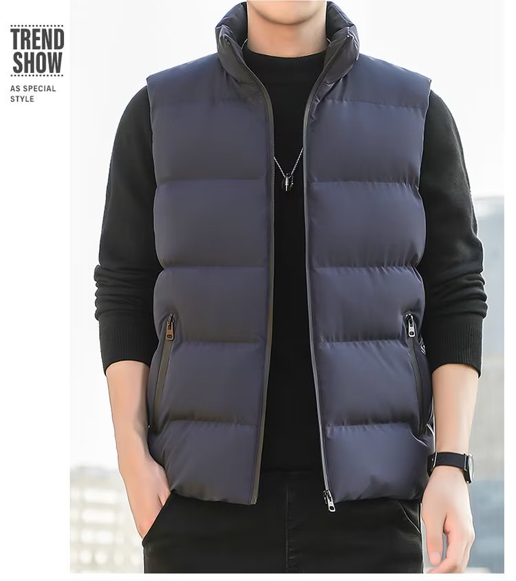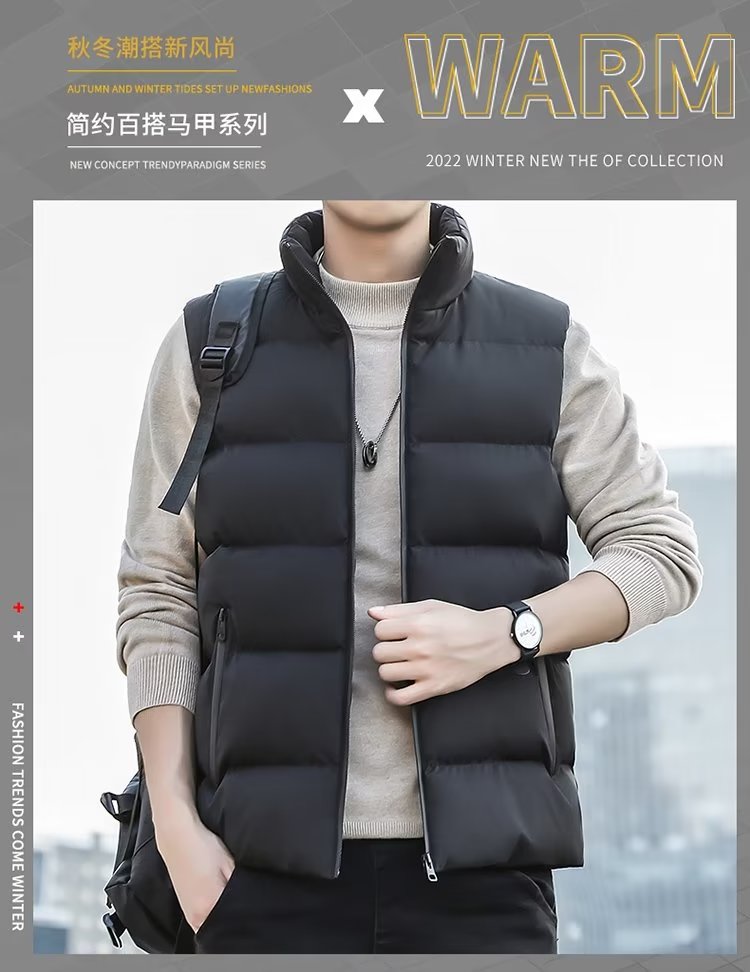 休閒風立領羽絨馬甲男士秋冬季拉鍊加厚保暖休閒坎肩背心上衣外套