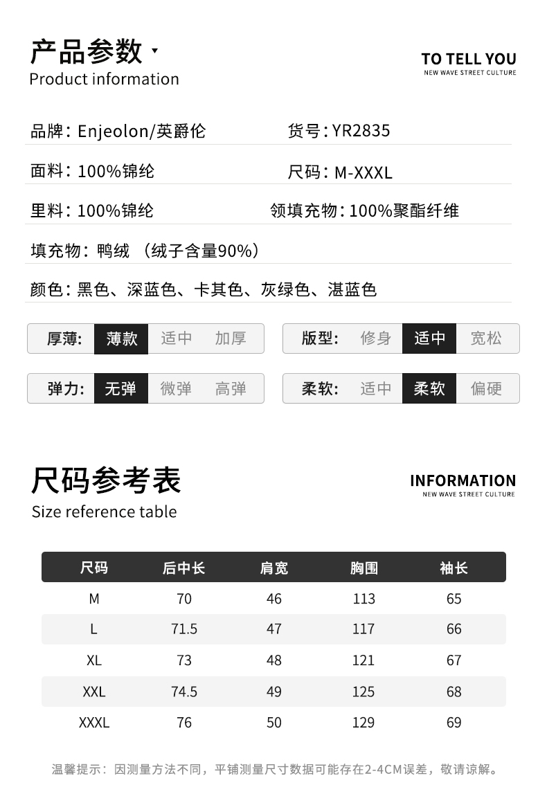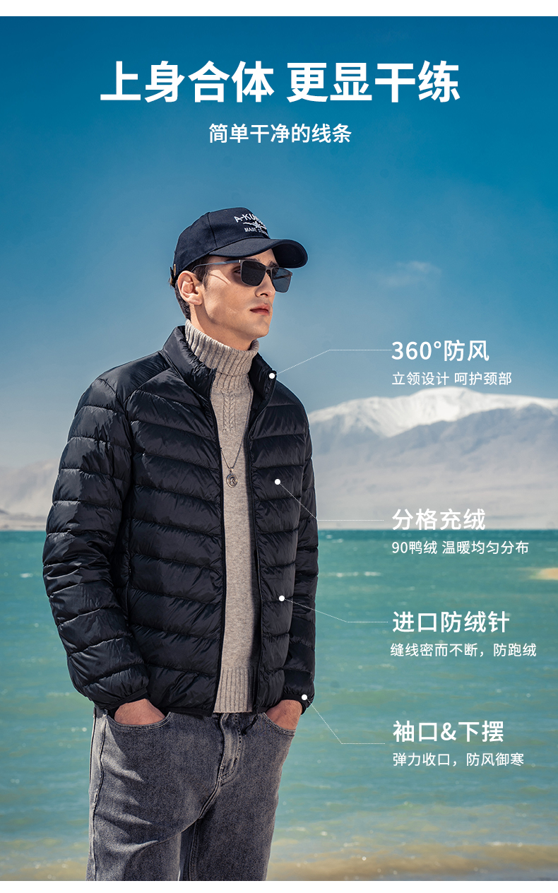 英爵倫 輕薄可攜式羽絨服男款秋冬季鴨絨排骨內膽男士保暖立領外套
