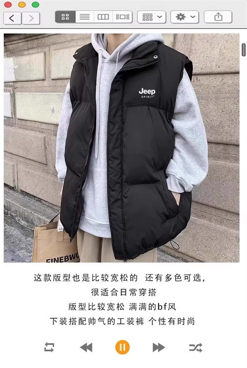 JEEP SPIRIT吉普青少年棉馬甲男士秋冬加厚保暖馬夾坎肩背心外套