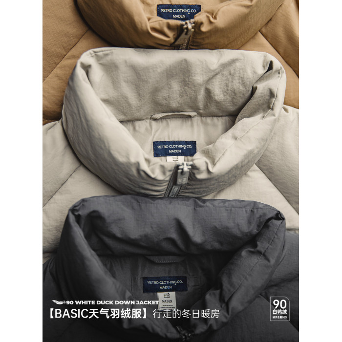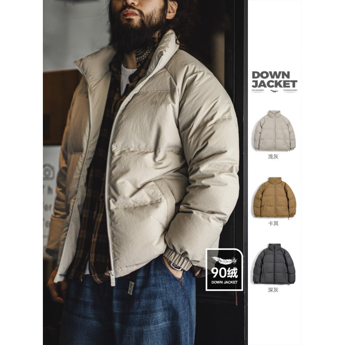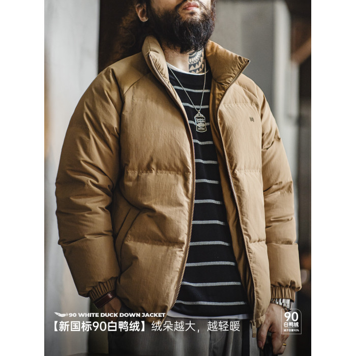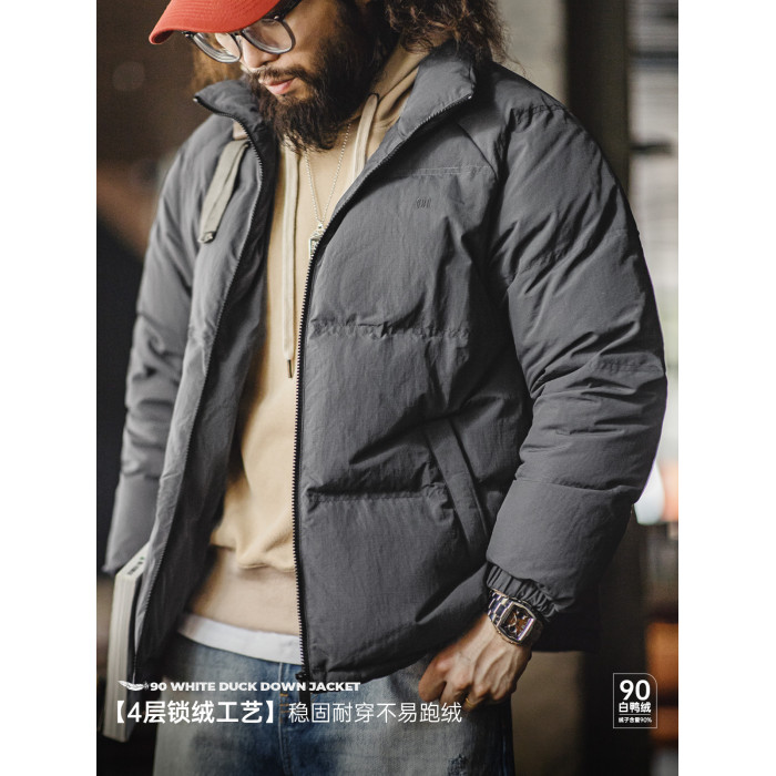馬登工裝美式休閒立領90白鴨絨羽絨服戶外短款麵包服保暖外套男冬