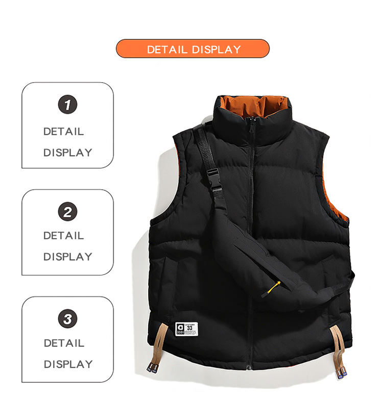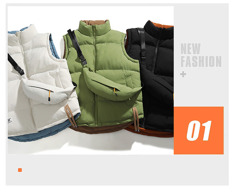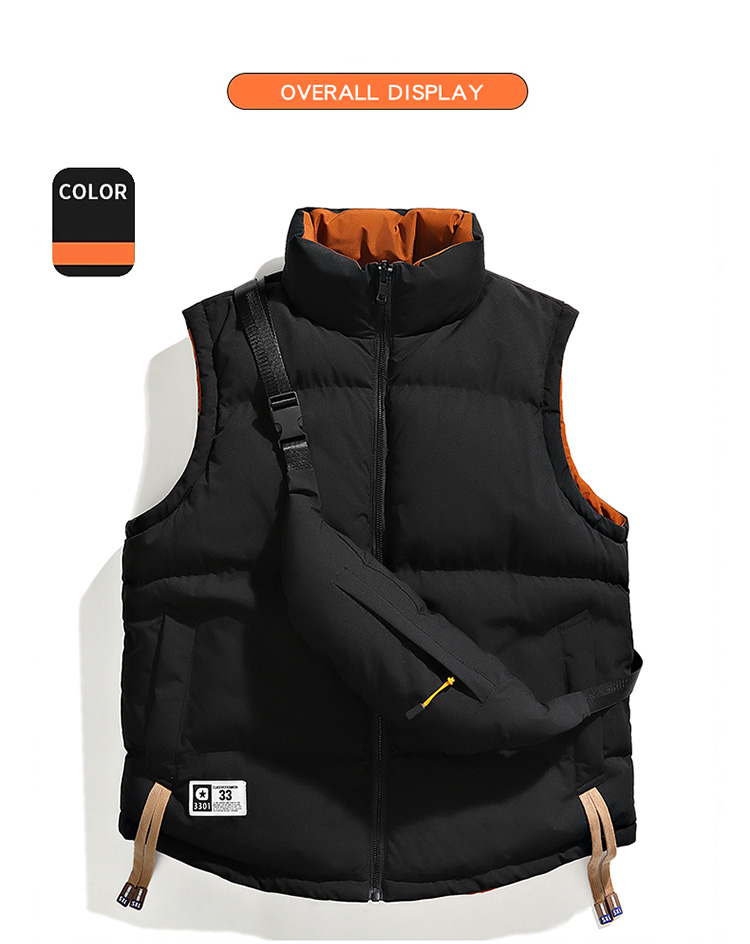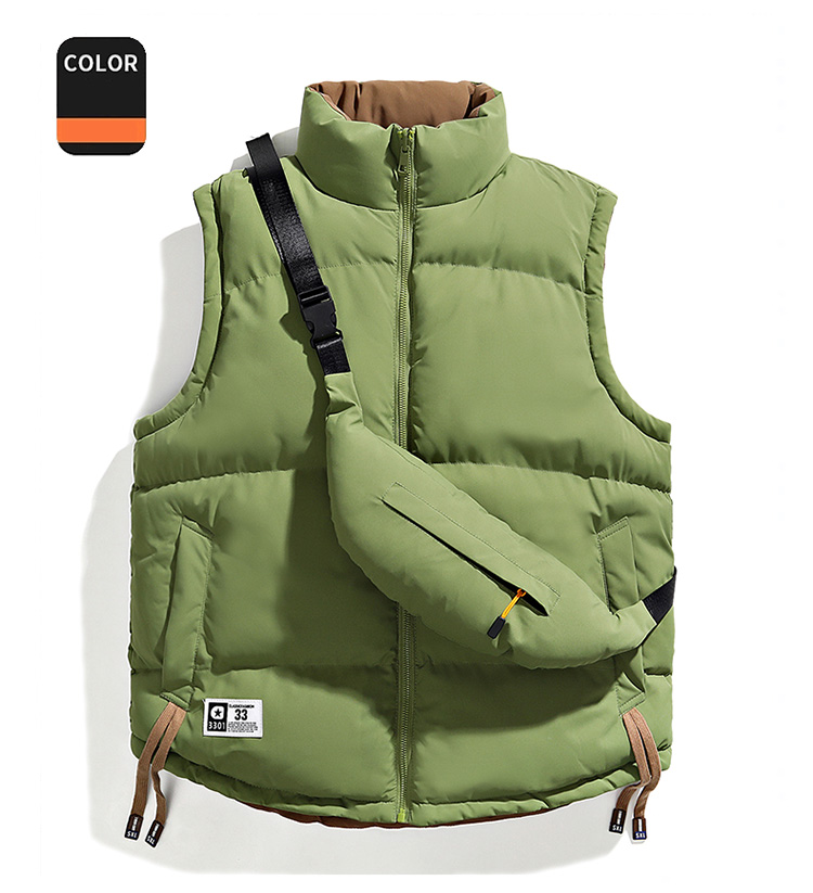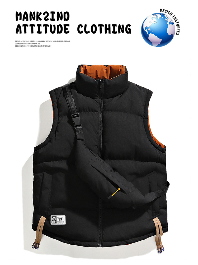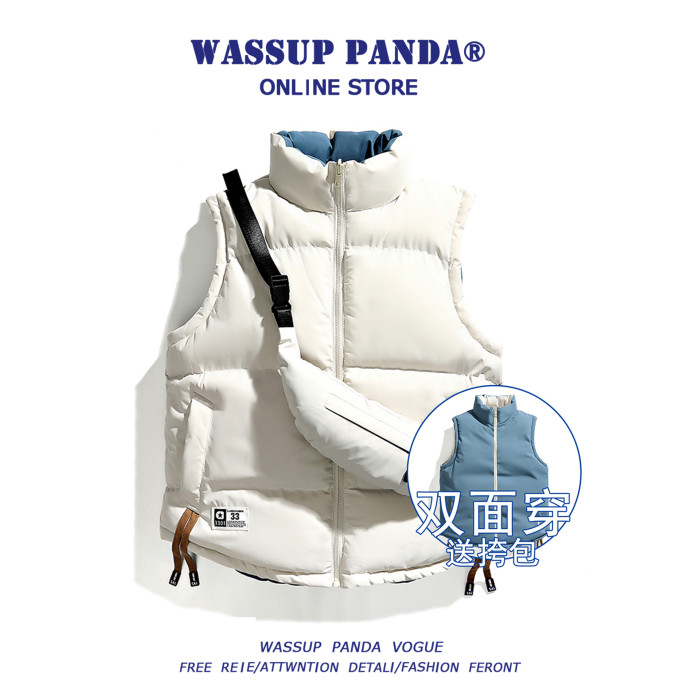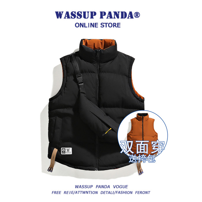 WASSUP PANDA兩面穿羽絨服馬甲男秋冬季保暖背心立領無袖棉服外套