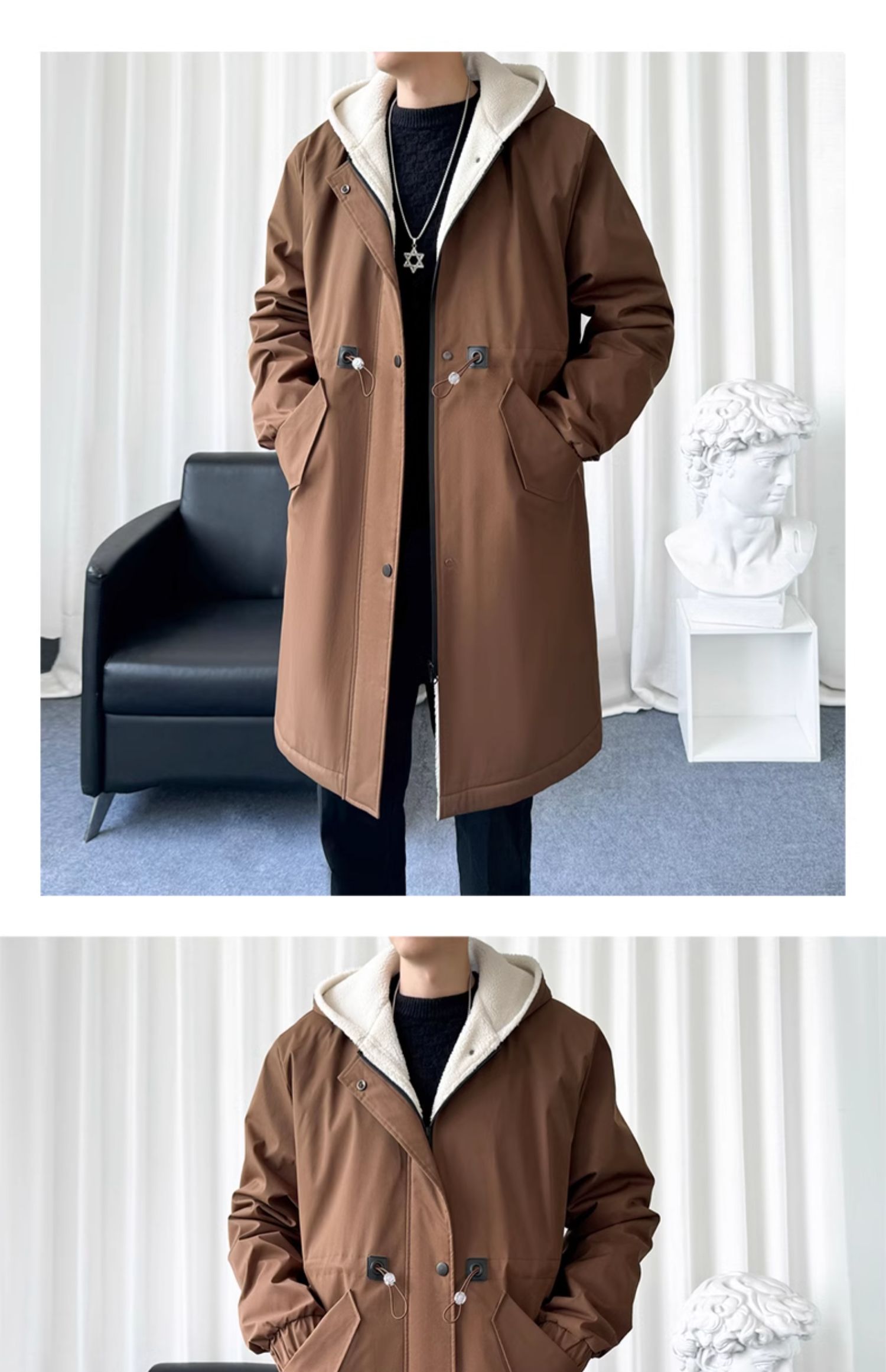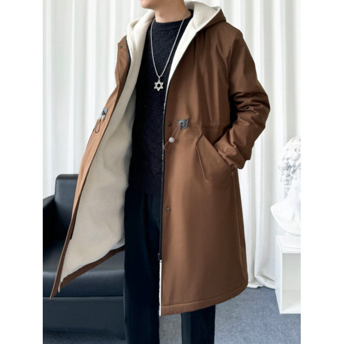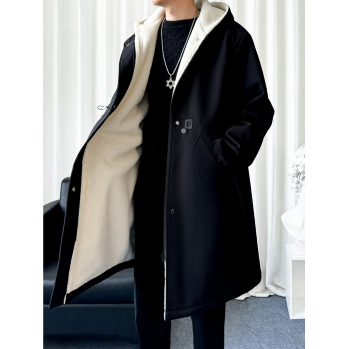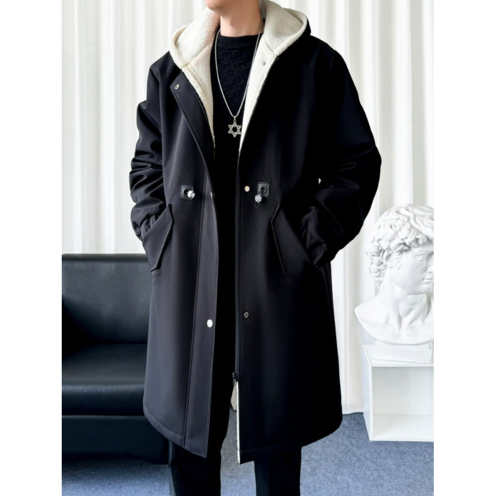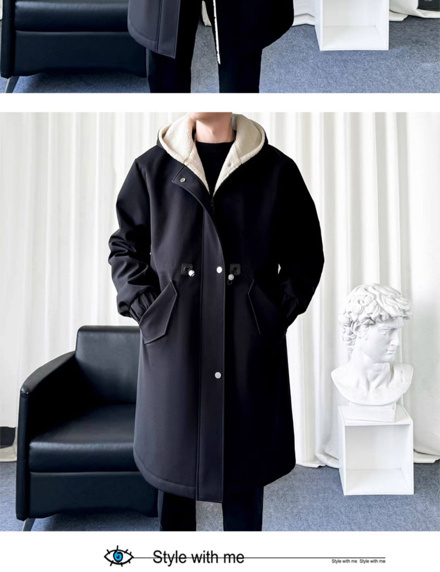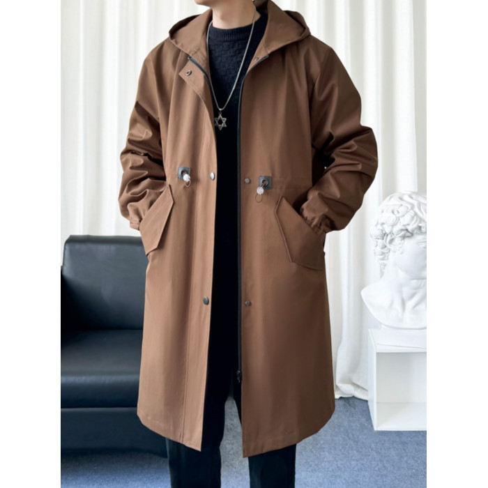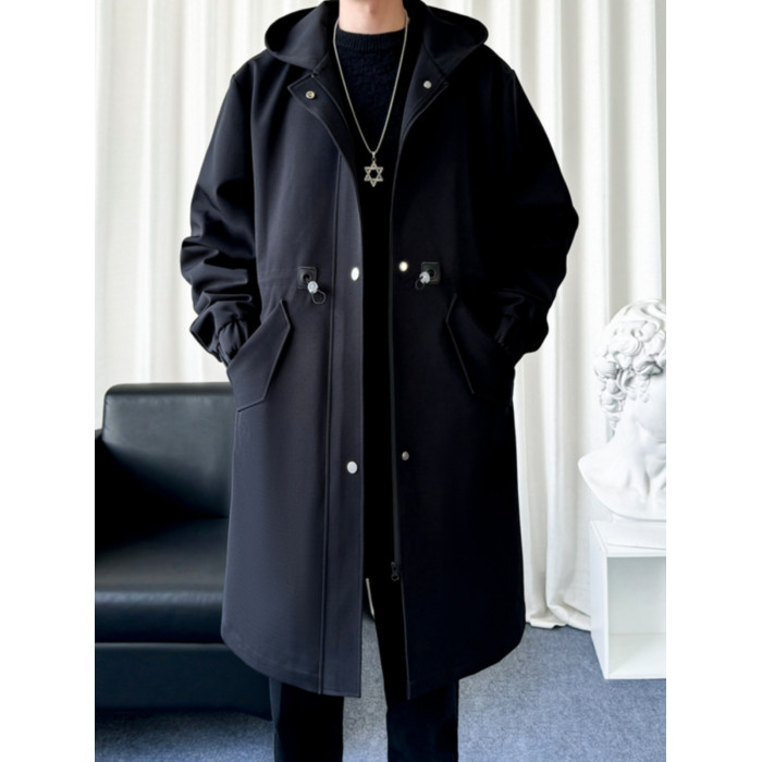 風衣外套男中長款加絨加厚大衣2025秋冬情侶馬甲休閒連帽帥氣潮牌