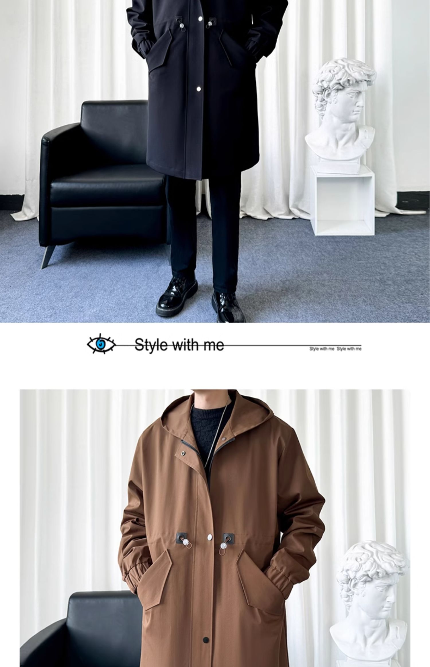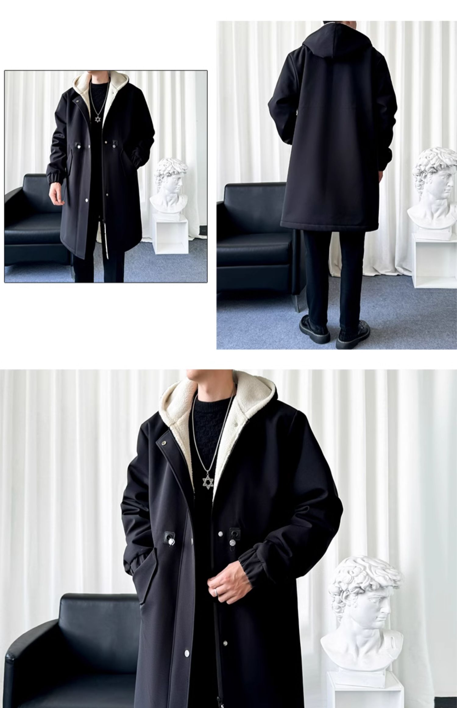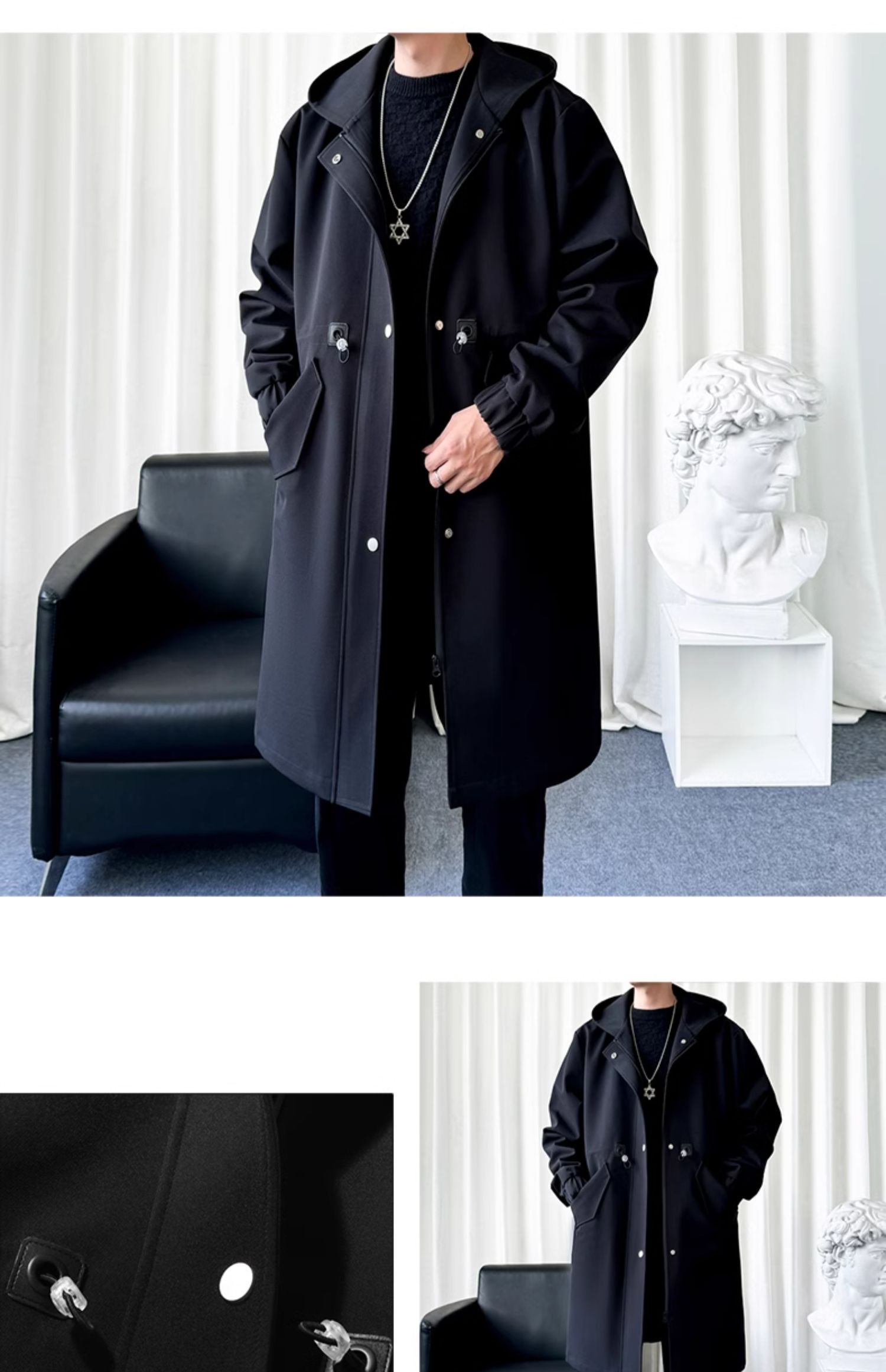 風衣外套男中長款加絨加厚大衣2025秋冬情侶馬甲休閒連帽帥氣潮牌