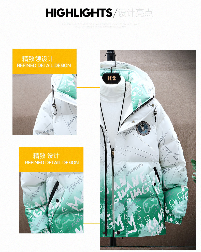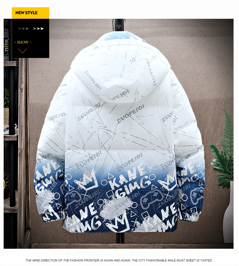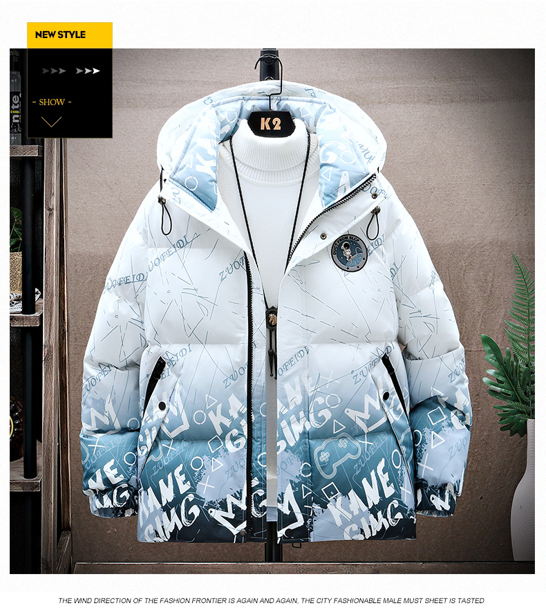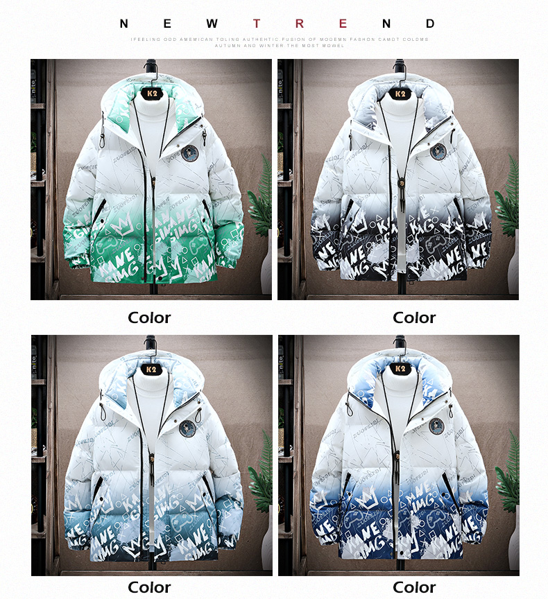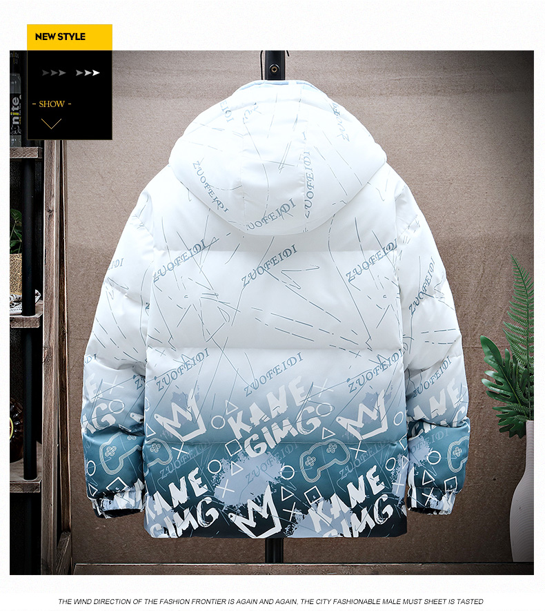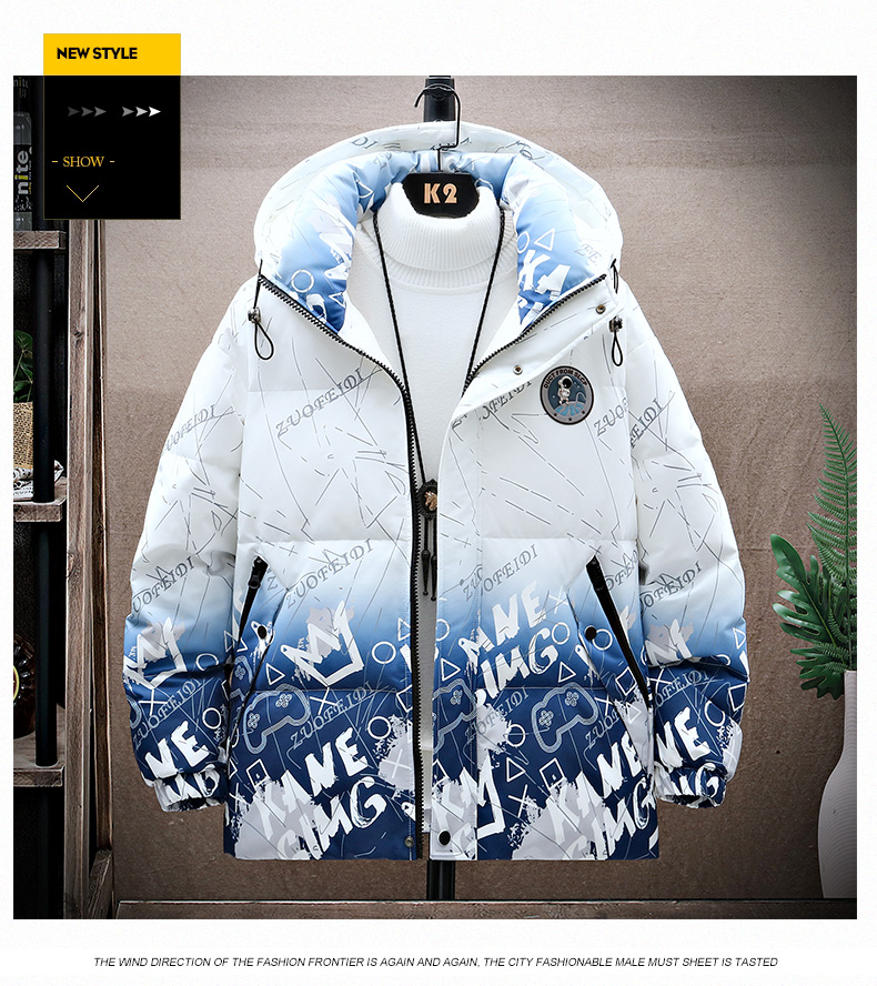 男士羽絨服2025新款潮流寬松休閒連帽加厚漸變棉衣青少年冬季外套