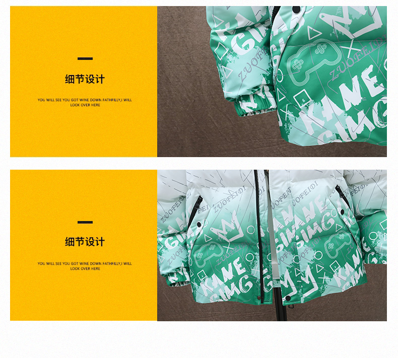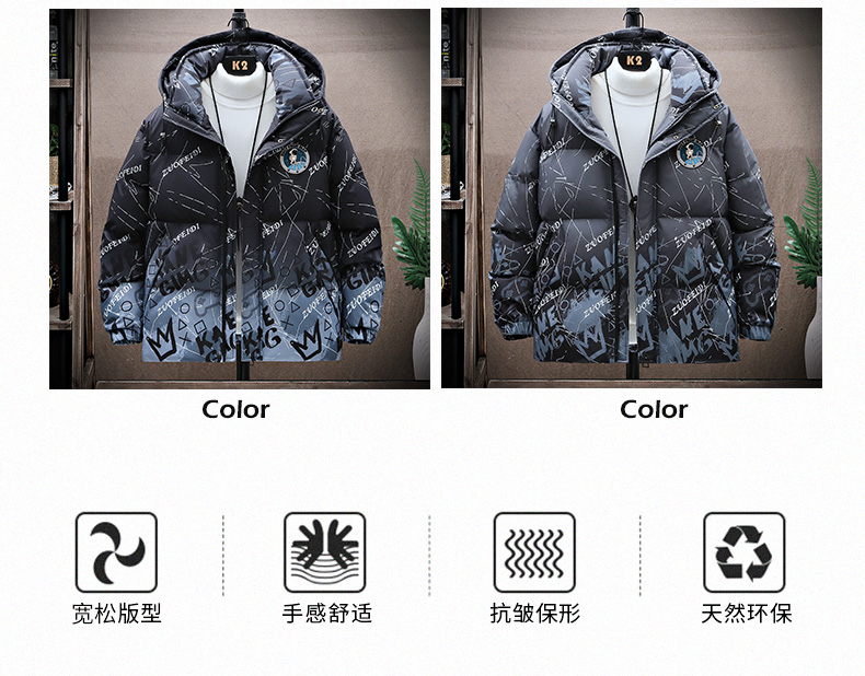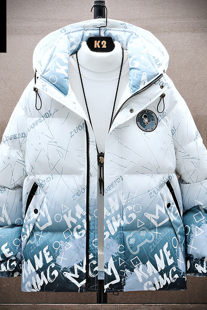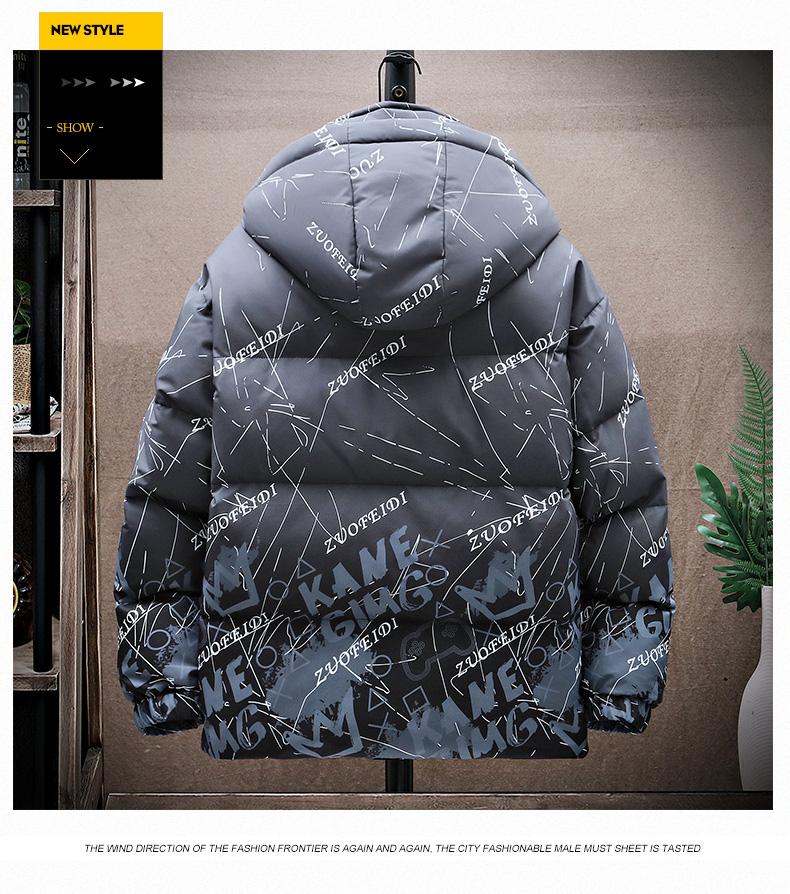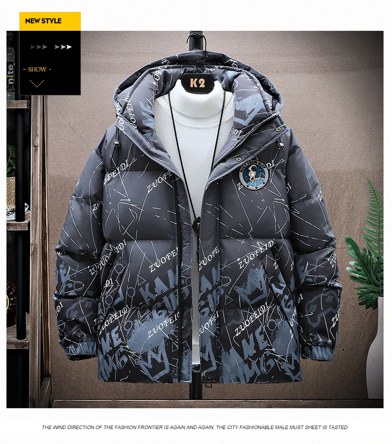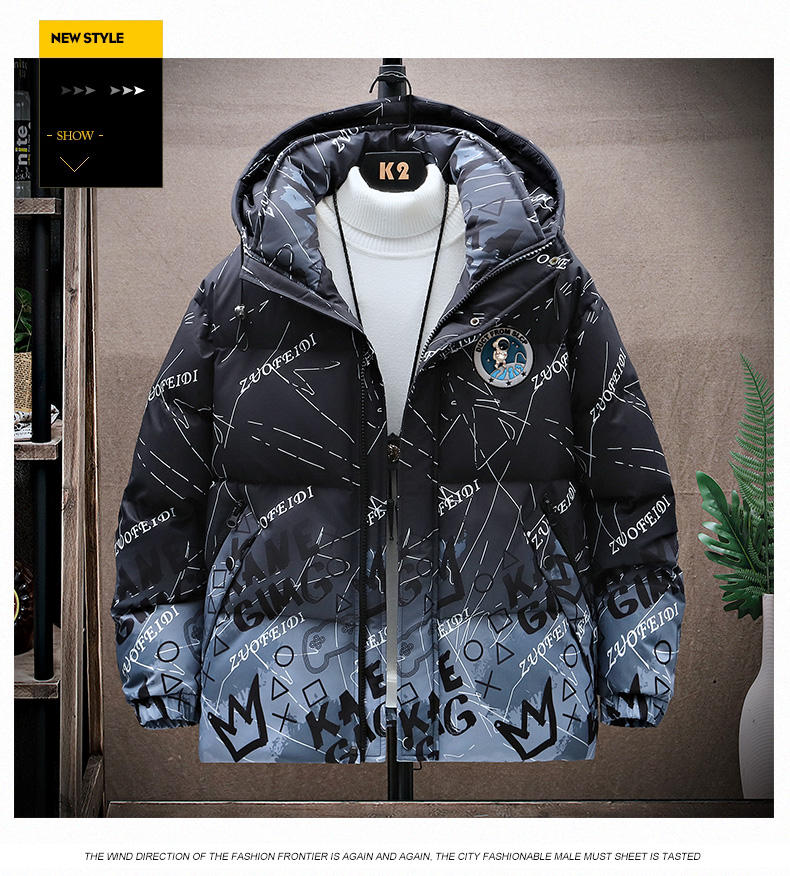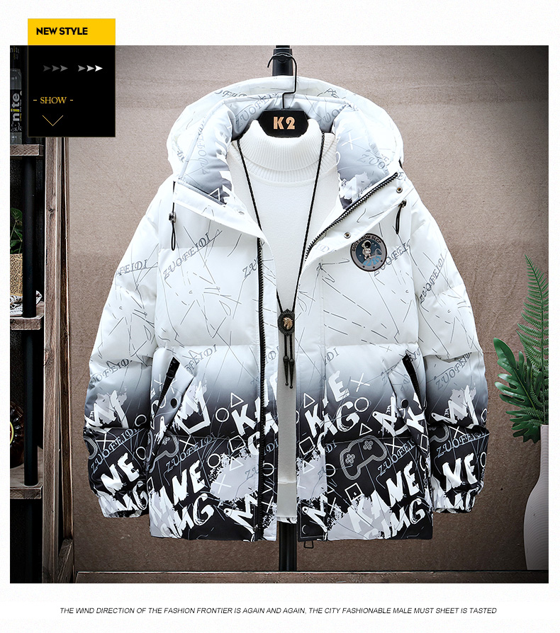 男士羽絨服2025新款潮流寬松休閒連帽加厚漸變棉衣青少年冬季外套