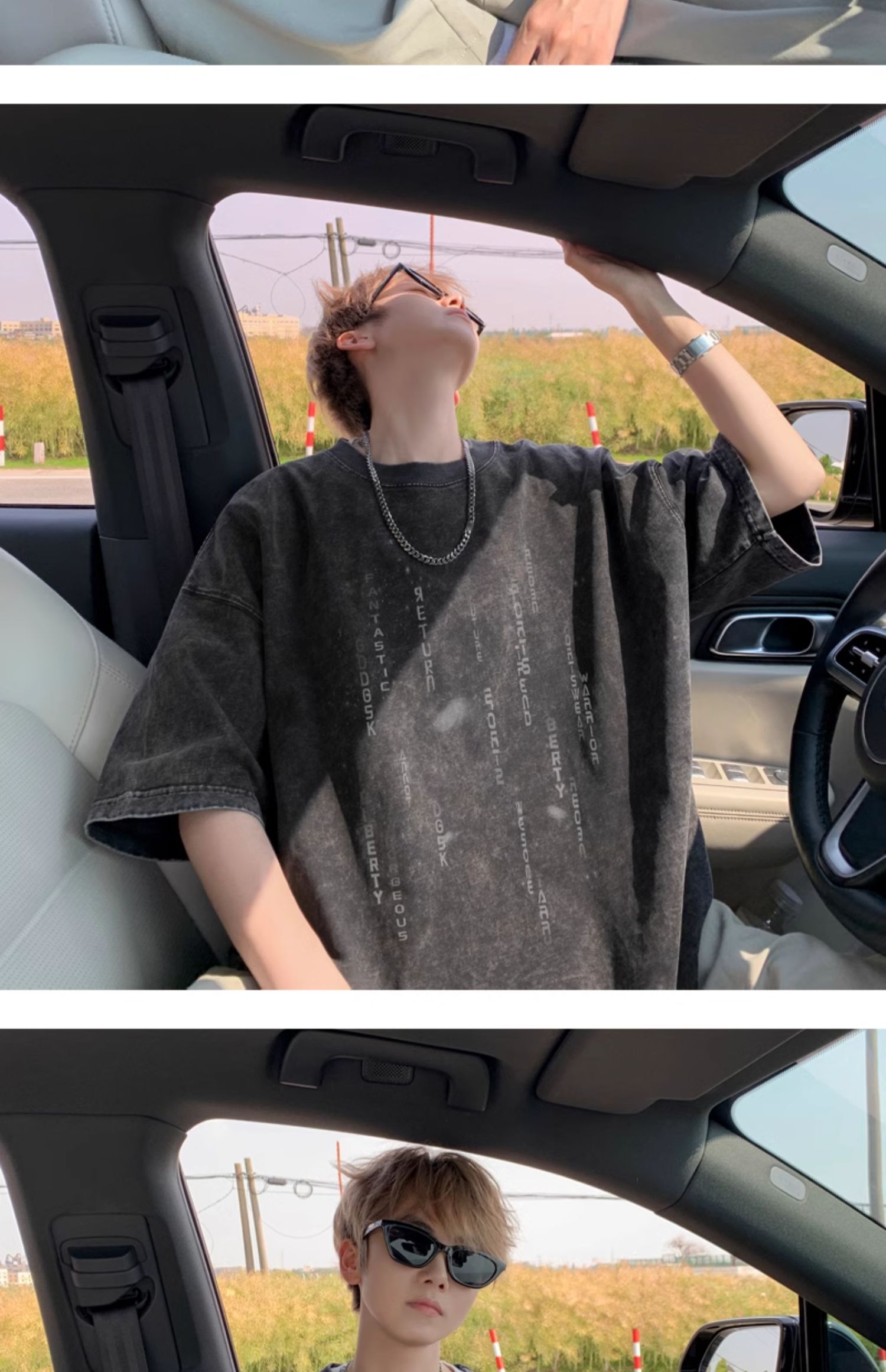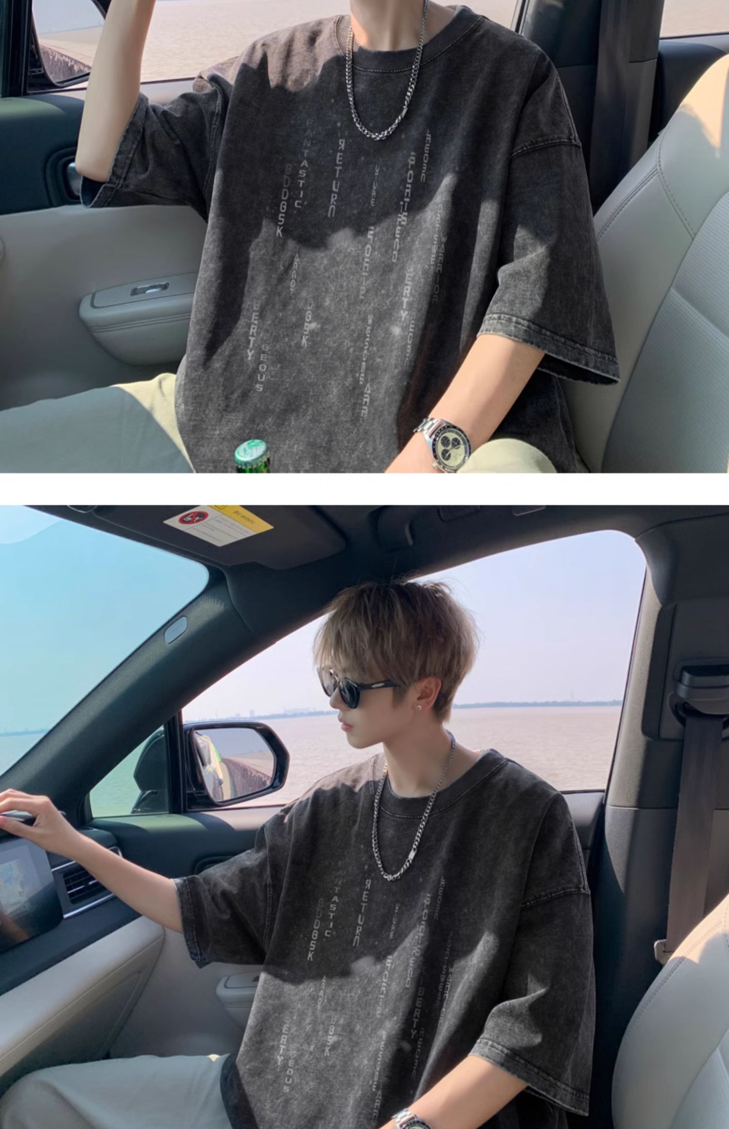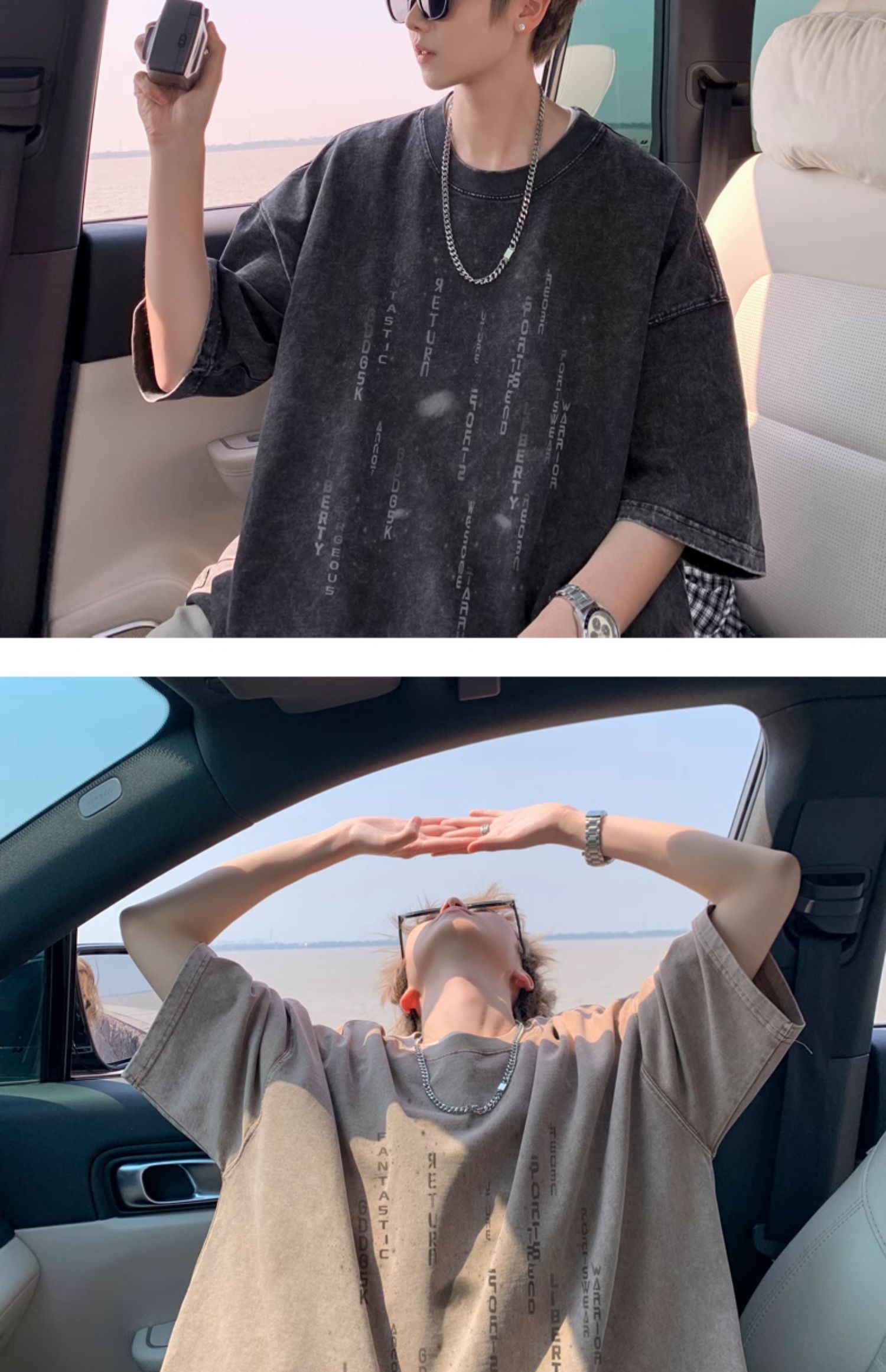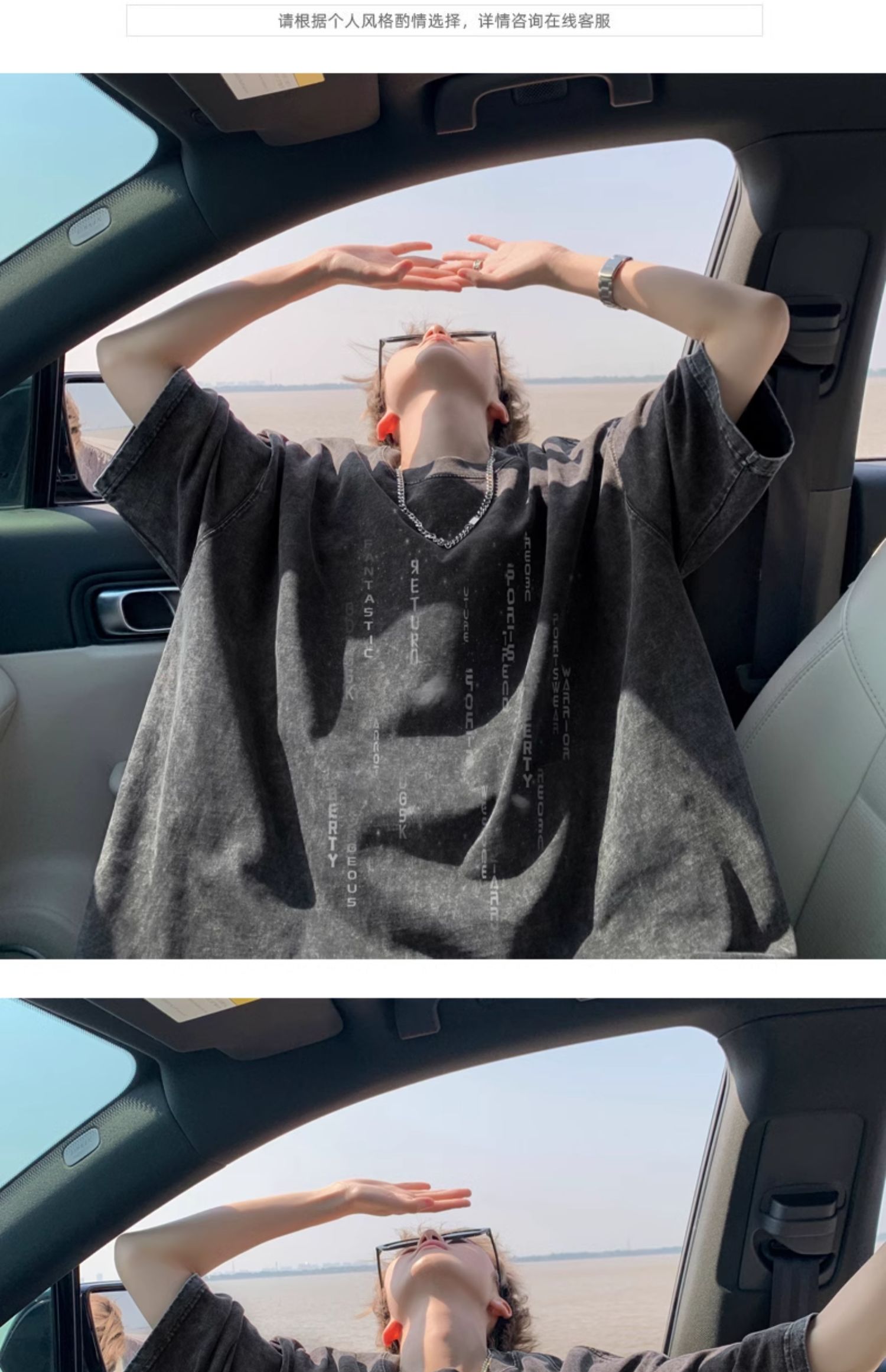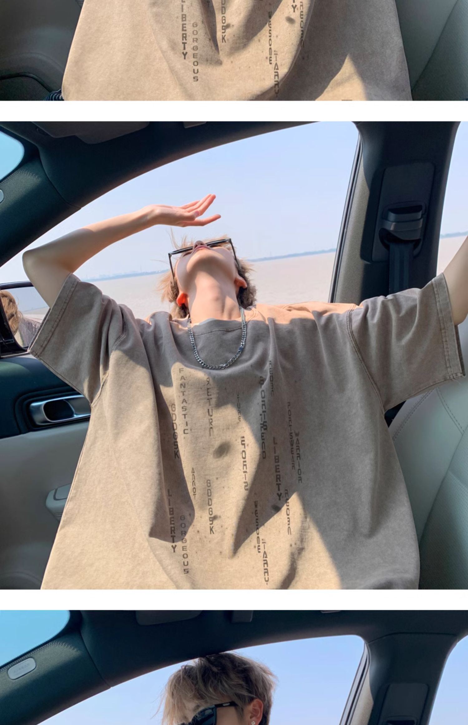 重磅水洗短袖t恤男夏季馬甲情侶流星字母印花寬松打底衫半袖體恤