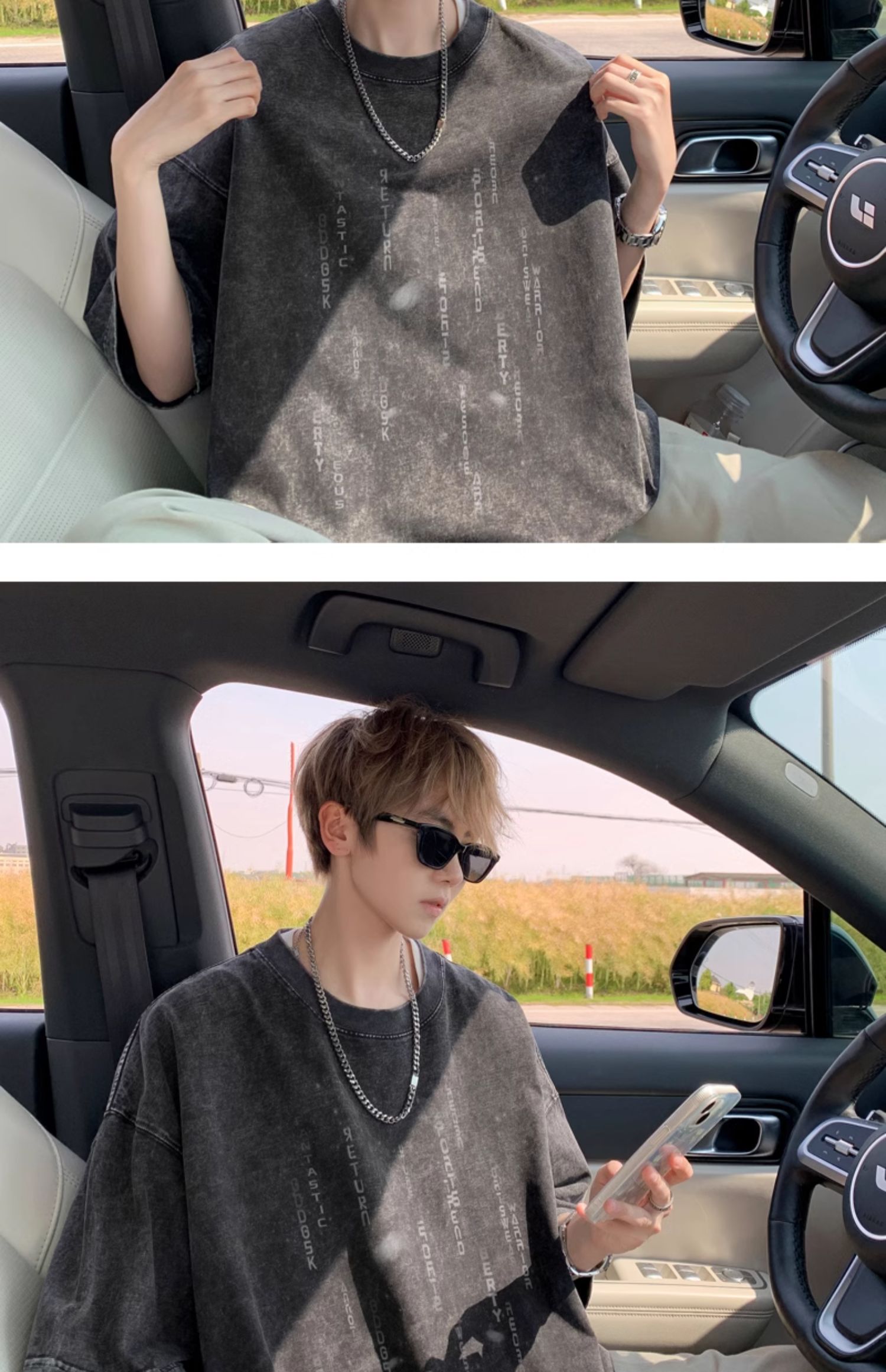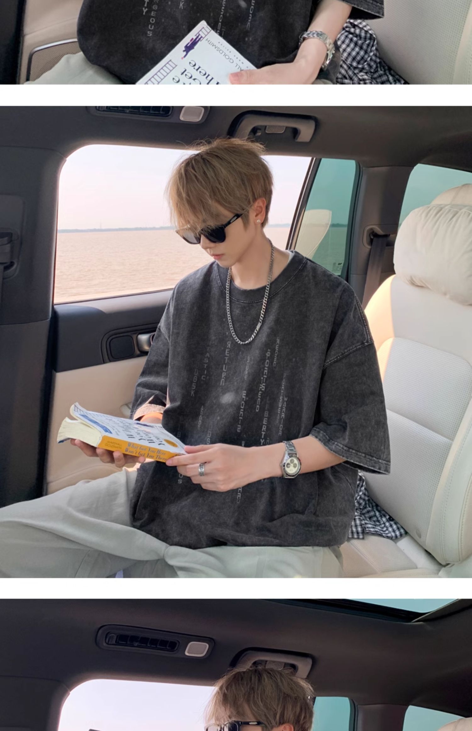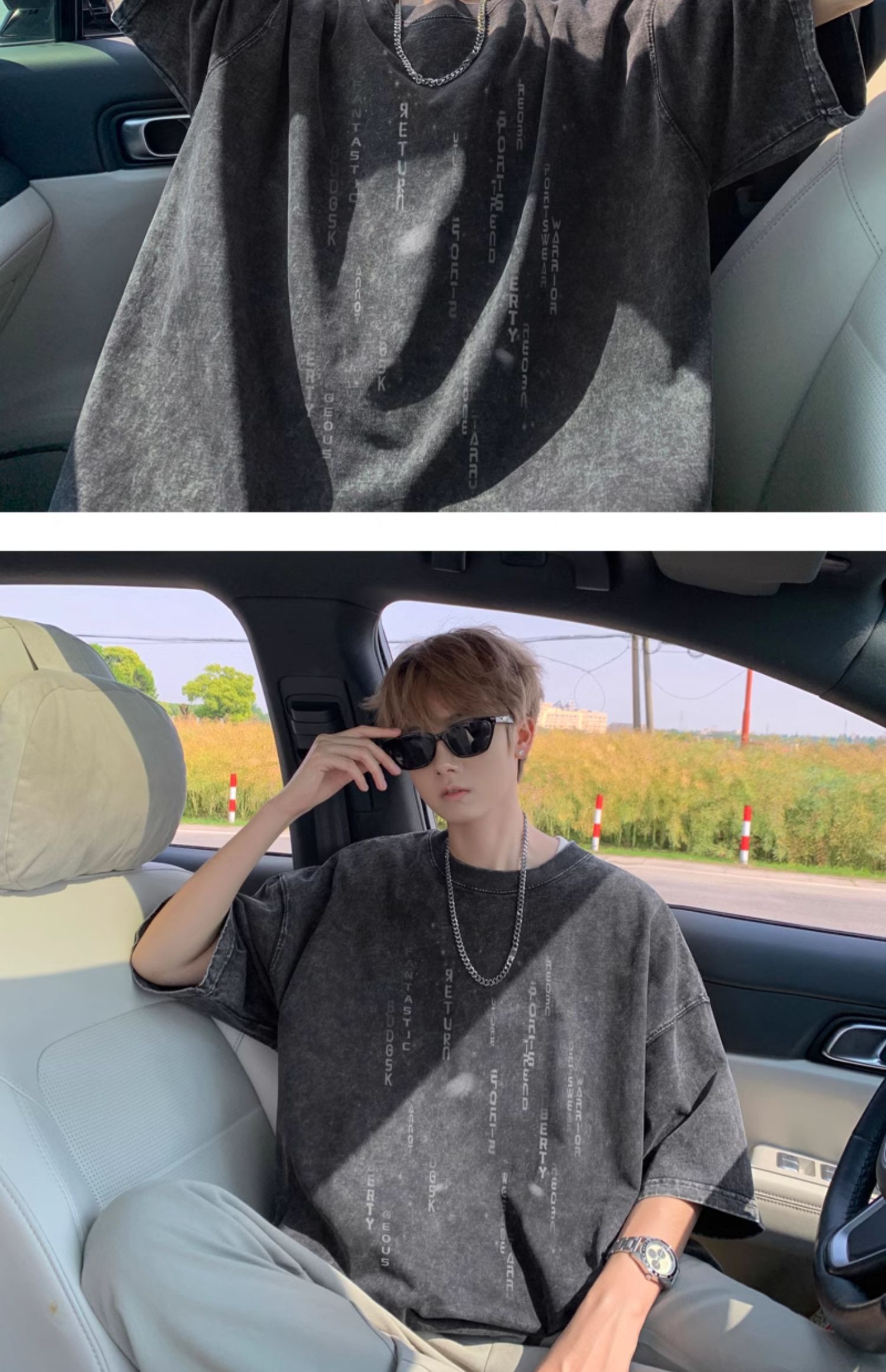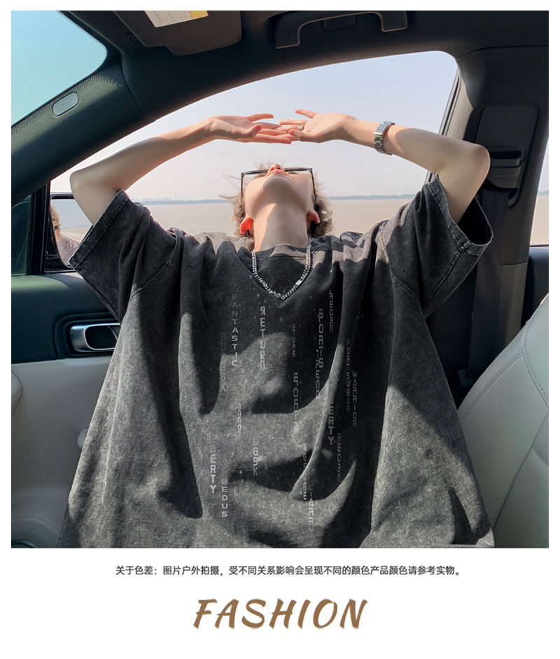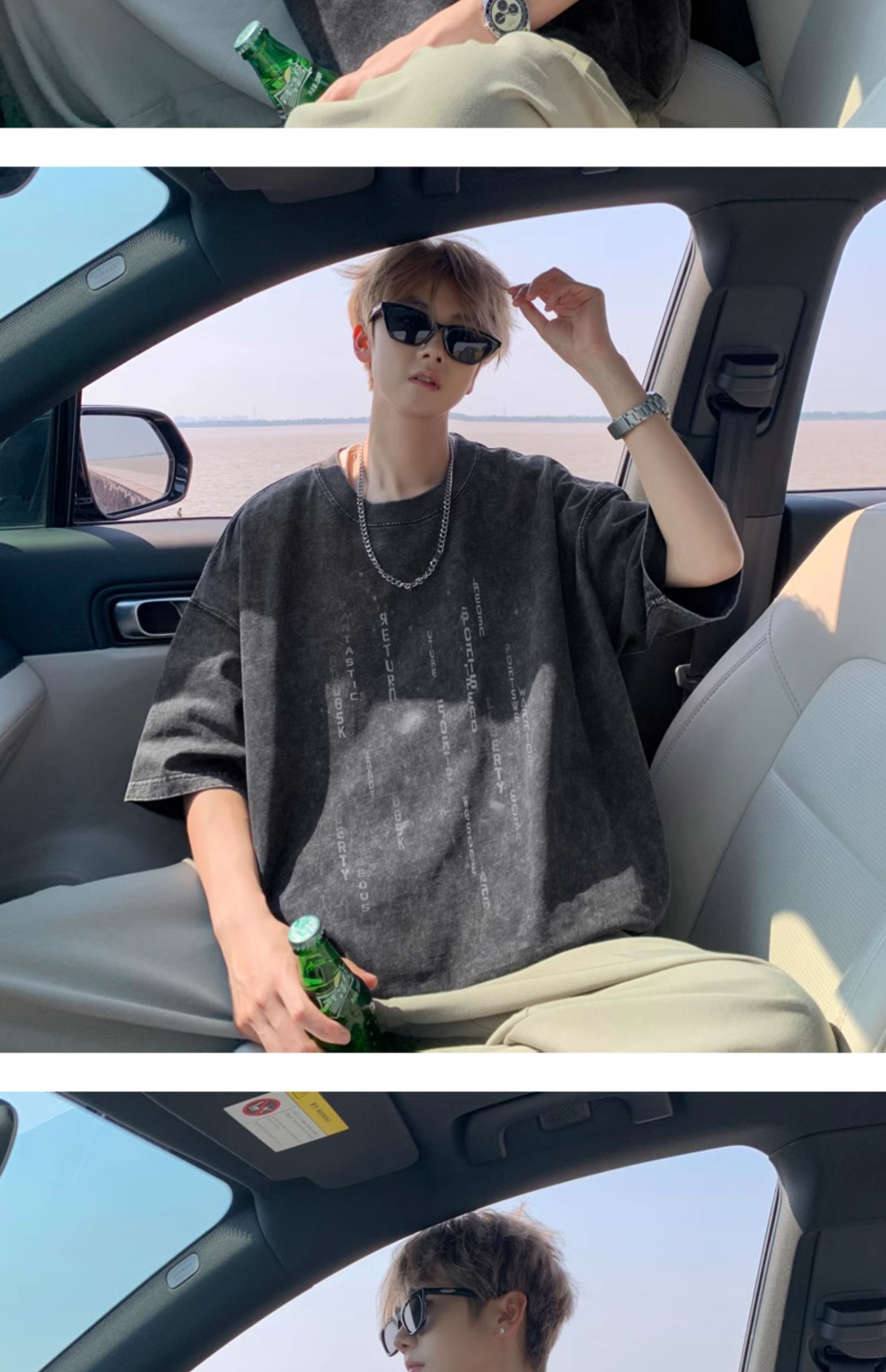 重磅水洗短袖t恤男夏季馬甲情侶流星字母印花寬松打底衫半袖體恤