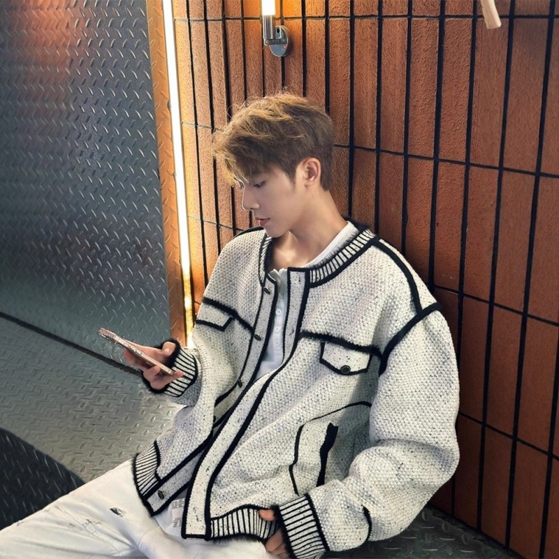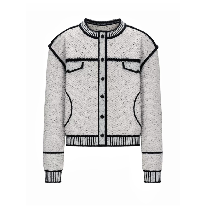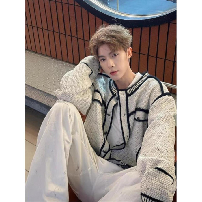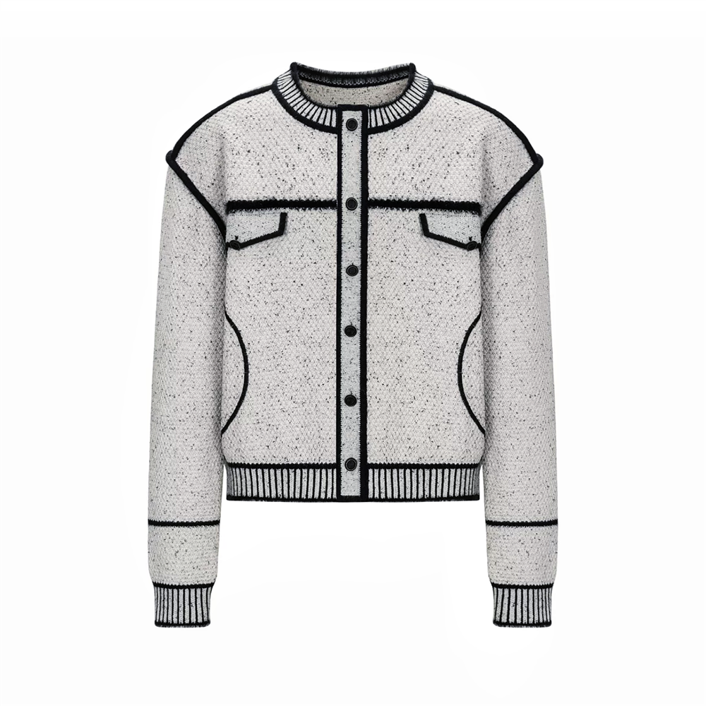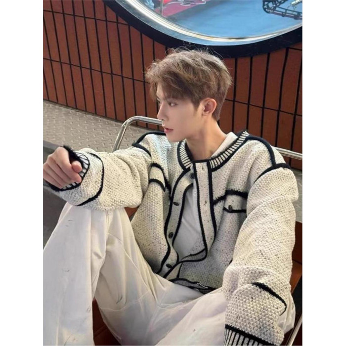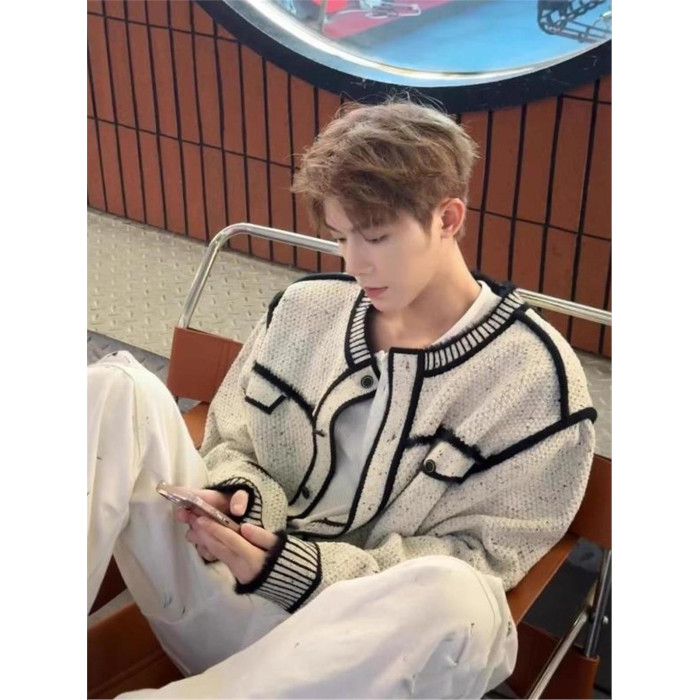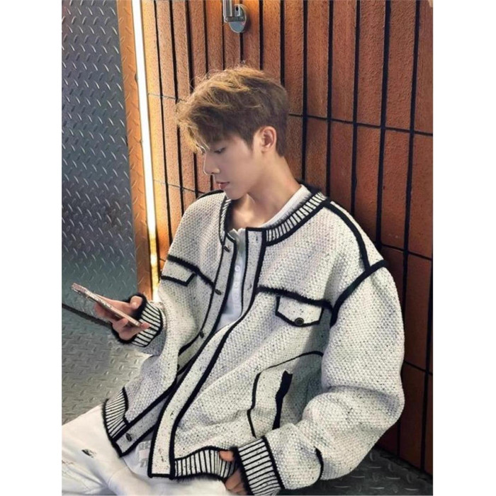 韓系黑白拼接解搆小香風撞色針織開衫男女秋冬寬松慵懶風毛衣外套
