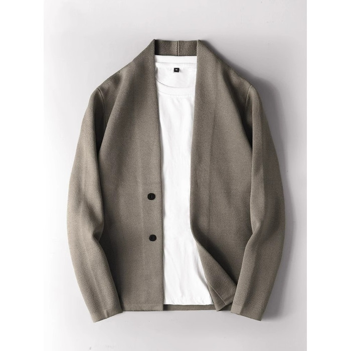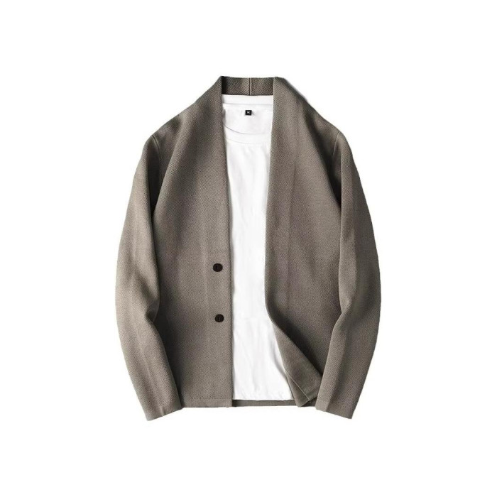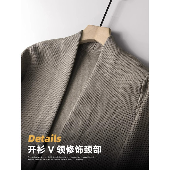 高級感修身開衫針織衫外套男春秋新款外穿毛衣商務休閒無釦上衣潮