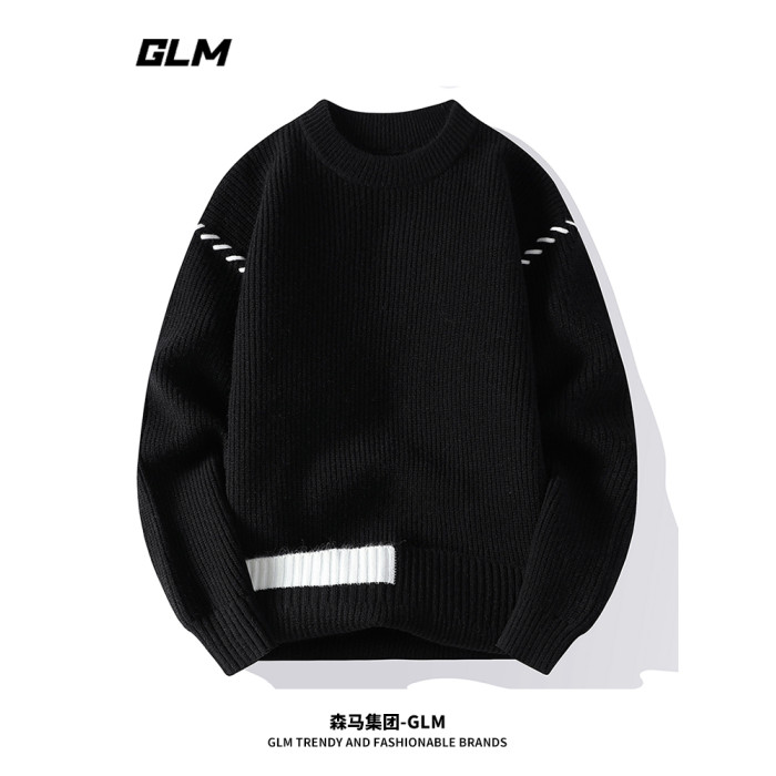 GLM秋冬新款馬年新款加厚潮流抗寒保暖寬松套頭情侶圓領毛衣 男