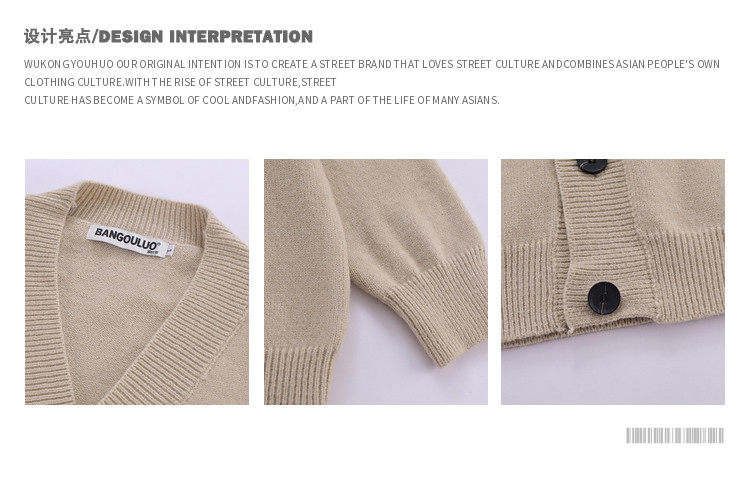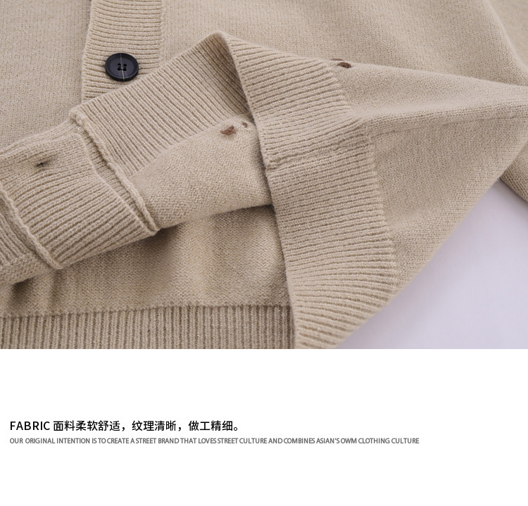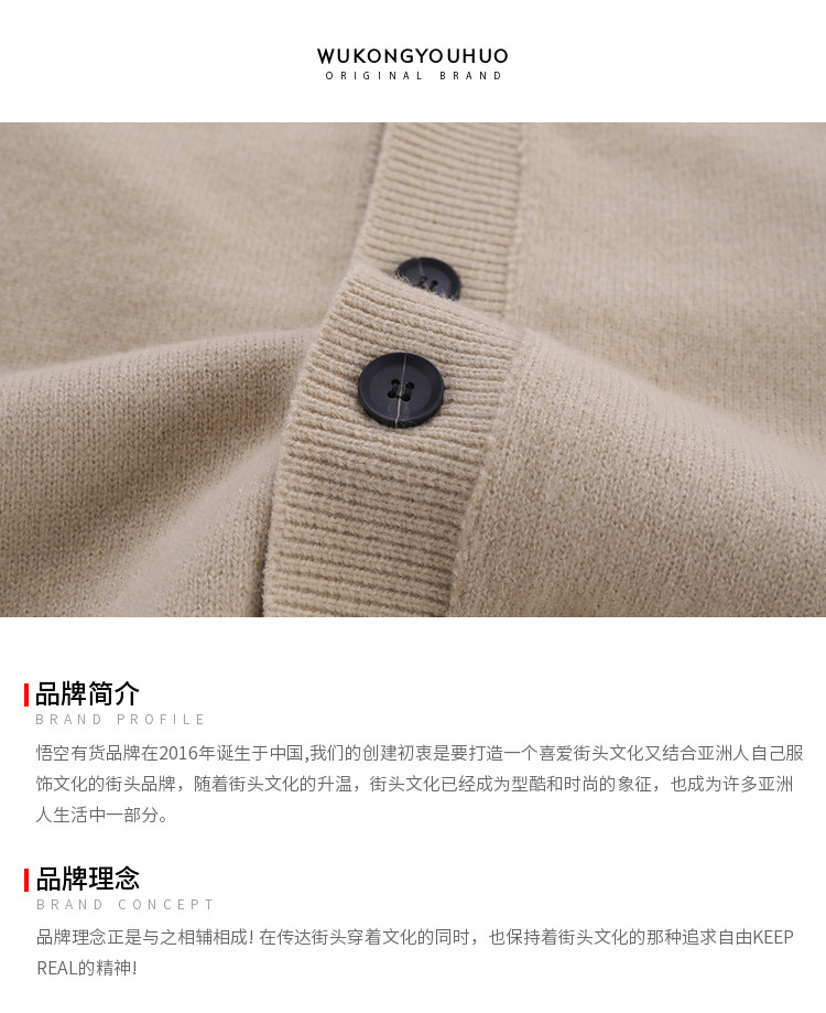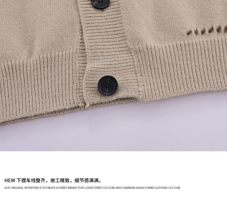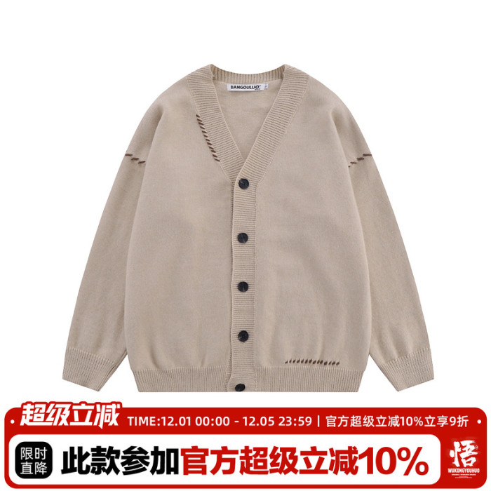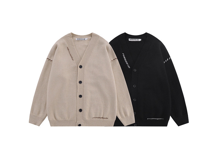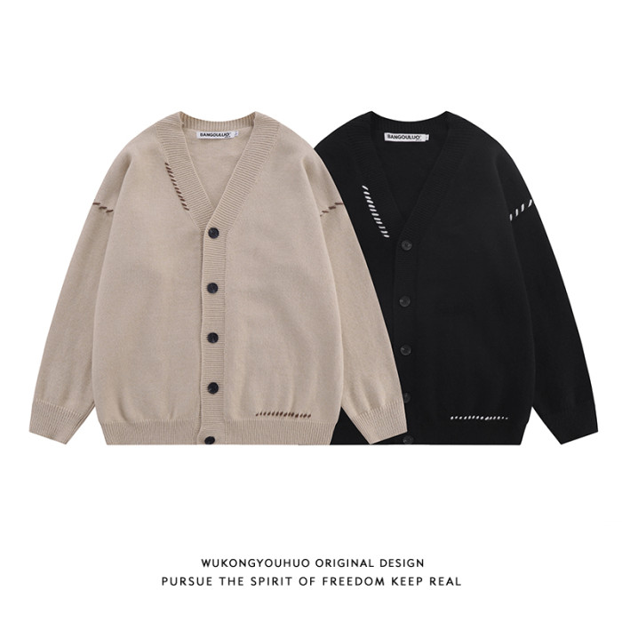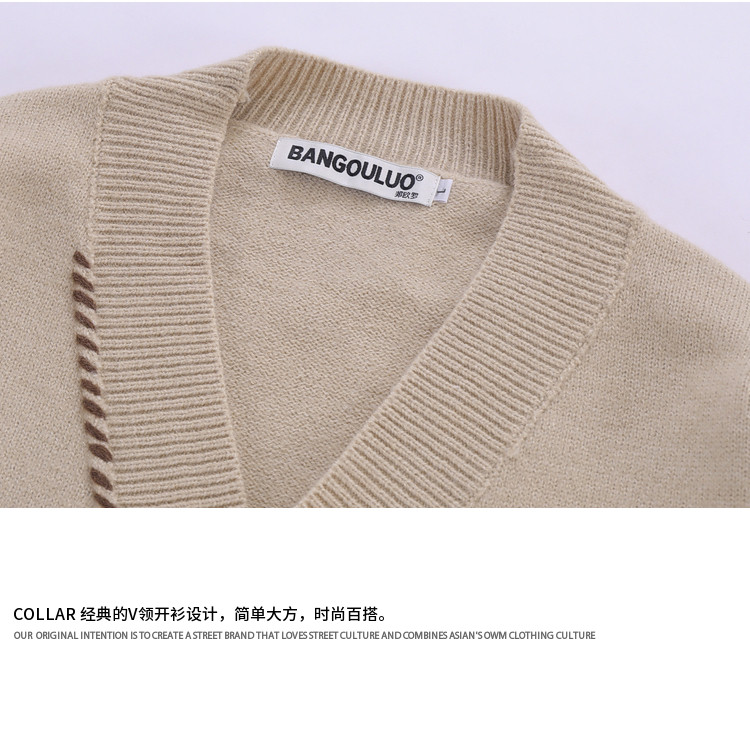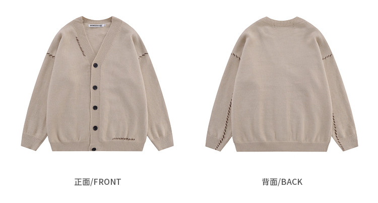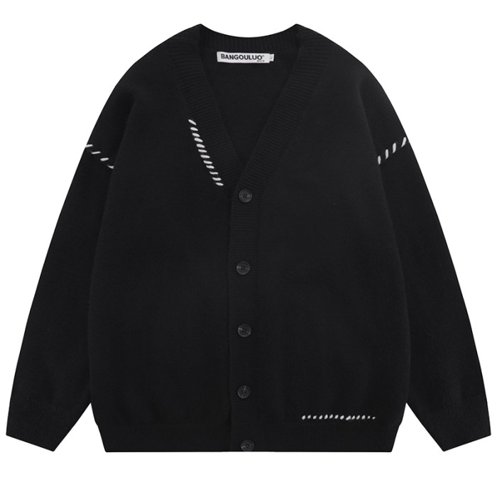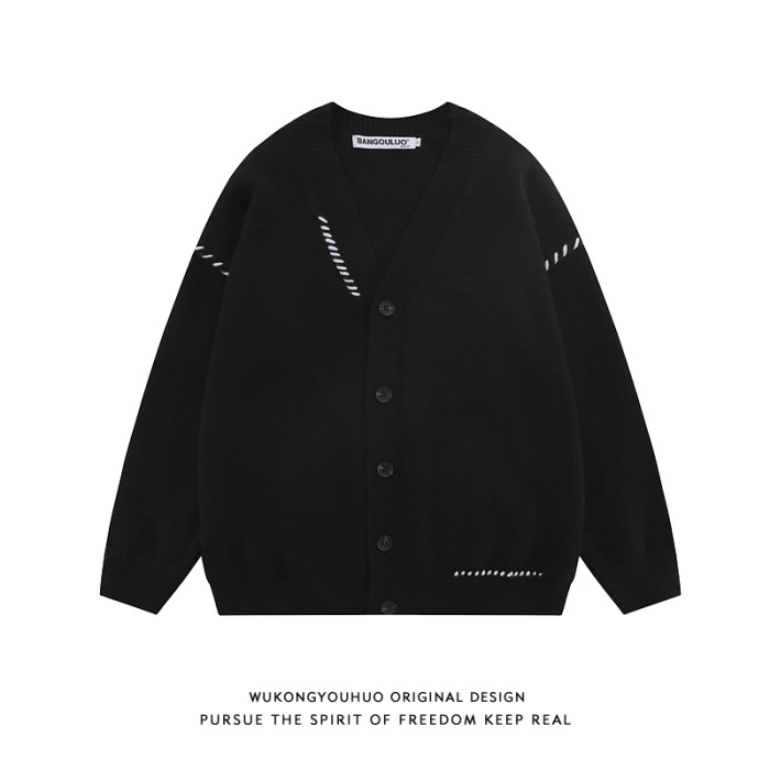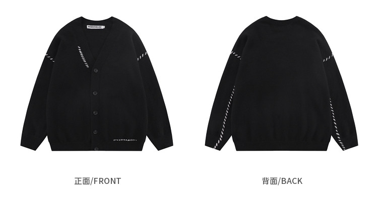 悟空有貨黑白明線開衫毛衣外套男慵懶寬松V領針織衫情侶休閒線衣