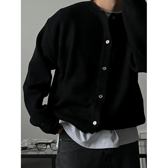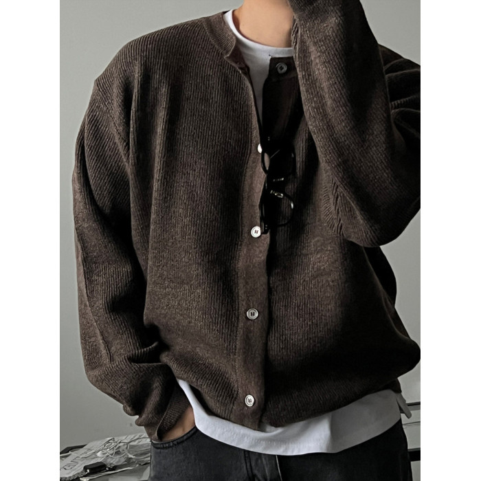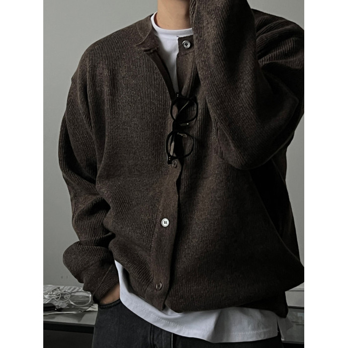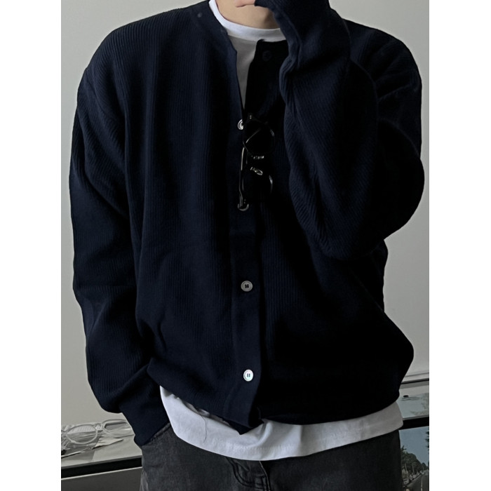 SSUMENAM「老錢風 針織開衫」深藍色毛衣男秋冬季高級感保暖外套
