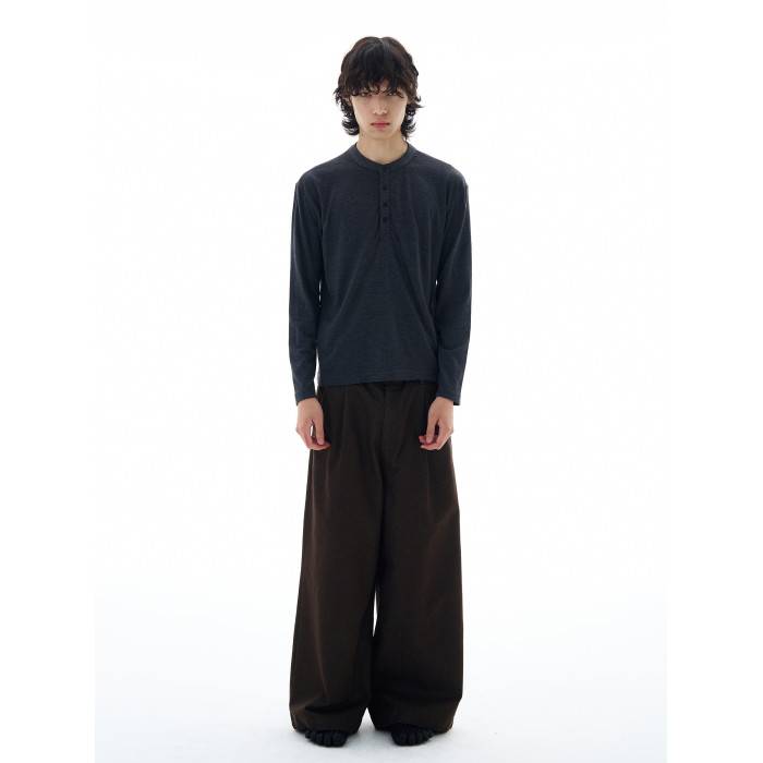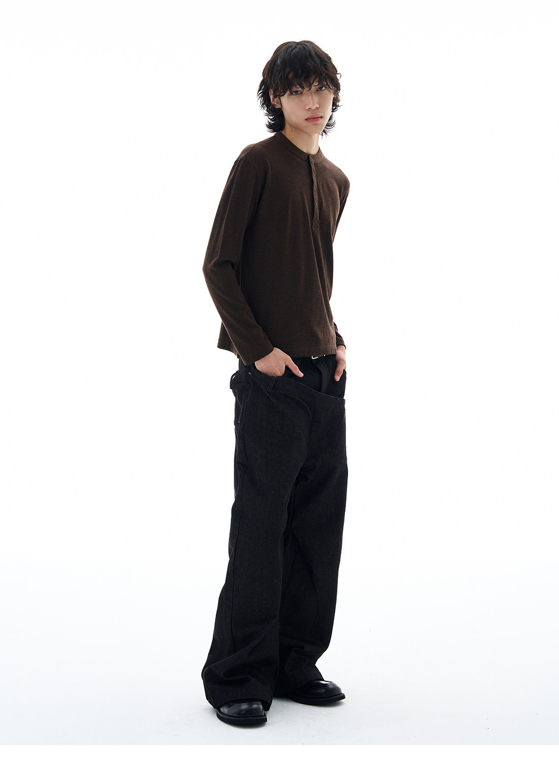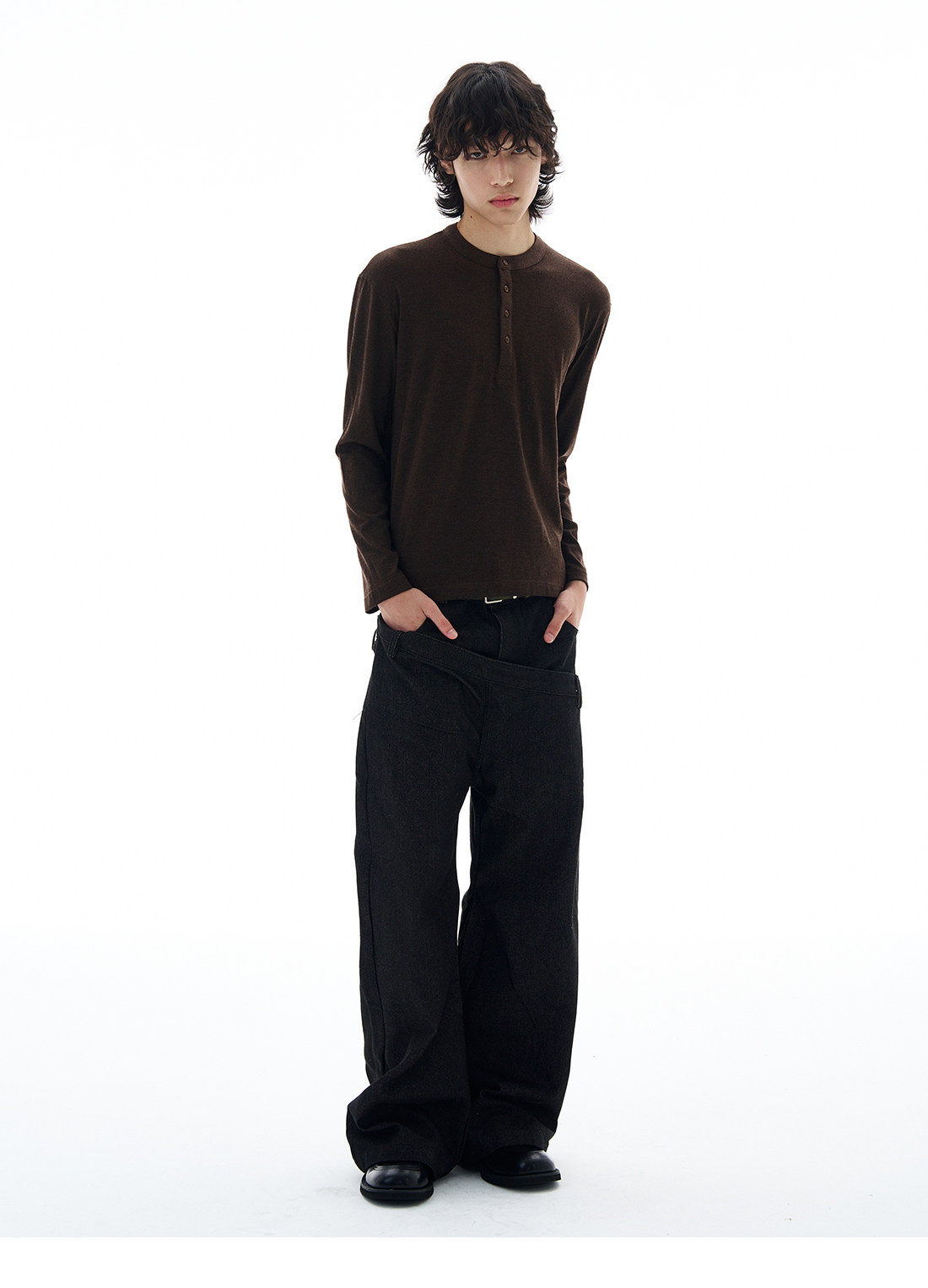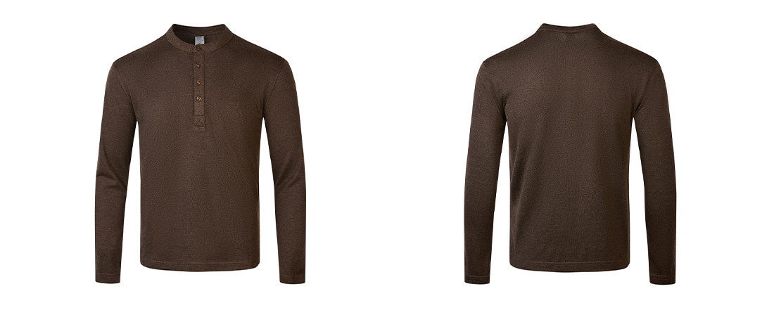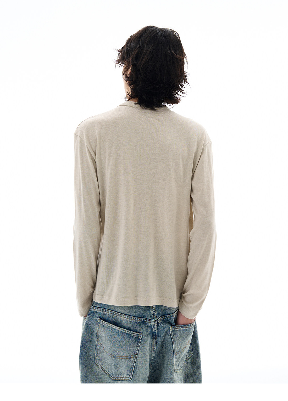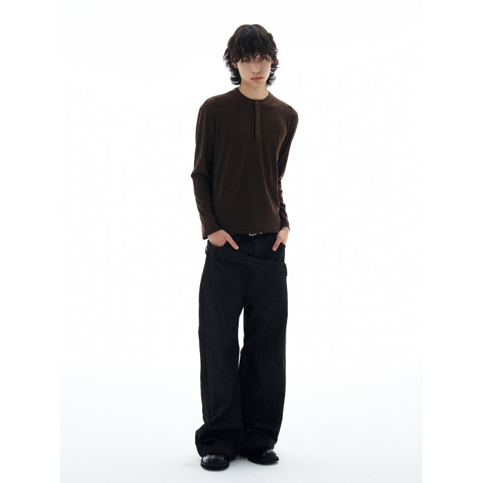 尾郎的店 秋季美式復古羊毛混紡亨利衫男高級感薄款長袖打底衫T恤