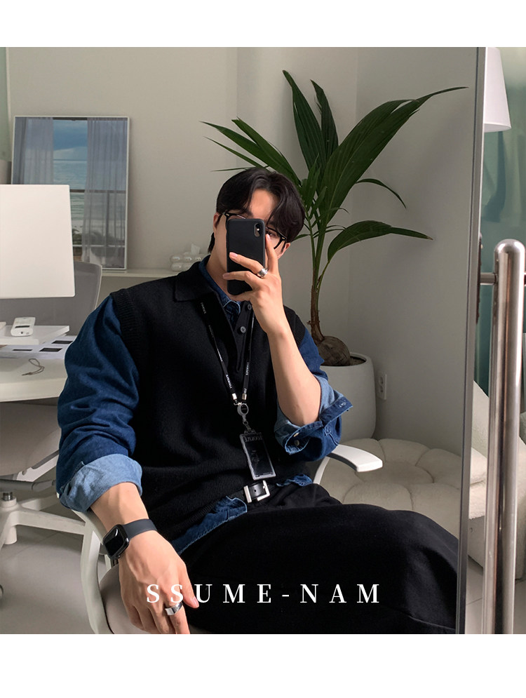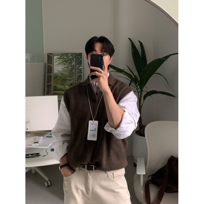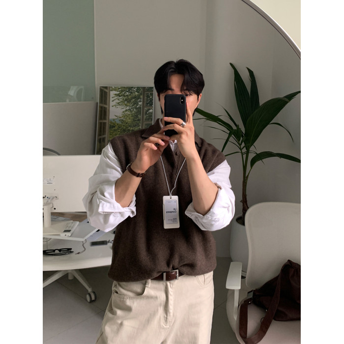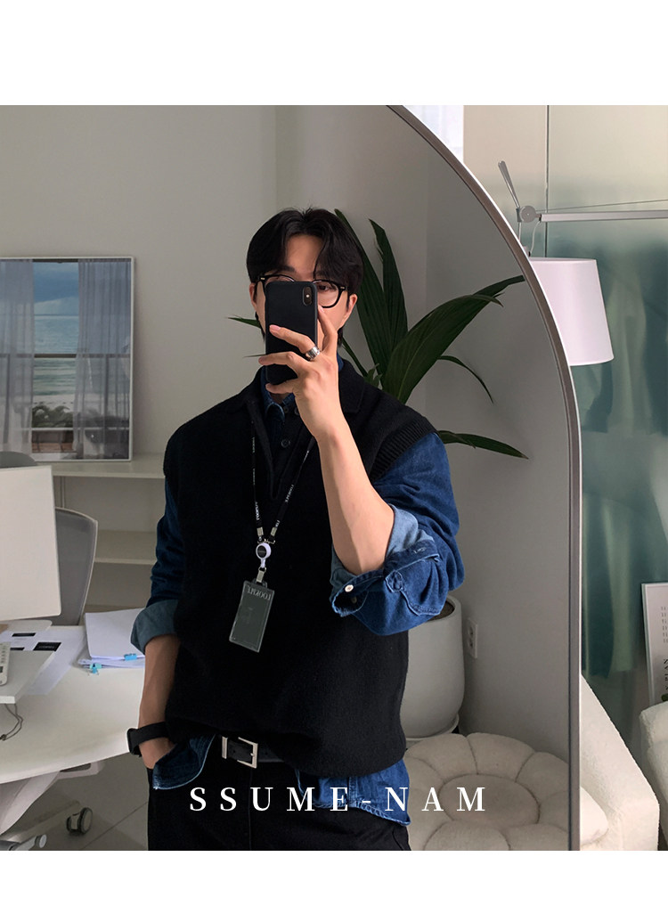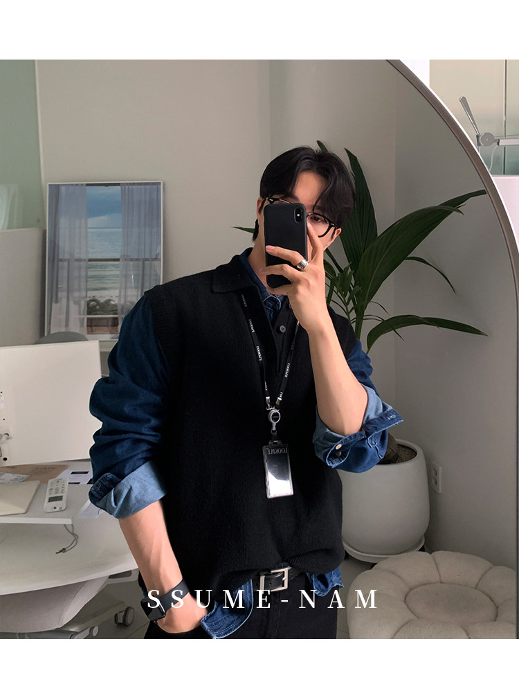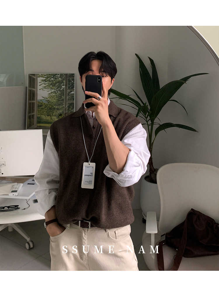 SSUMENAM「老錢風 Polo領」針織背心男秋季韓系設計感毛衣馬甲
