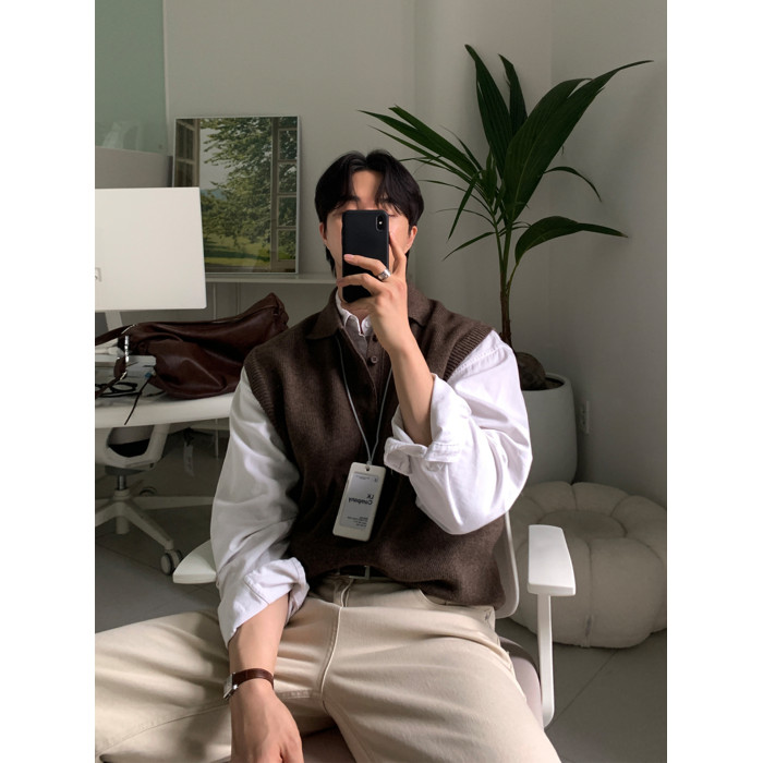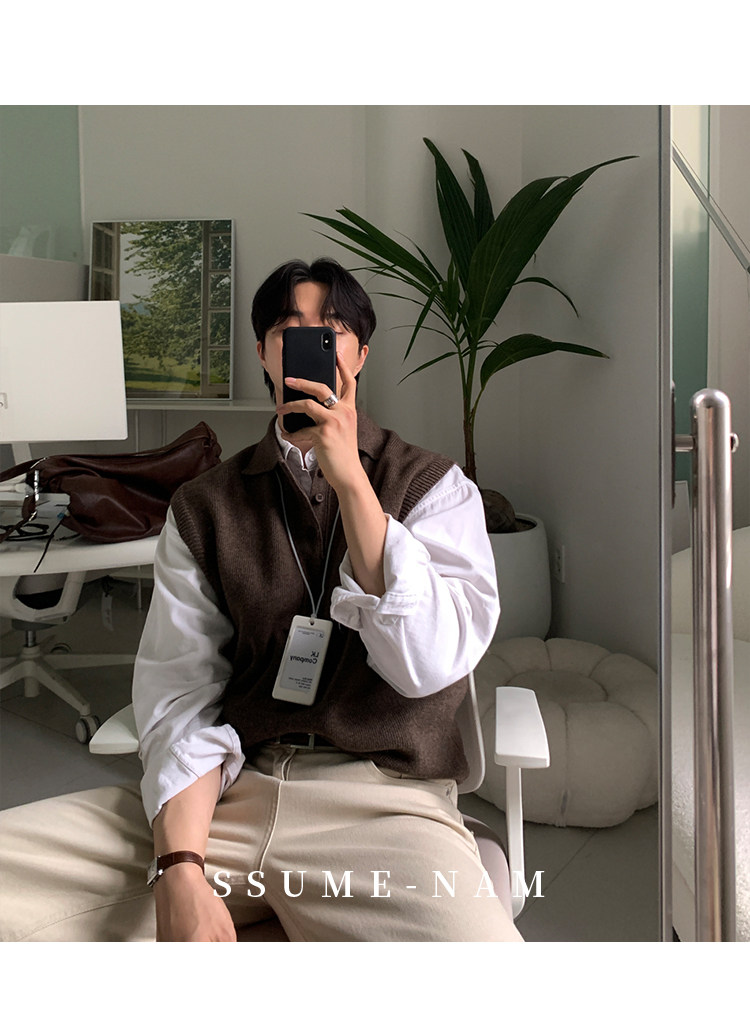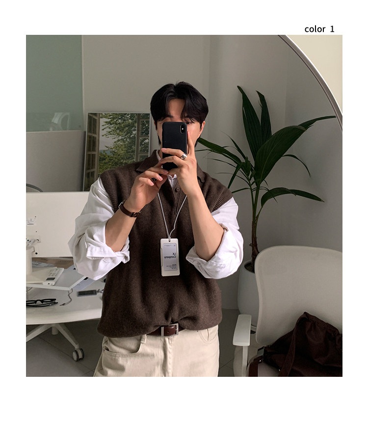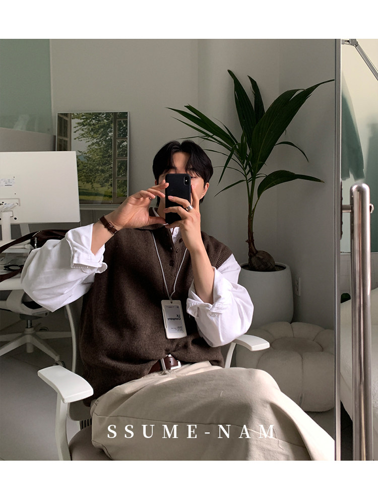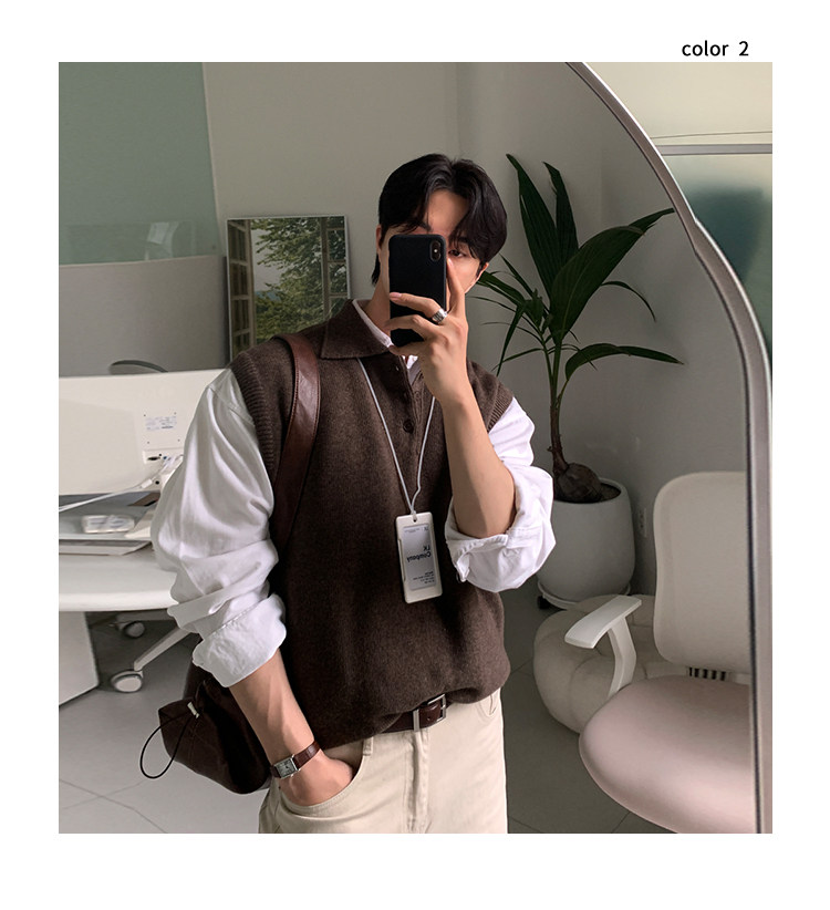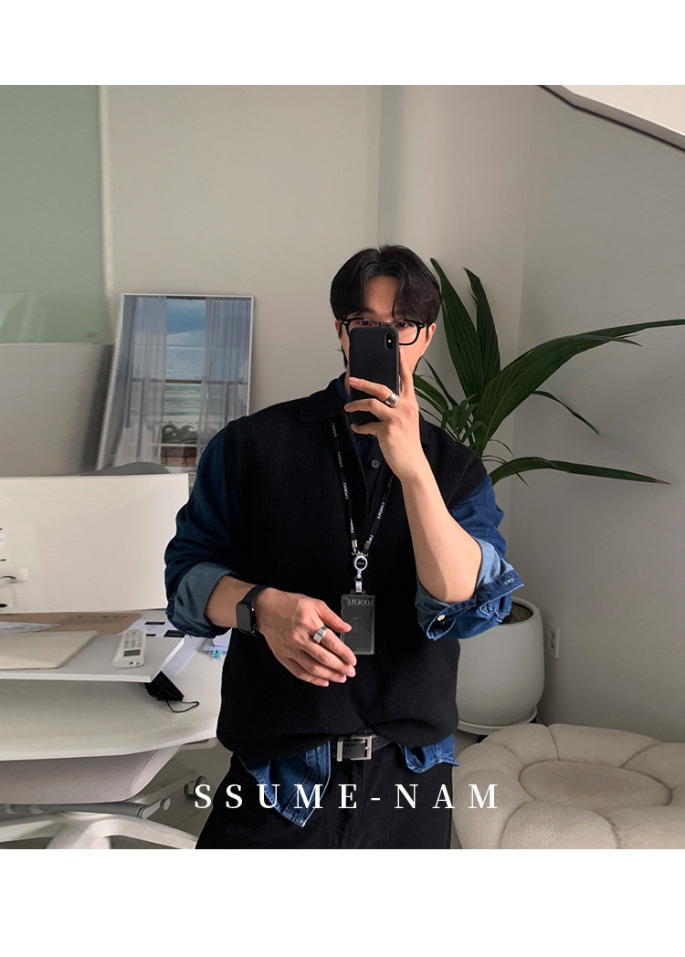 SSUMENAM「老錢風 Polo領」針織背心男秋季韓系設計感毛衣馬甲