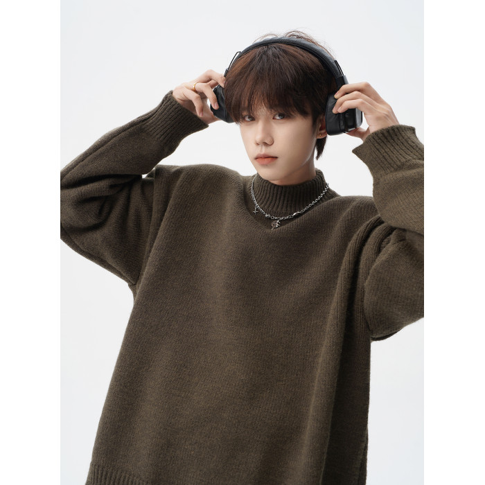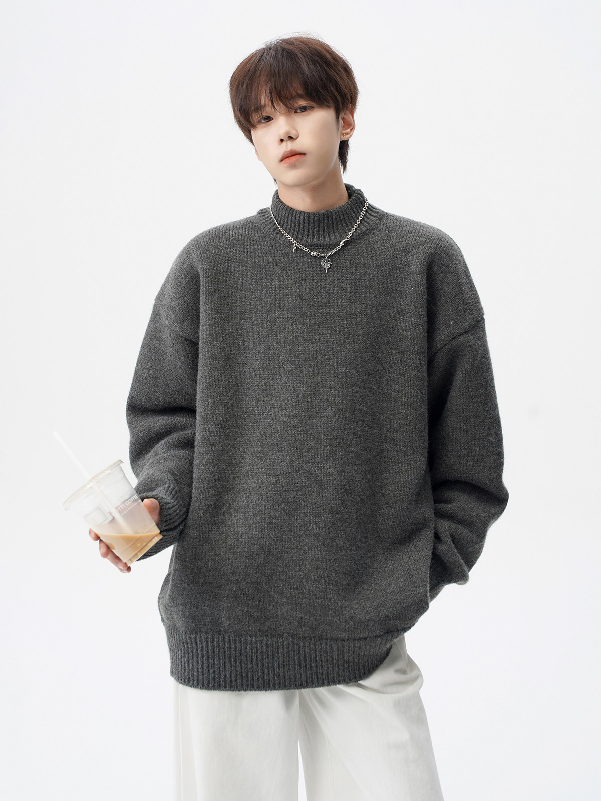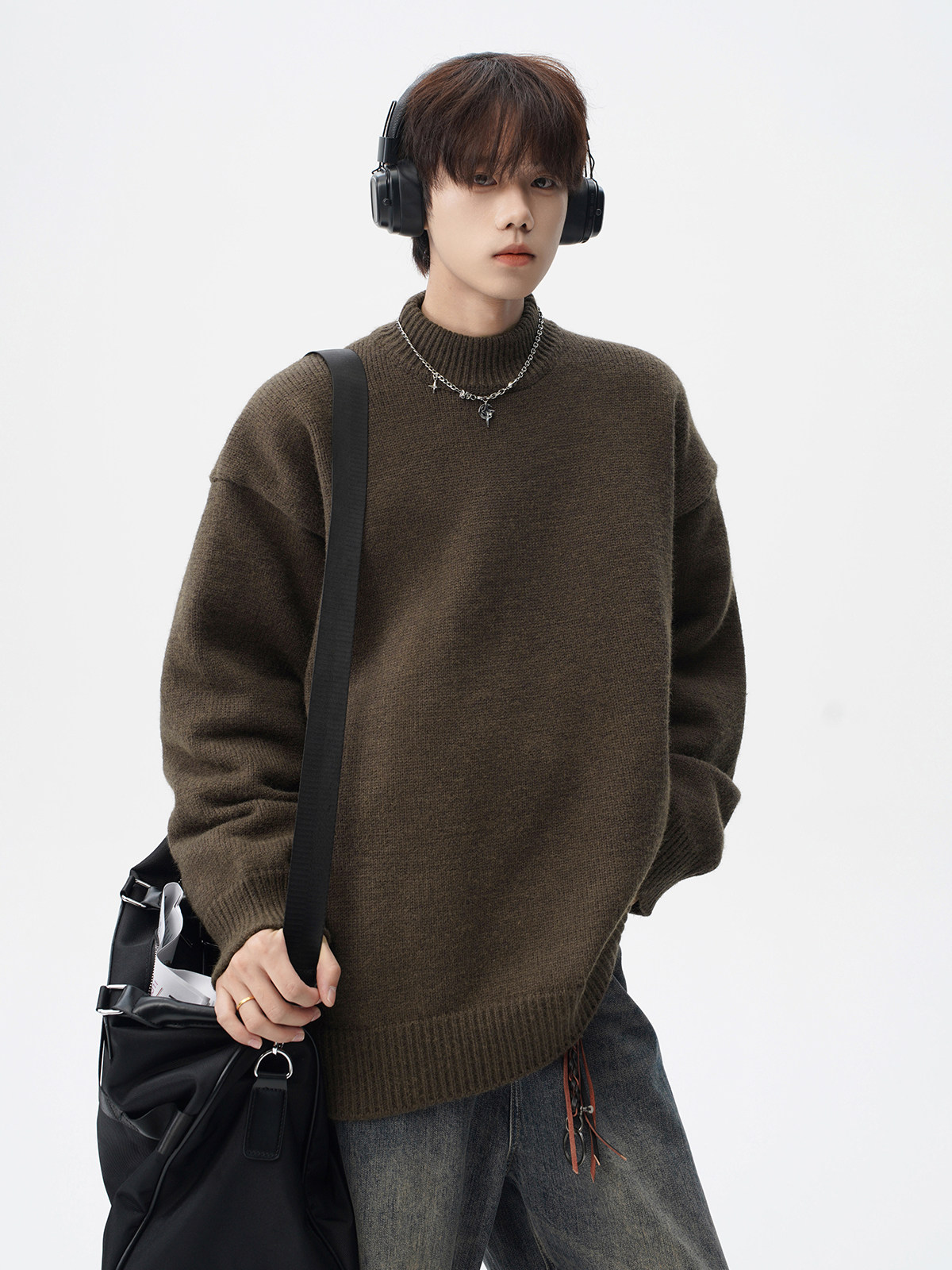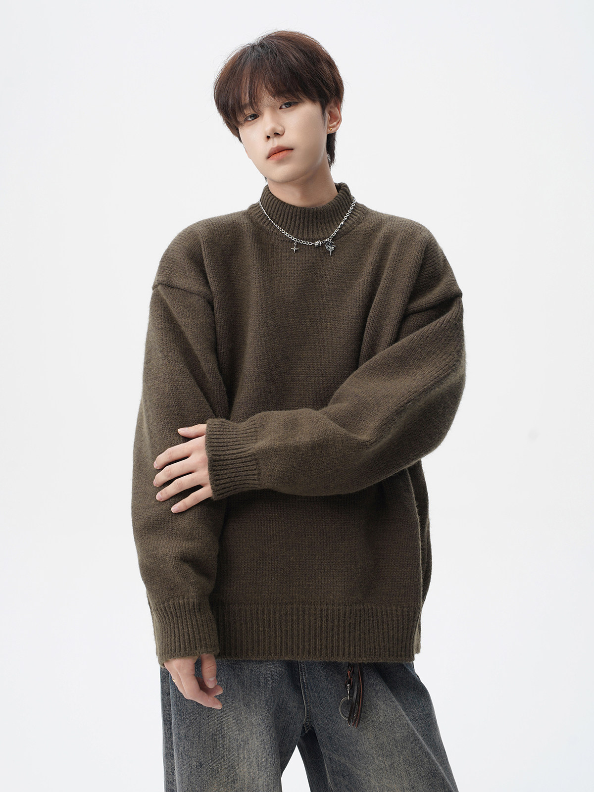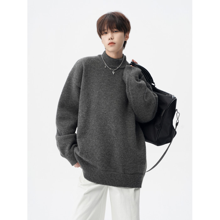 美式半高領打底毛衣男冬季慵懶感純色情侶針織衫cleanfit百搭線衣