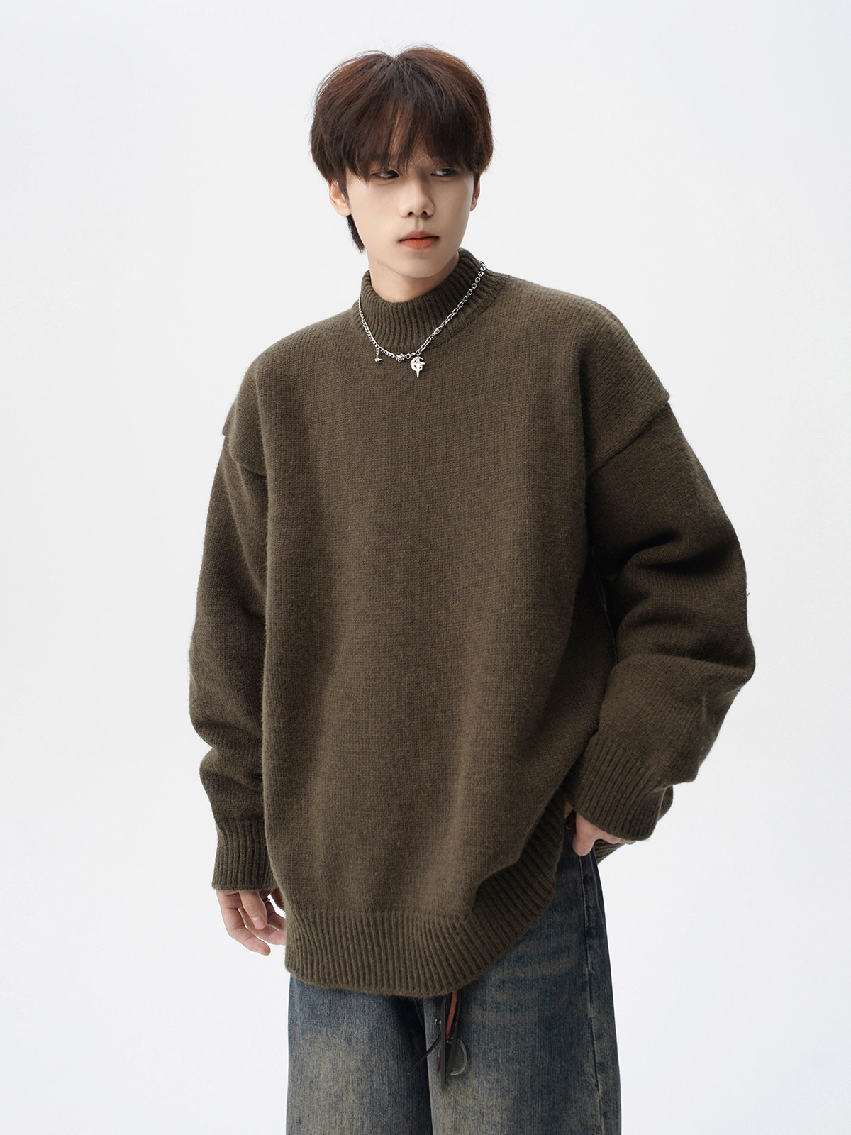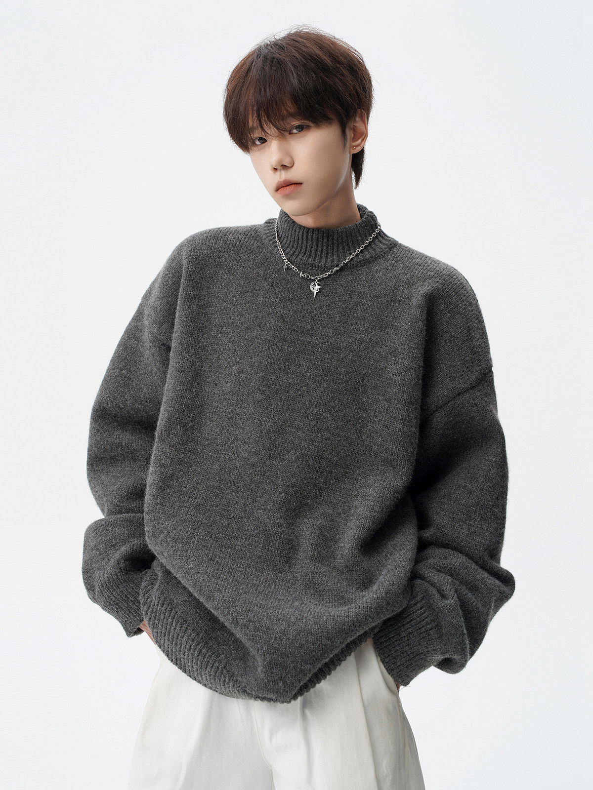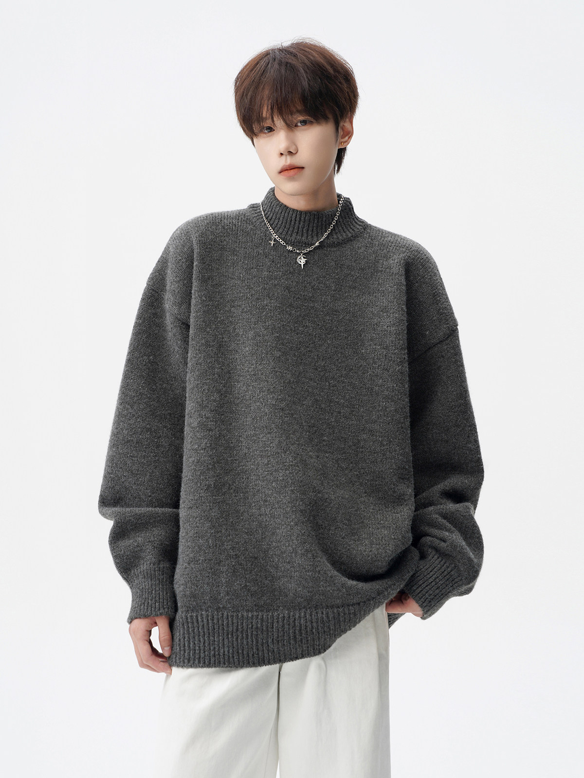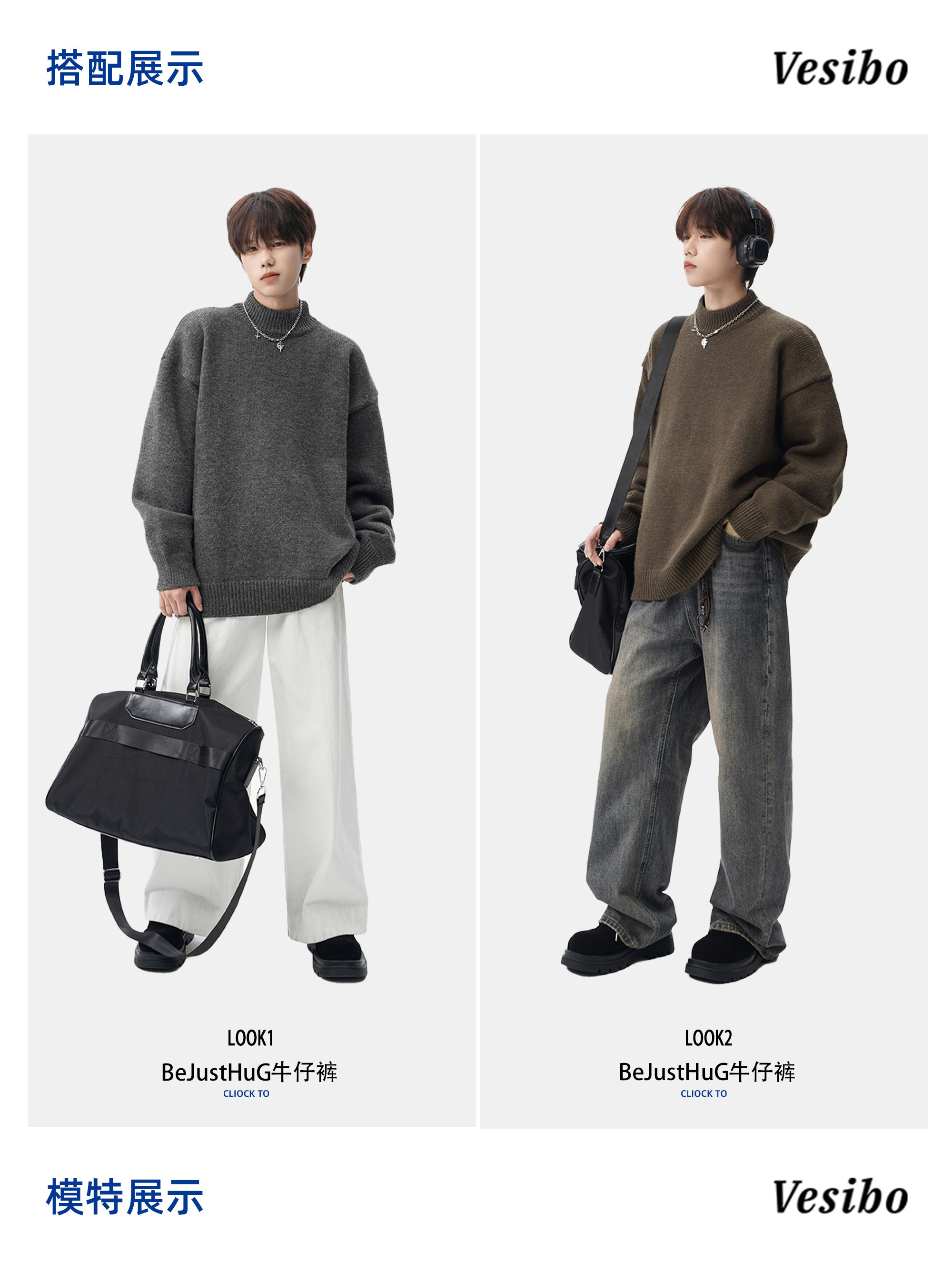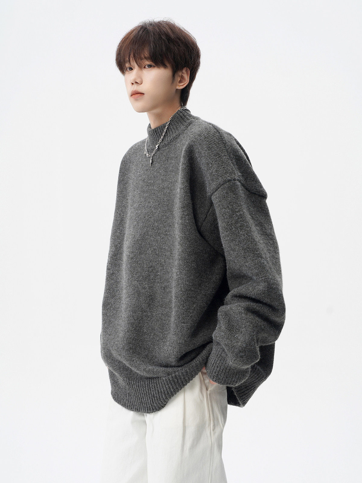 美式半高領打底毛衣男冬季慵懶感純色情侶針織衫cleanfit百搭線衣