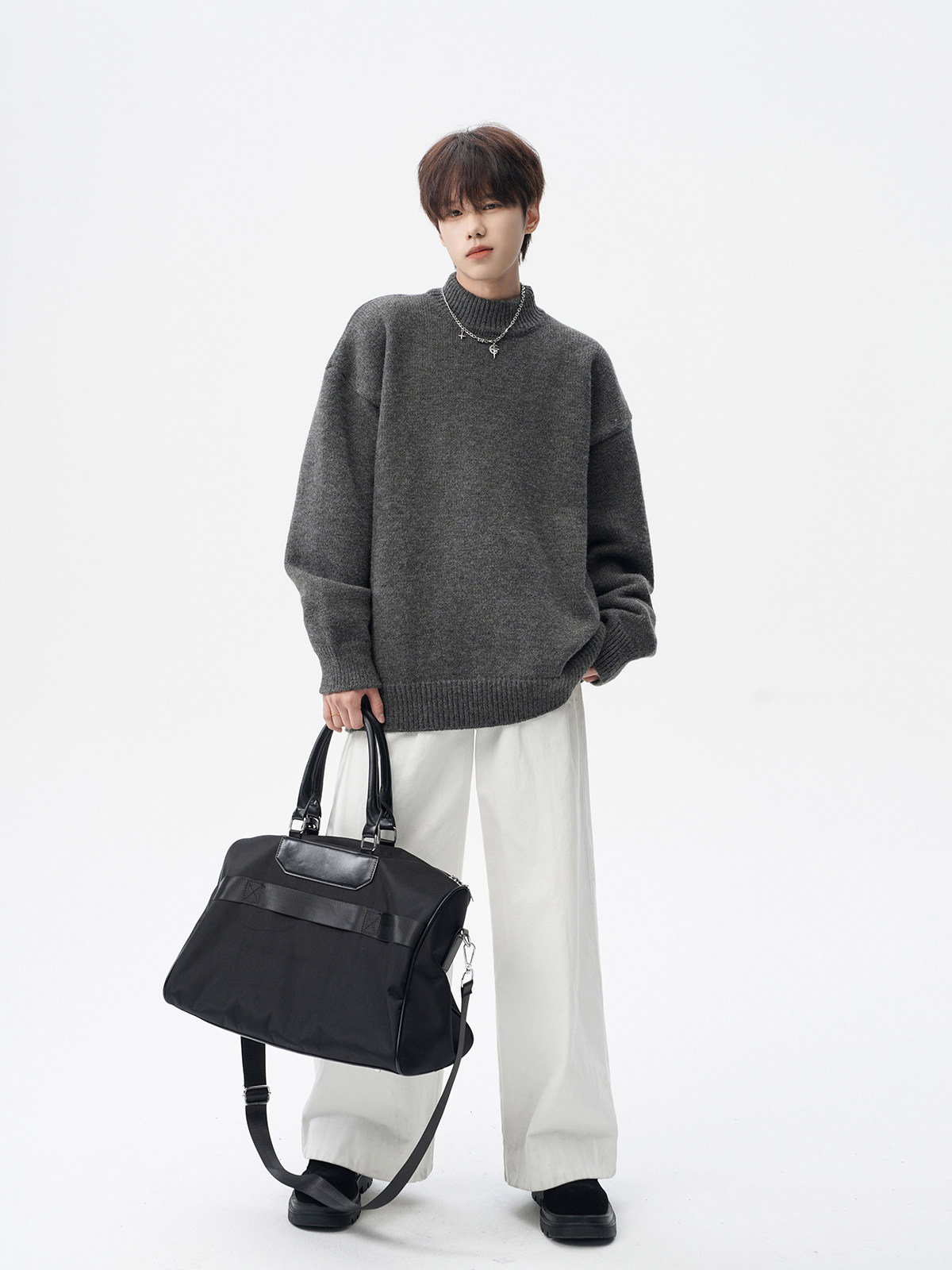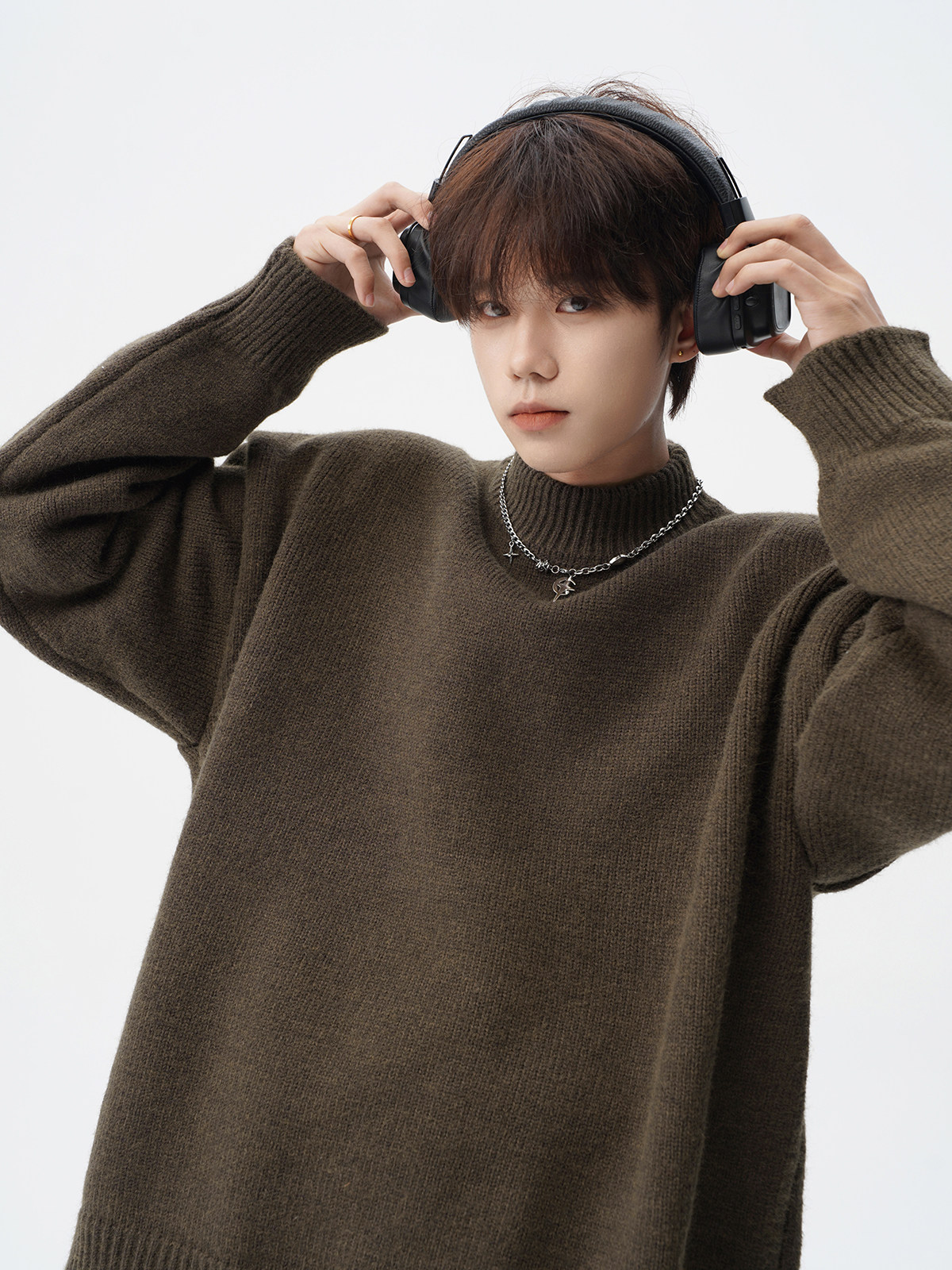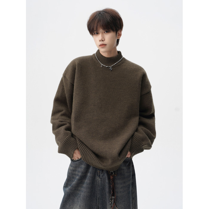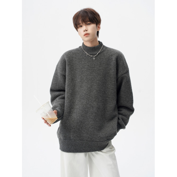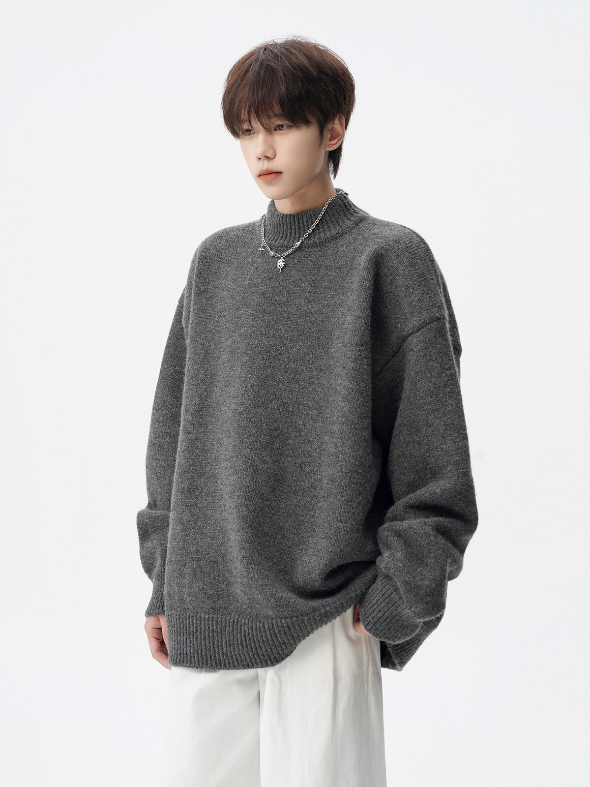 美式半高領打底毛衣男冬季慵懶感純色情侶針織衫cleanfit百搭線衣