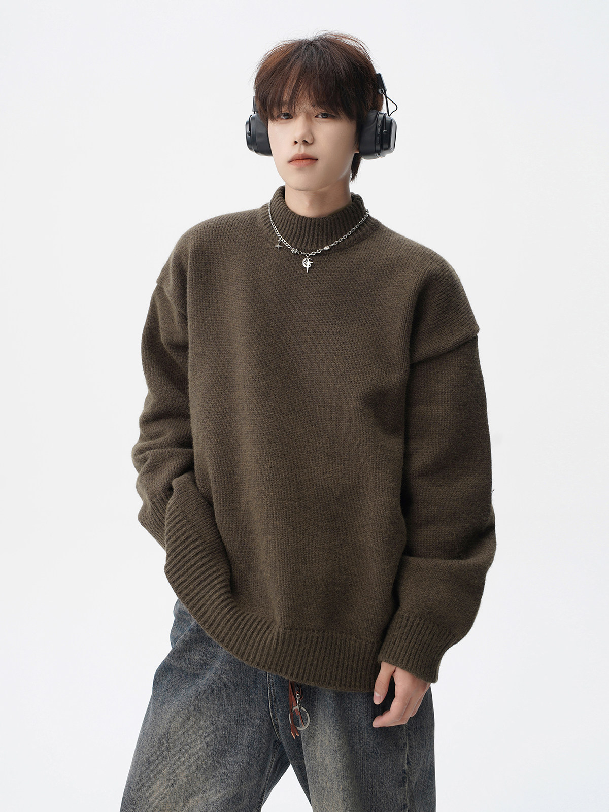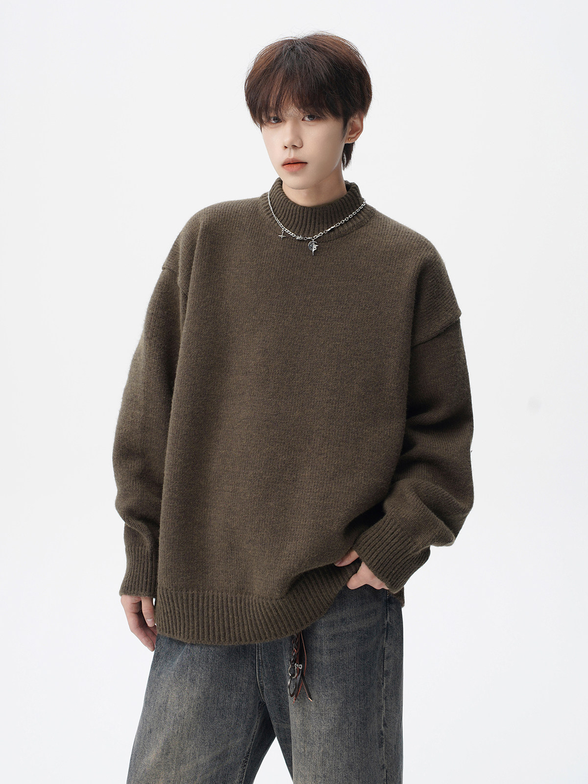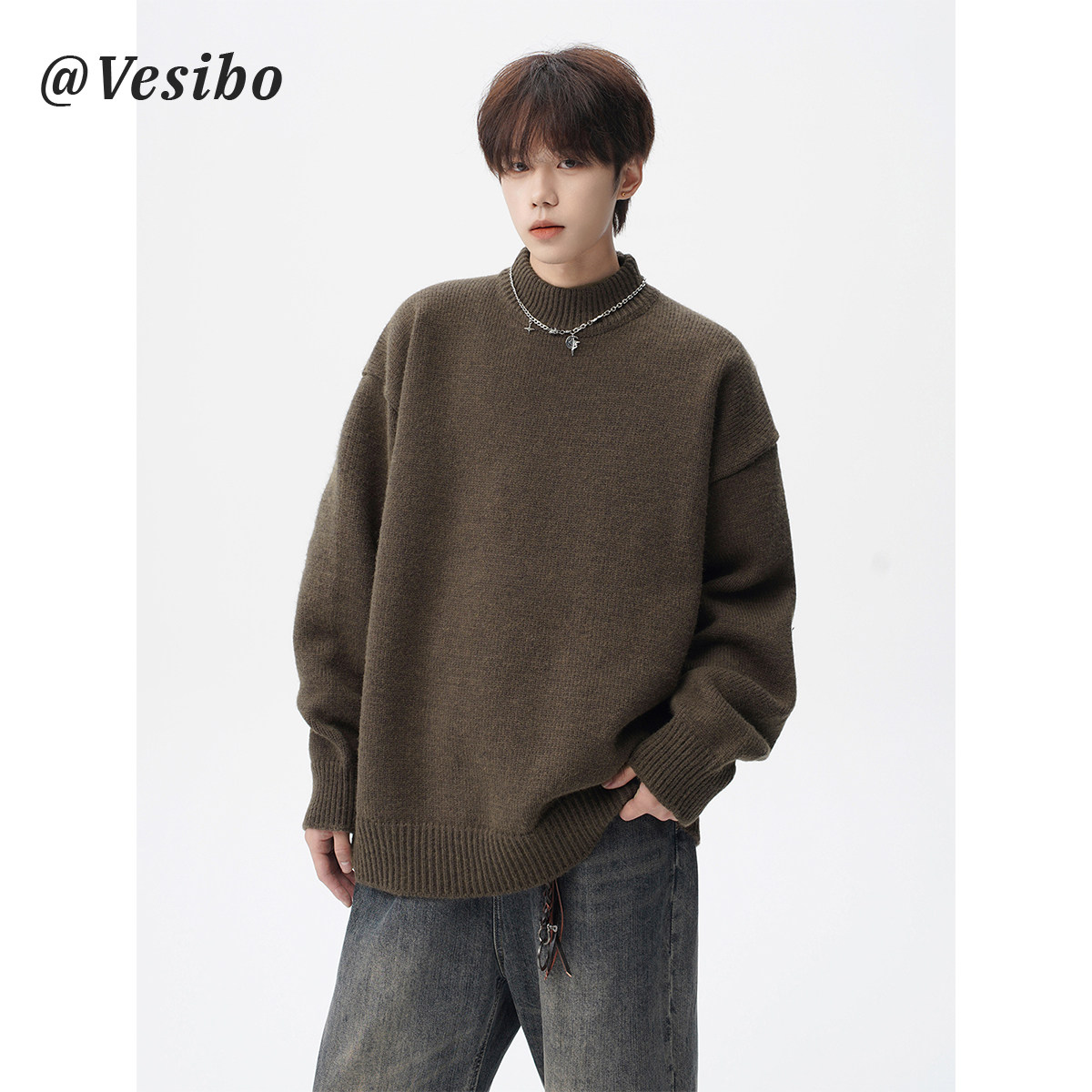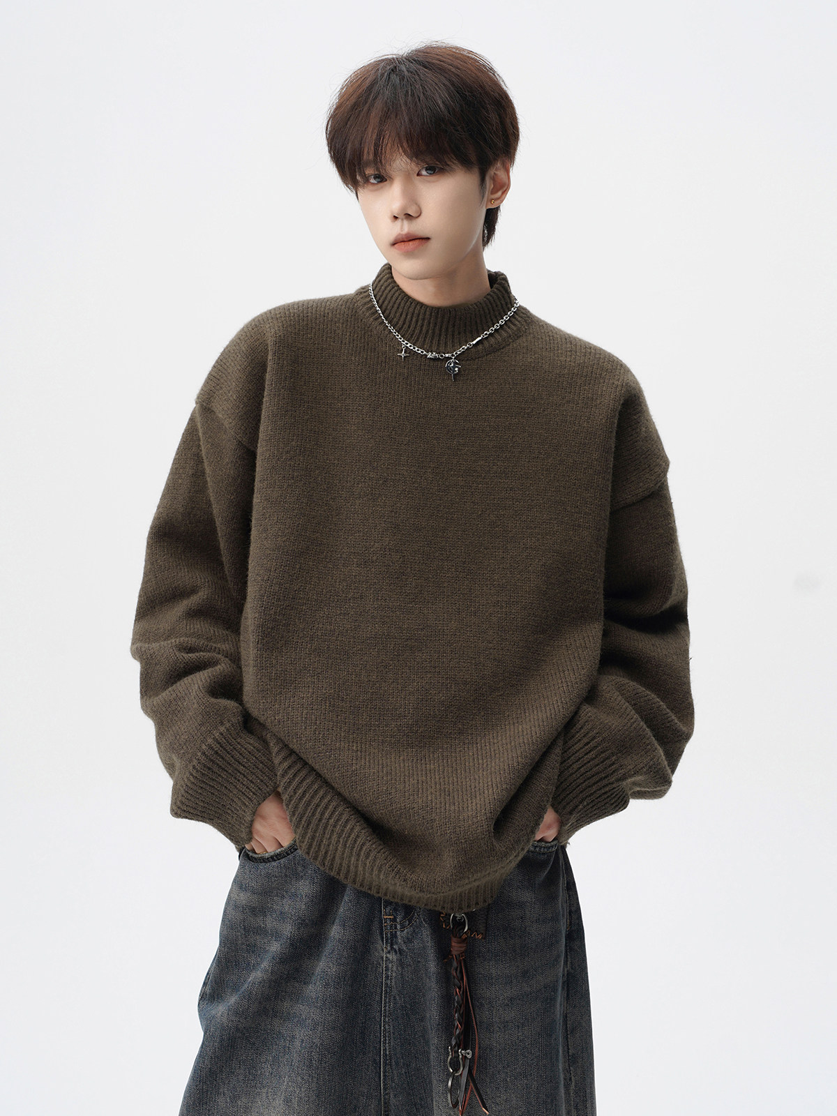 美式半高領打底毛衣男冬季慵懶感純色情侶針織衫cleanfit百搭線衣