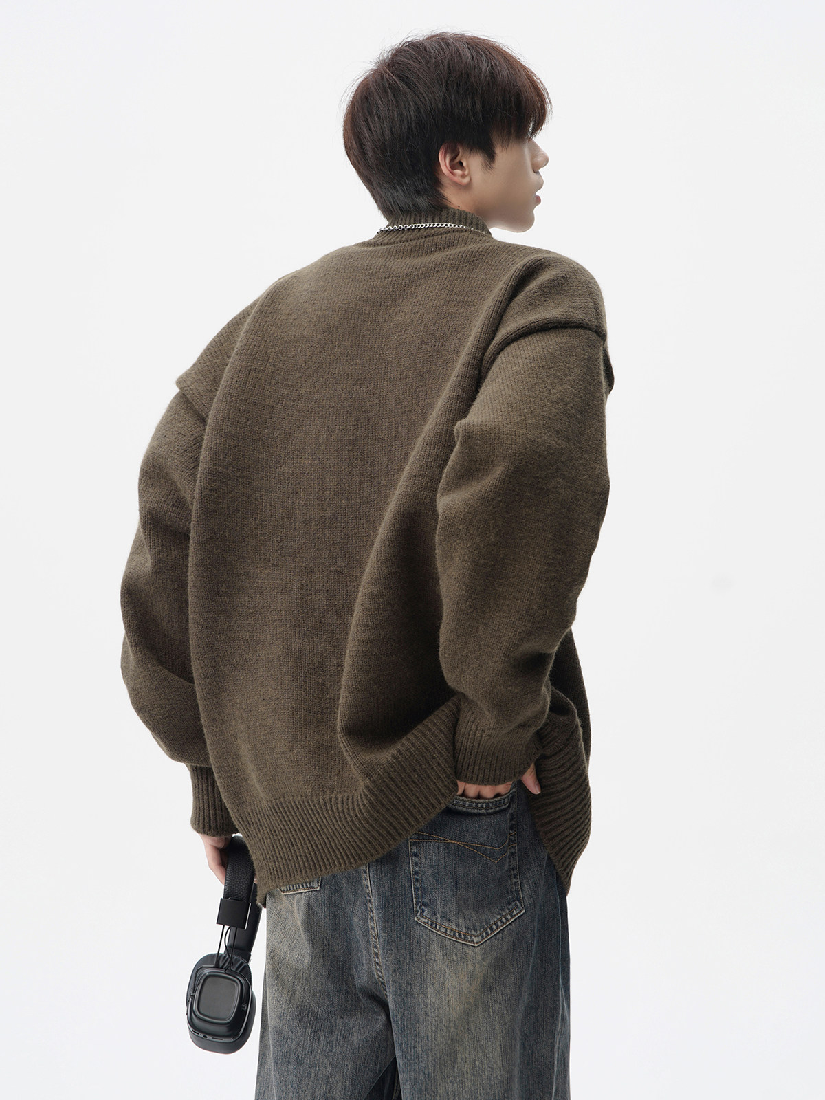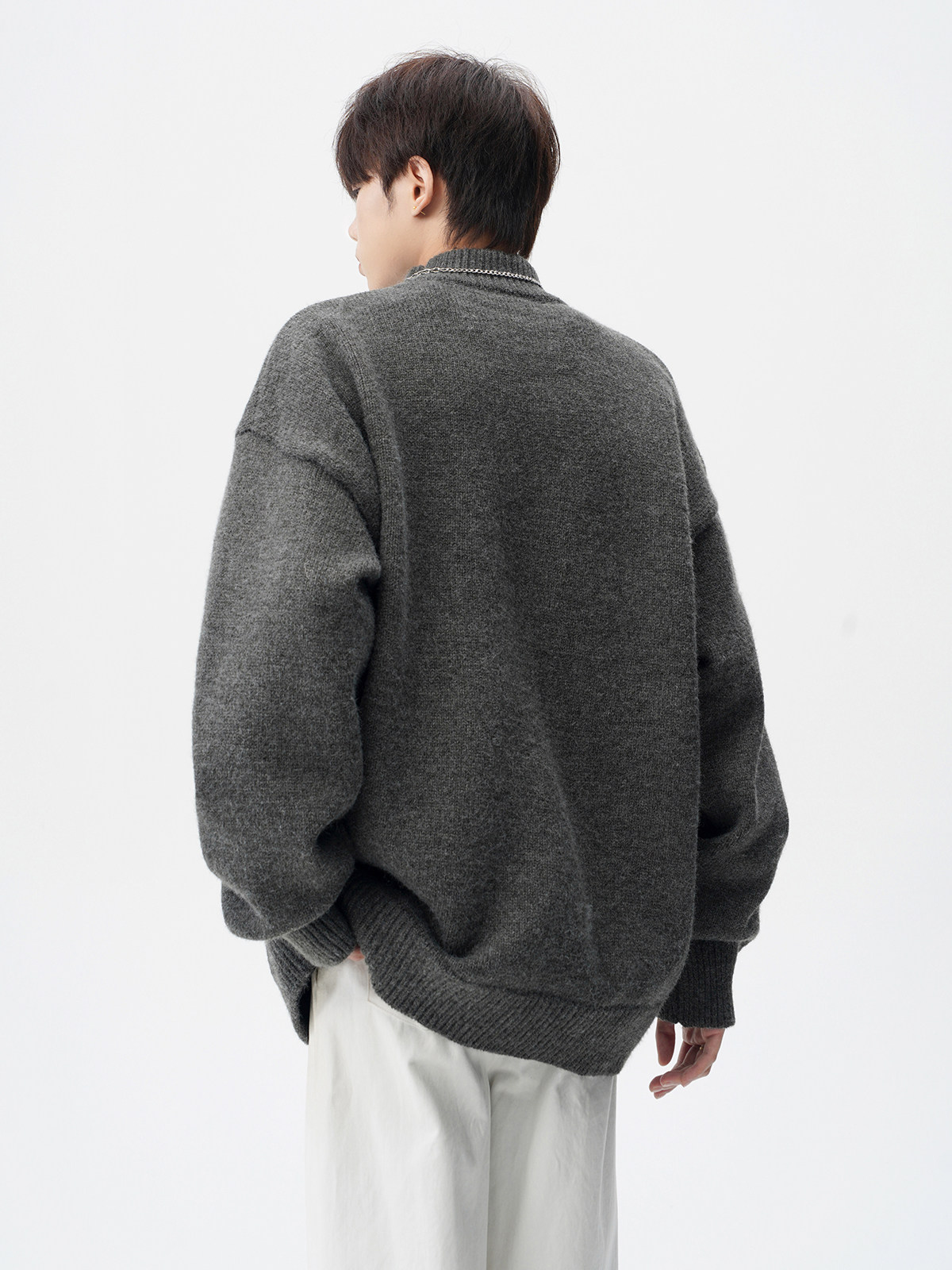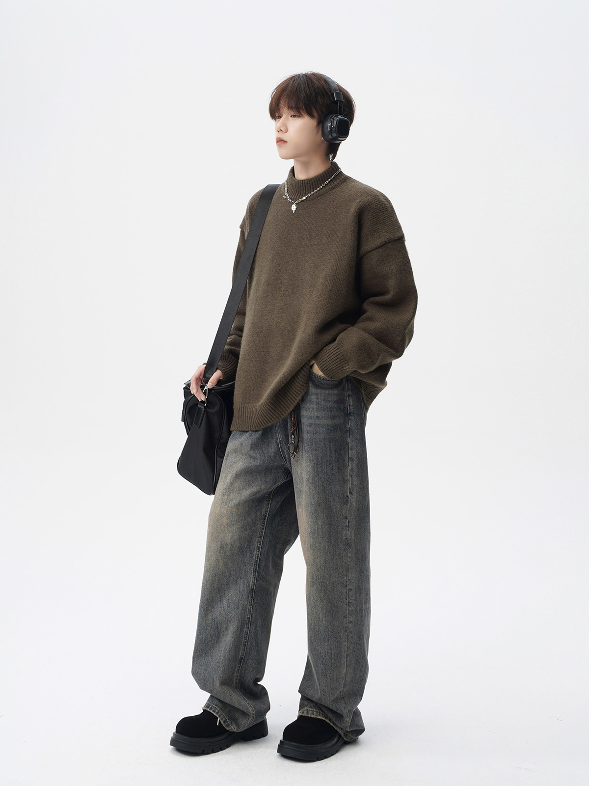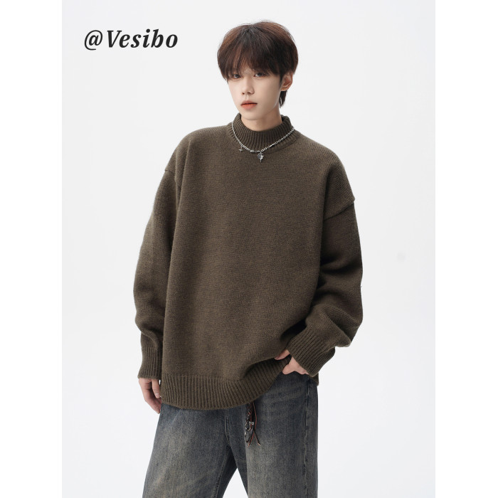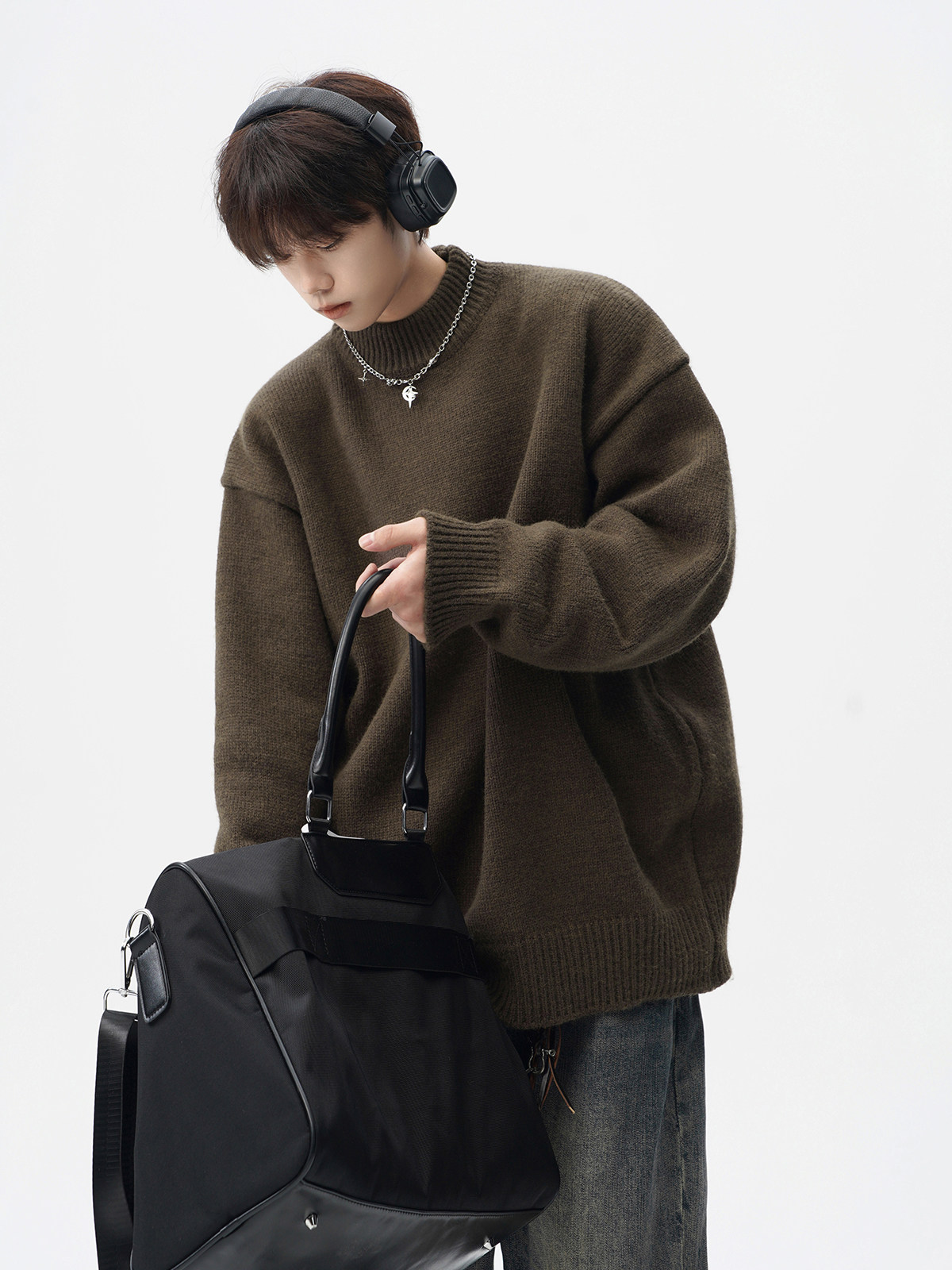美式半高領打底毛衣男冬季慵懶感純色情侶針織衫cleanfit百搭線衣